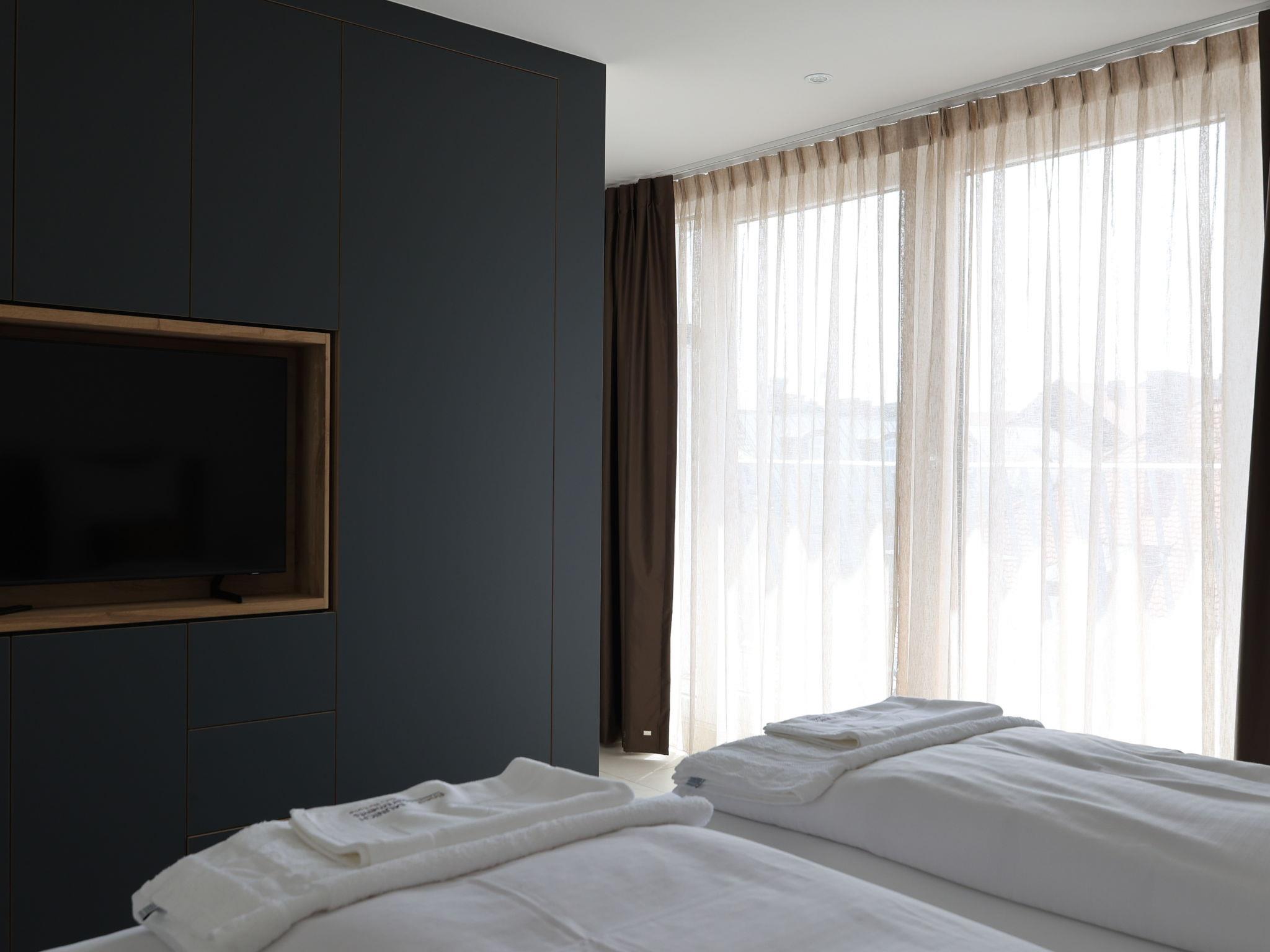 "Munich Finest Apartments 19", 1-room apartment 23 m2 on 7th floor. Modern furnishings: 1 room with 1 double bed and TV. Exit to the balcony. (kettle, electric coffee machine). Shower/WC. Electric heating, air-conditioning. Balcony. Facilities: safe, children's high chair, hair dryer. Internet (WiFi, free). Please note: non-smokers only. Smoke alarm. This property does not have a kitchen. 244932
