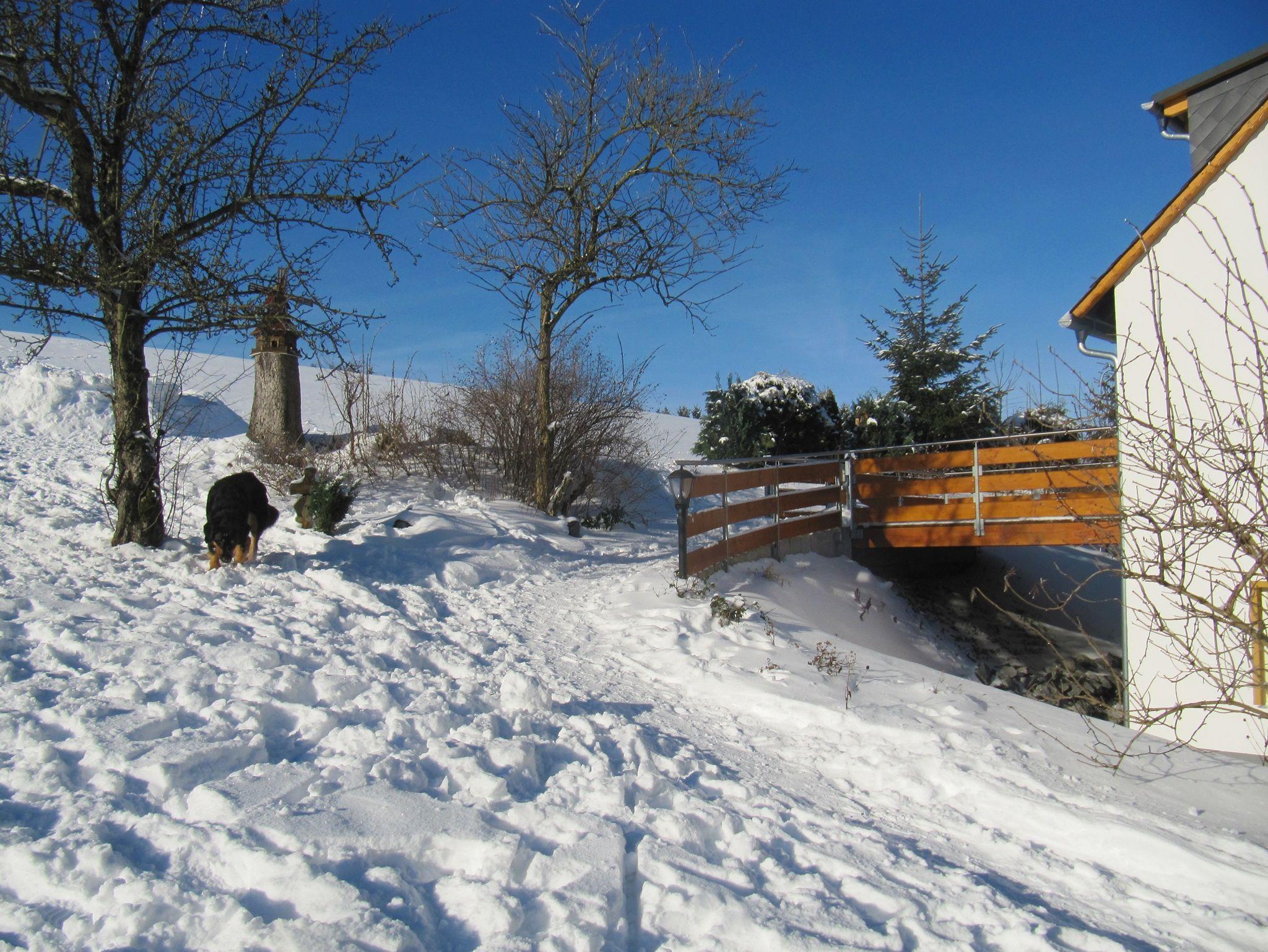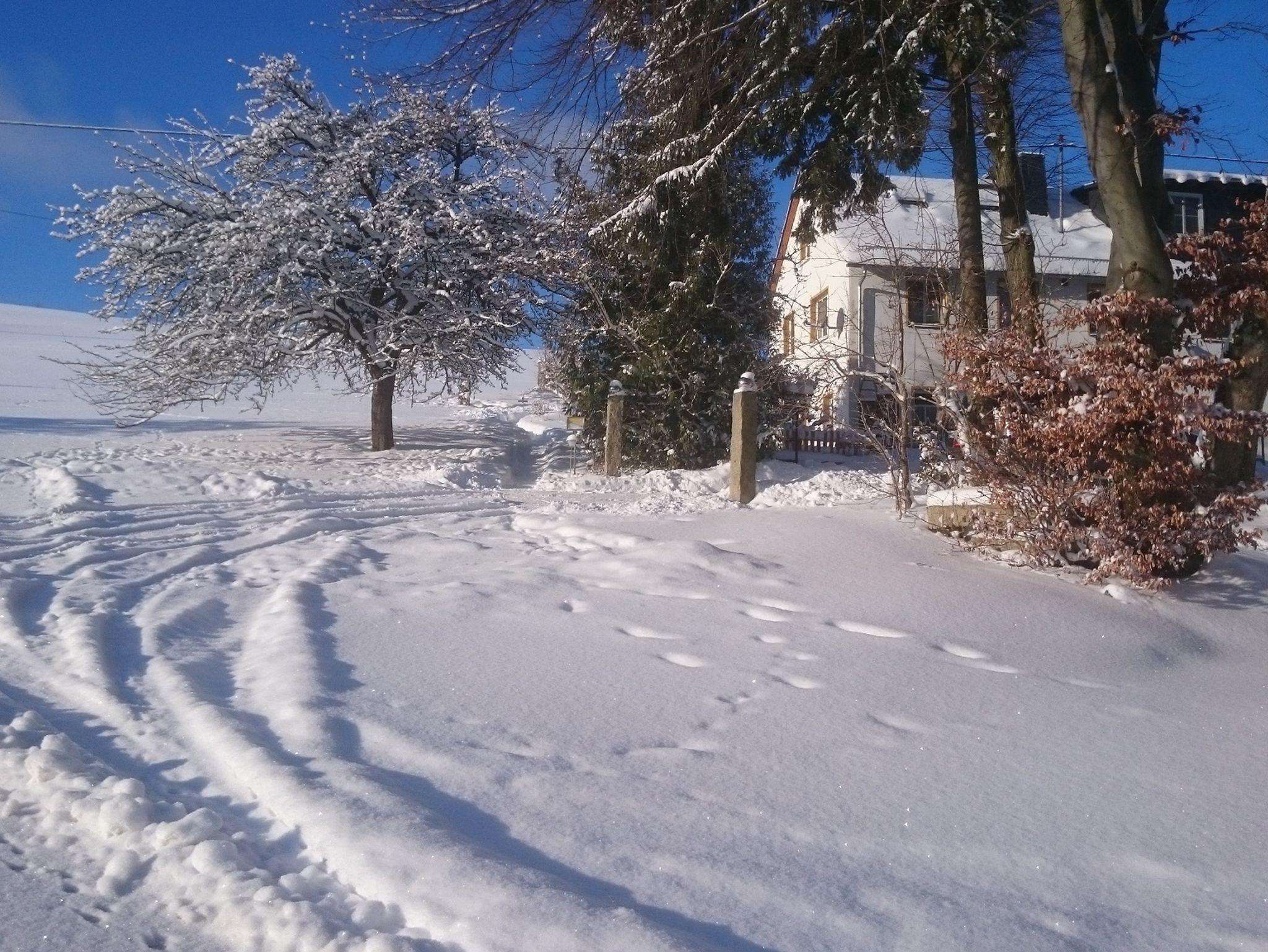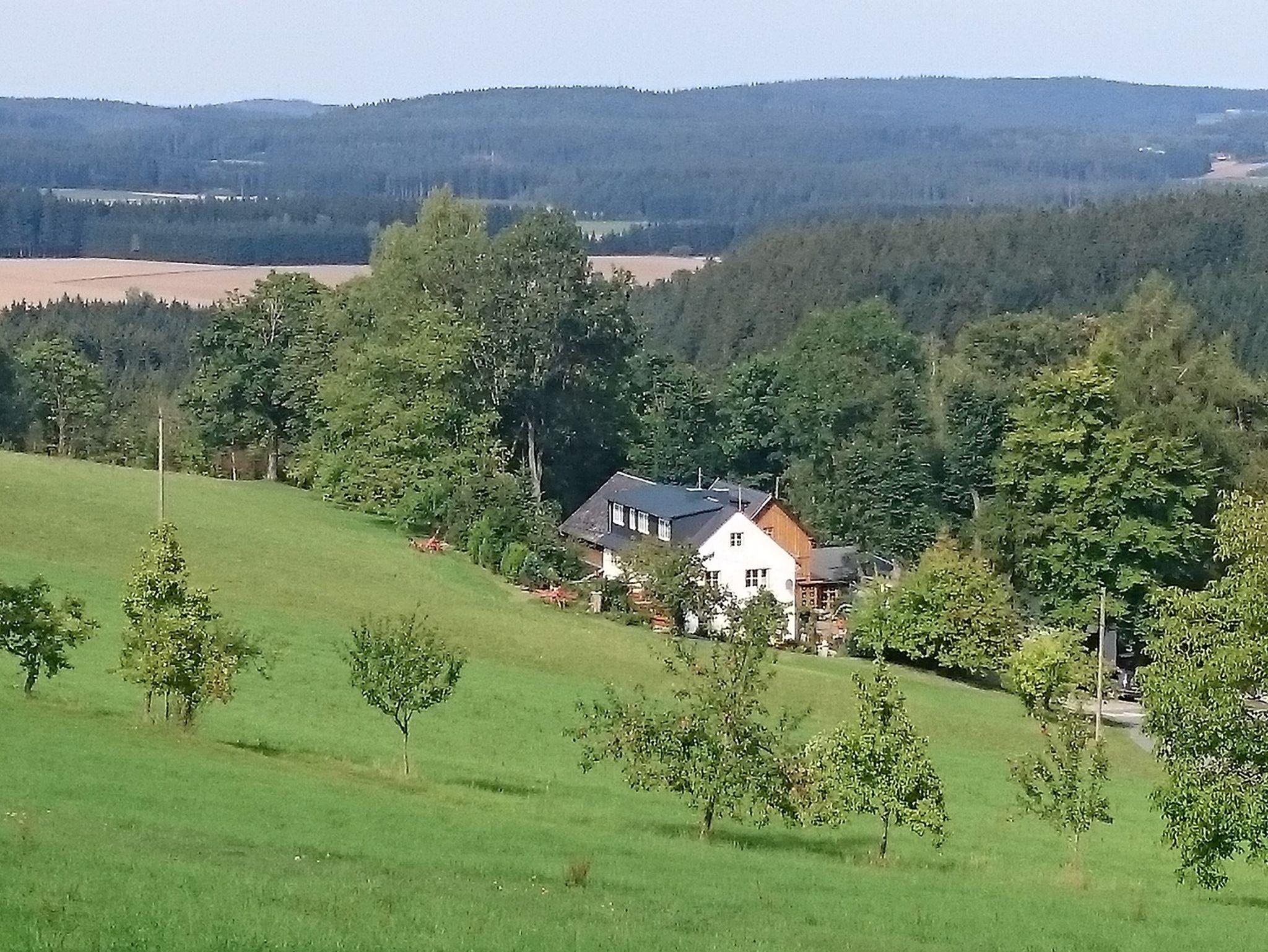 Auf unserer kleinen Farm am Fuße des 795 Meter hohen Döbrabergs im Frankenwald bieten wir seit 2018 die Ferienwohnung Auszeit im Dachgeschoß an, für 2-3 Personen, mit einem separaten Zugang und eigener Terrasse.