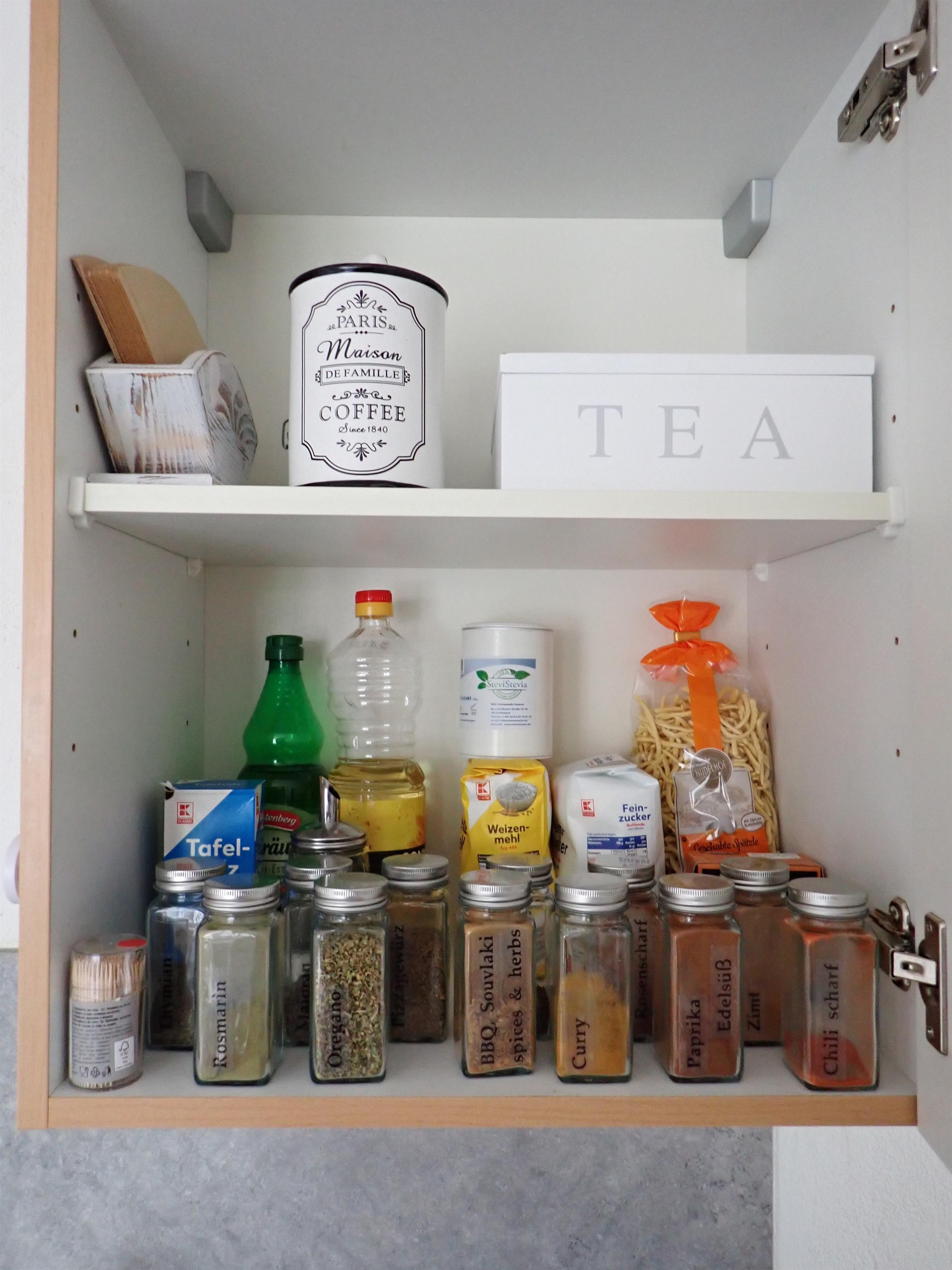 Eine Grundausstattung an Kaffee, Kaffeeweißer, verschiedene Teesorten, Zucker, viele Gewürze, Salz, Pfeffer, Öl und Essig sowie Balsamico und Olivenöl sind ebenfalls vorhanden.