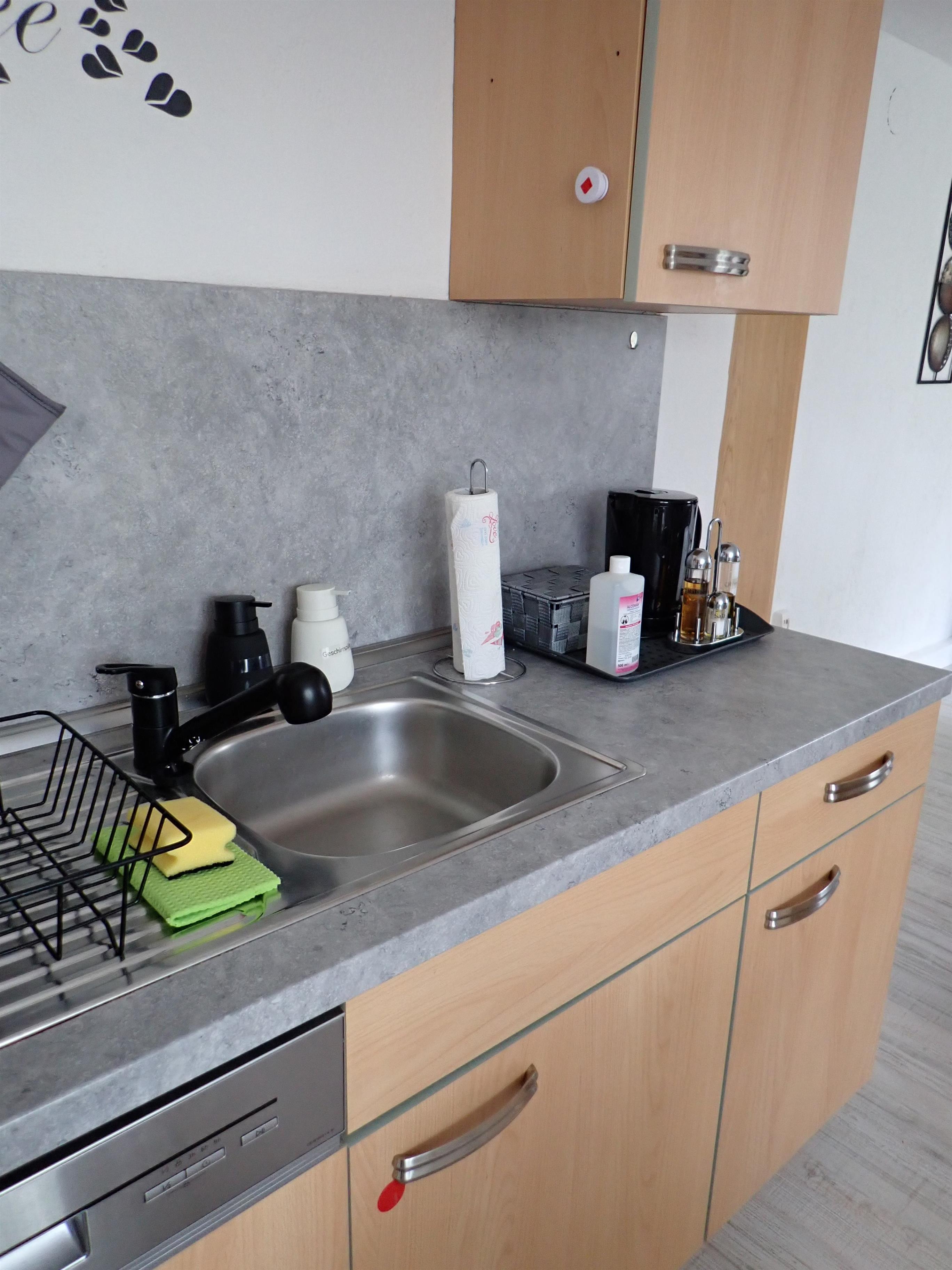 Die sehr gut ausgestattete Küche mit Geschirrspüler (Spülmaschinentabs sind da), Kühlschrank mit Gefrierfach, Herd, Backofen, Standmixer, Pürierstab, Wasserkocher, Toaster, Geschirrtuch und Kaffeemaschine lässt keine Wünsche offen.