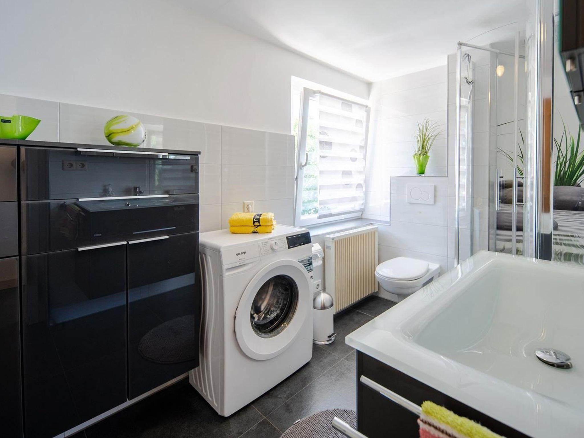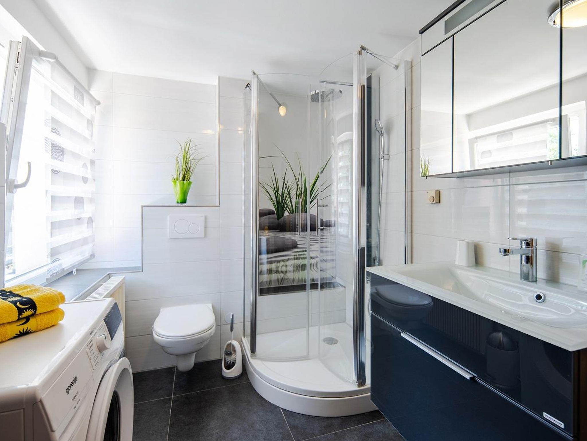 Im Erdgeschoss befindet sich ein großzügig geschnittenes Wohn- und Esszimmer mit Küchenzeile. Hier befindet sich die Möglichkeit einer großzügigen Aufbettung. Über die Treppe erreichen Sie das Obergeschoss mit Bad/WC/DU und Waschmaschine und gelangen in ein großzügiges lichtdurchflutetes Schlafzimmer mit Blick über das Saaletal. Es befindet sich ein 180 cm breites Boxspringbett und ausreichend Stauraum für ihre Garderobe.