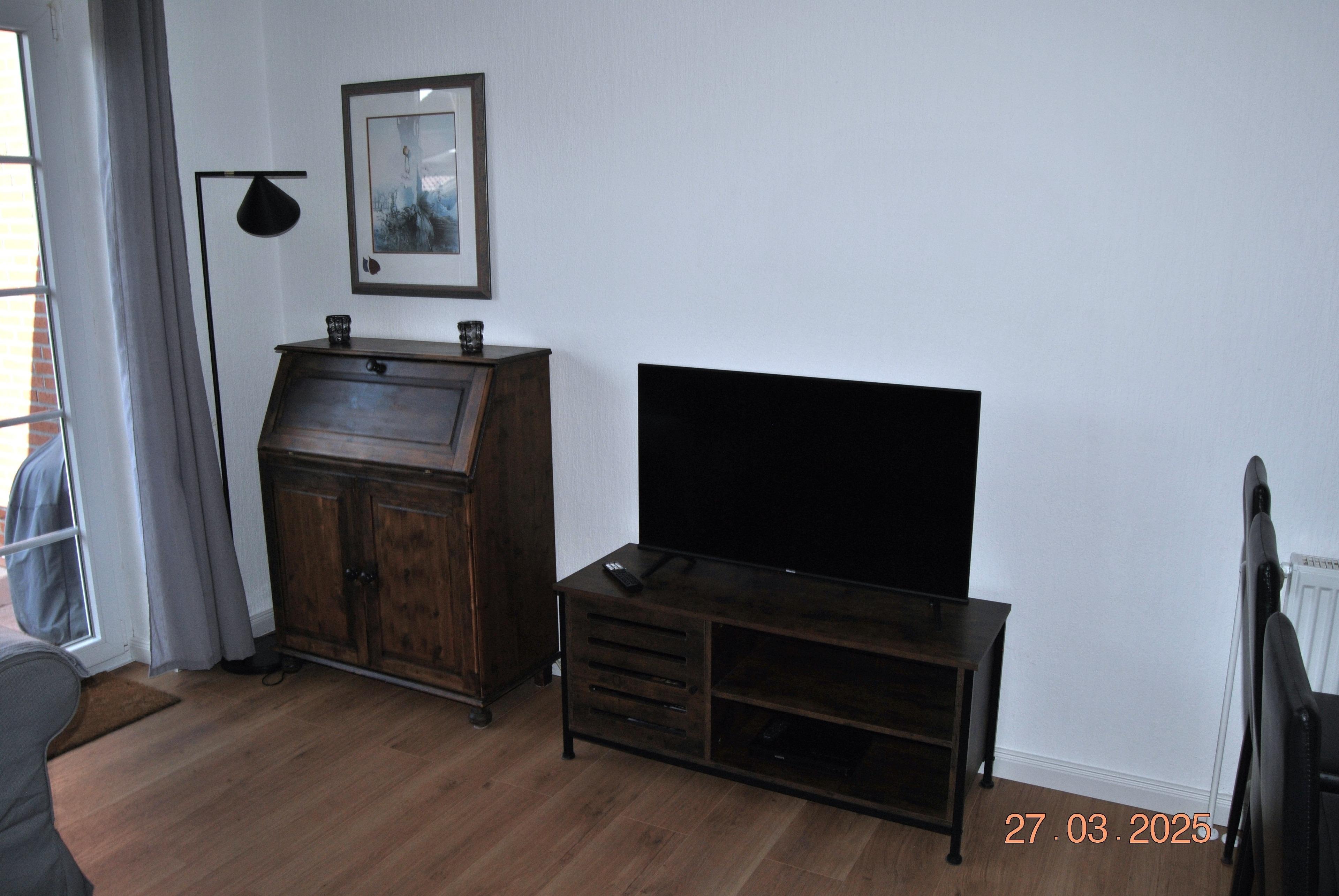 Das Haus hat im Erdgeschoss ein Wohn-Esszimmer mit offener Küche, Sat-TV mit 43 Zoll Smart TV, DVD Player, ein geräumiges helles Bad und einen Abstellraum. Die Küche ist komplett eingerichtet mit Herd, Ceranfeld, Geschirrspüler, Kühl-und Gefrierkombination, Dunstabzugshaube. Zudem finden Sie dort Kaffeemaschine, Toaster, Wasserkocher, und natürlich Geschirr, Töpfe und Pfannen.