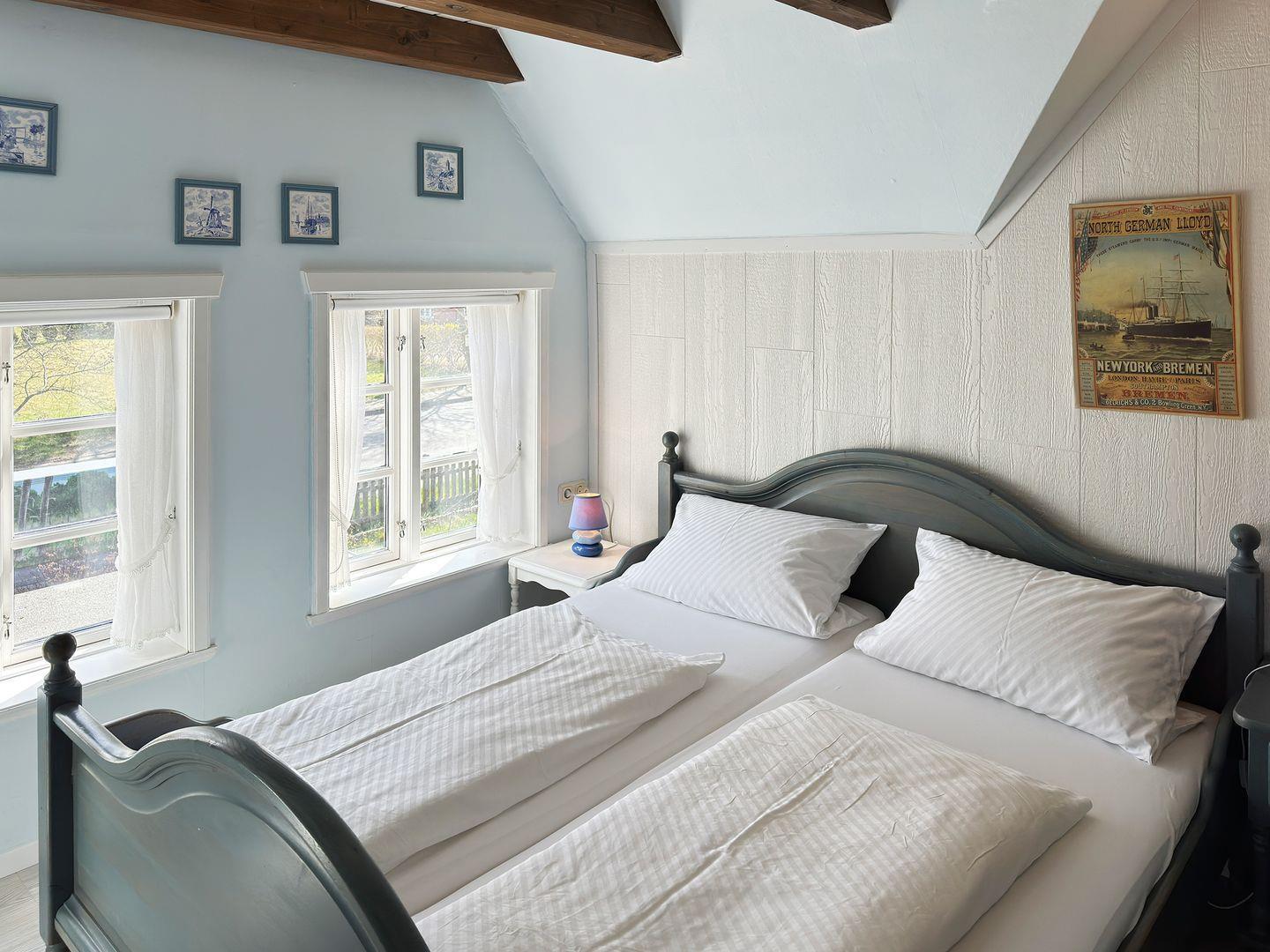 Die Ferienwohnung *Driiwholt* (Friesisch: Treibholz) im 1. Obergeschoss des historischen Friesenhauses *Sanskiin* (Friesisch: Sonnenschein) in Süddorf auf Amrum ist eine 2-Zimmer-Ferienwohnung unter Reet (ca. 35 qm Grundfläche) mit Schlafmöglichkeiten für 1 bis 2 Personen.