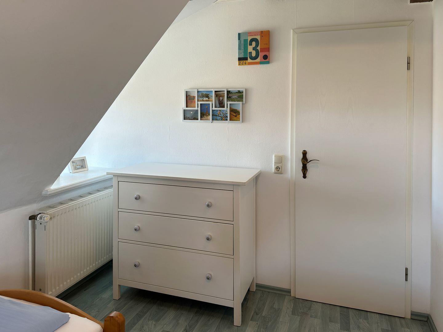 Die beiden Schlafzimmer sind hell und freundlich gestaltet. Für Familien mit kleinen Kindern ist die Ausstattung besonders familienfreundlich, da auf Anfrage ein Hochstuhl und ein Babybett zur Verfügung stehen. Zudem sind Haustiere bei uns herzlich willkommen, sodass auch der geliebte Vierbeiner mit in den Urlaub fahren kann. Für alle Gäste des Hauses befinden sich im Keller eine Münz-Waschmaschine, ein Münz-Trockner und ein Backofen.