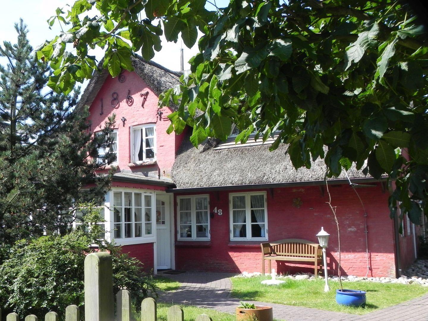 Die Ferienwohnung *Goodshenk* (Friesisch: Marienkäfer) im 1. Obergeschoss des historischen Friesenhauses *Sanskiin* (Friesisch: Sonnenschein) in Süddorf auf Amrum ist eine 3-Zimmer-Ferienwohnung unter Reet (ca. 60 qm Grundfläche) mit Schlafmöglichkeiten für 1 bis 3 Personen. Die Wohnung verfügt über 1 Wohnraum mit WLAN, Sat-TV und offener Küche, 2 Schlafzimmer, 1 Badezimmer mit Dusche und WC; Garten mit Gartenmöbeln (April bis Oktober) zur Gemeinschaftsnutzung. Im Keller befinden sich eine Münz-Waschmaschine und ein Münz-Trockner zur Gemeinschaftsnutzung. Ein PKW-Stellplatz ist vorhanden.