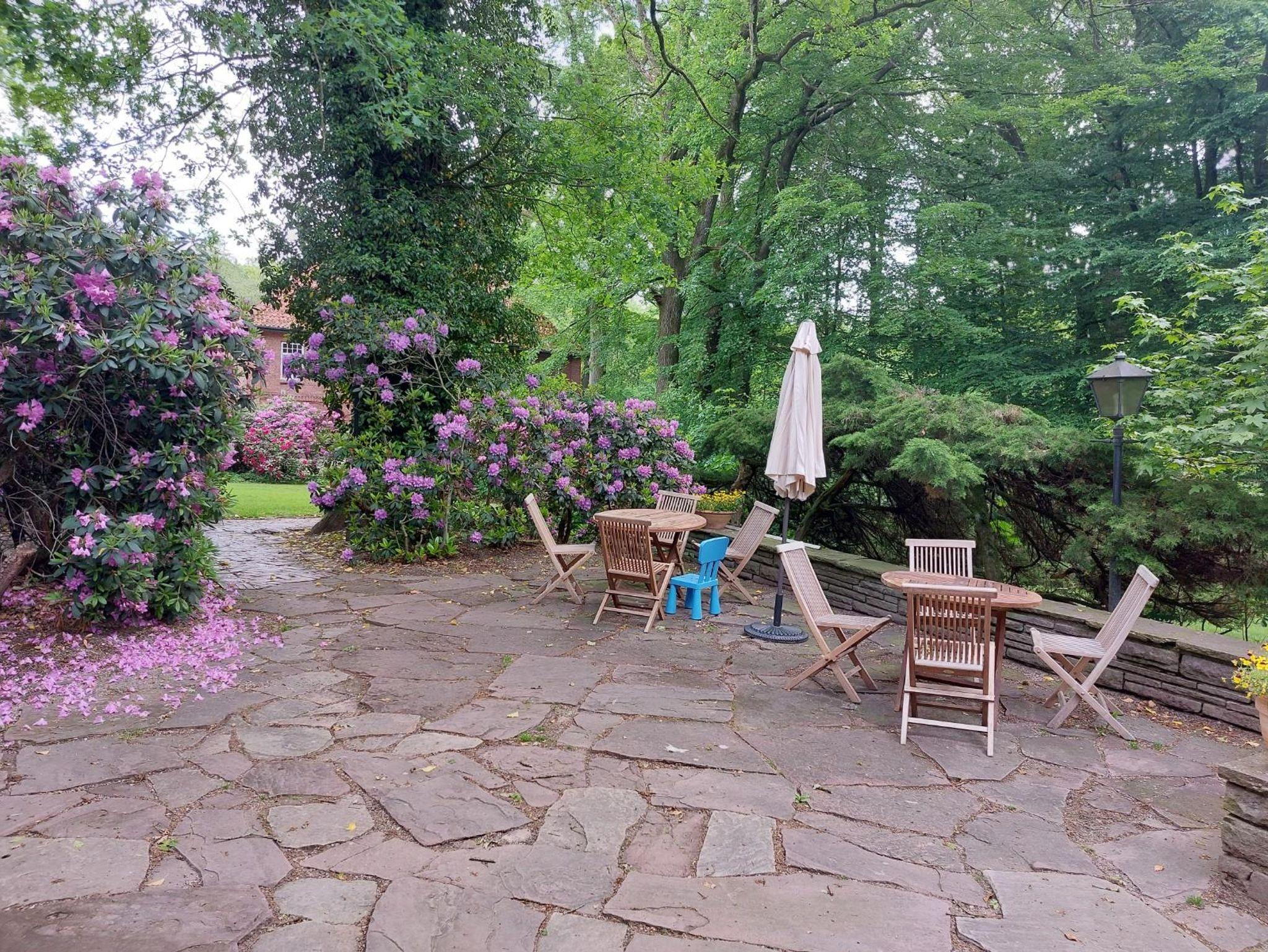 Auf der Terrasse und im Garten stehen Gartenmöbel und Grill zur Verfügung.