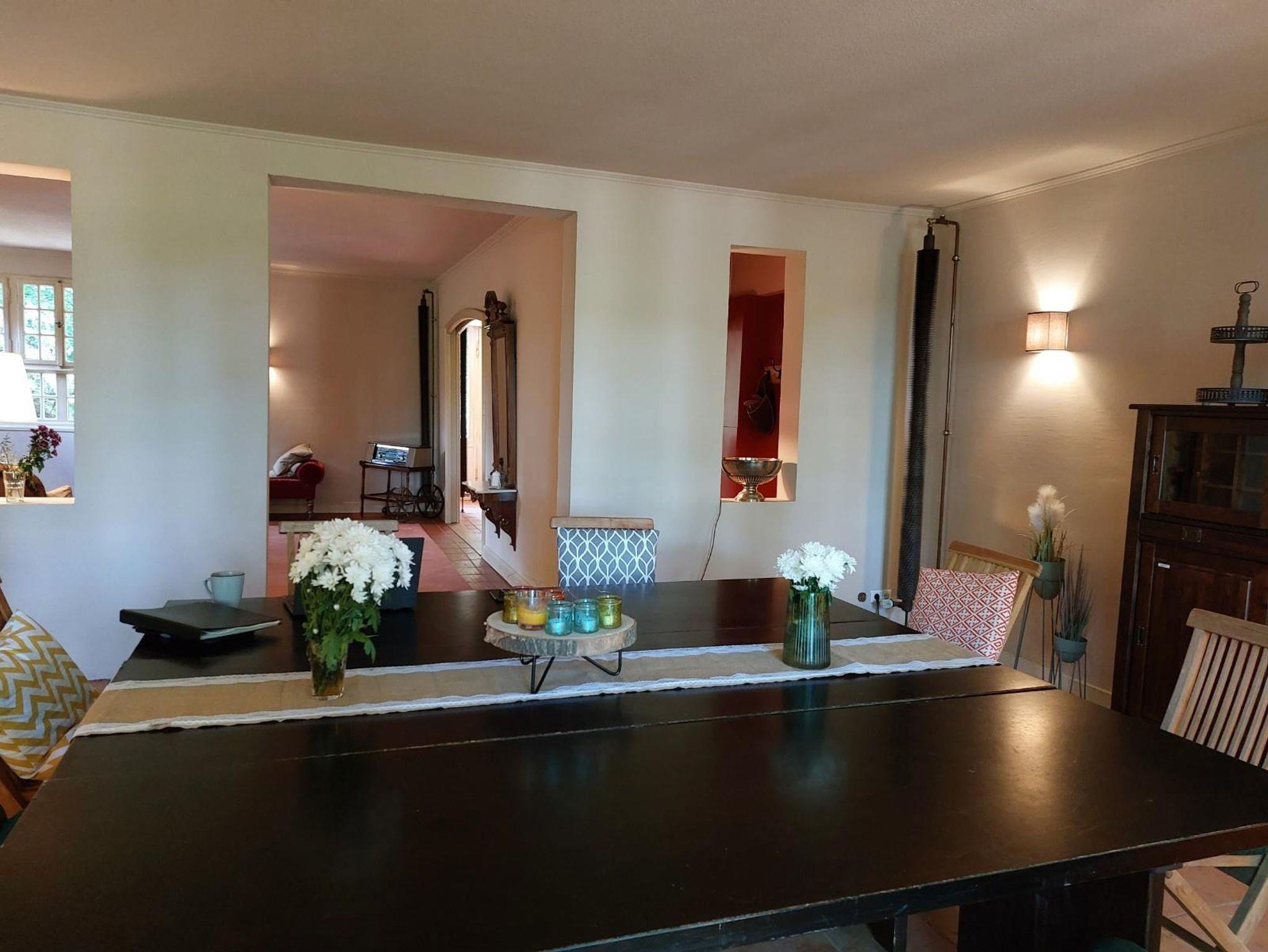 Der Saal des Hauses lädt zum Essen und Trinken ein, hier finden Sie große Tafeln an denen Sie gemeinsam dinieren können, was Sie in der Gemeinschaftsküche zubereitet haben - und vielleicht spielt ja jemand für Sie am Klavier? Außerdem können Sie in diesem Bereich auch ein Feuerchen schüren und den Abend gemütlich ausklingen lassen.