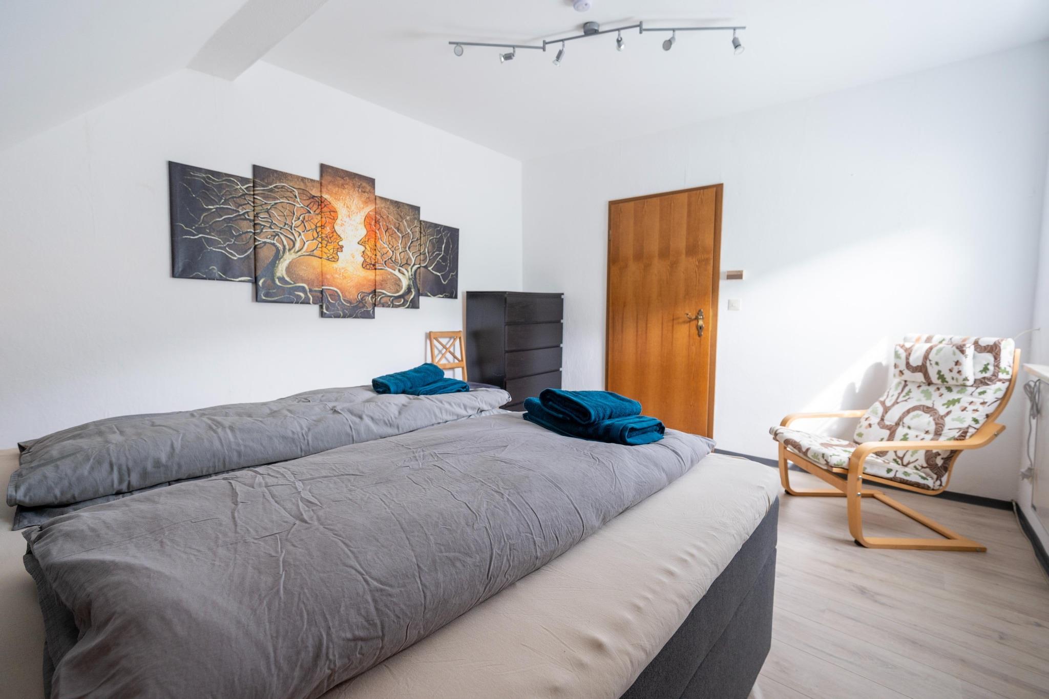 Beliggende langs Moselstraße 4 i Nehren byder dette indbydende feriehus velkommen til op til syv gæster med rummeligt interiør, frodige grønne områder og hyggelige faciliteter. Med tre etager med velindrettet komfort, herunder en pejs, to badeværelser, en balkon og et fuldt udstyret køkken, er det en familievenlig perle, der balancerer rustik varme med moderne lethed. Træd udenfor for at slappe af i den smukt møblerede have, nyd en grill i den skyggefulde gårdhave, eller tag en malerisk gåtur kun 50 meter fra Mosel-floden. Essentials som et supermarked (200 m) og en restaurant (100 m) er inden for gåafstand, hvilket gør det nemt at slappe af og lade op uden at gå langt. Uanset om du planlægger picnics ved floden, vinsmagningsudflugter eller familievandringer, sætter dette charmerende tilflugtssted – med faciliteter som aircondition, privat parkering og endda en barneseng – den perfekte scene. Med Köln/Bonn Lufthavn kun 50 km væk, er din fredfyldte flugt tættere på, end du tror.