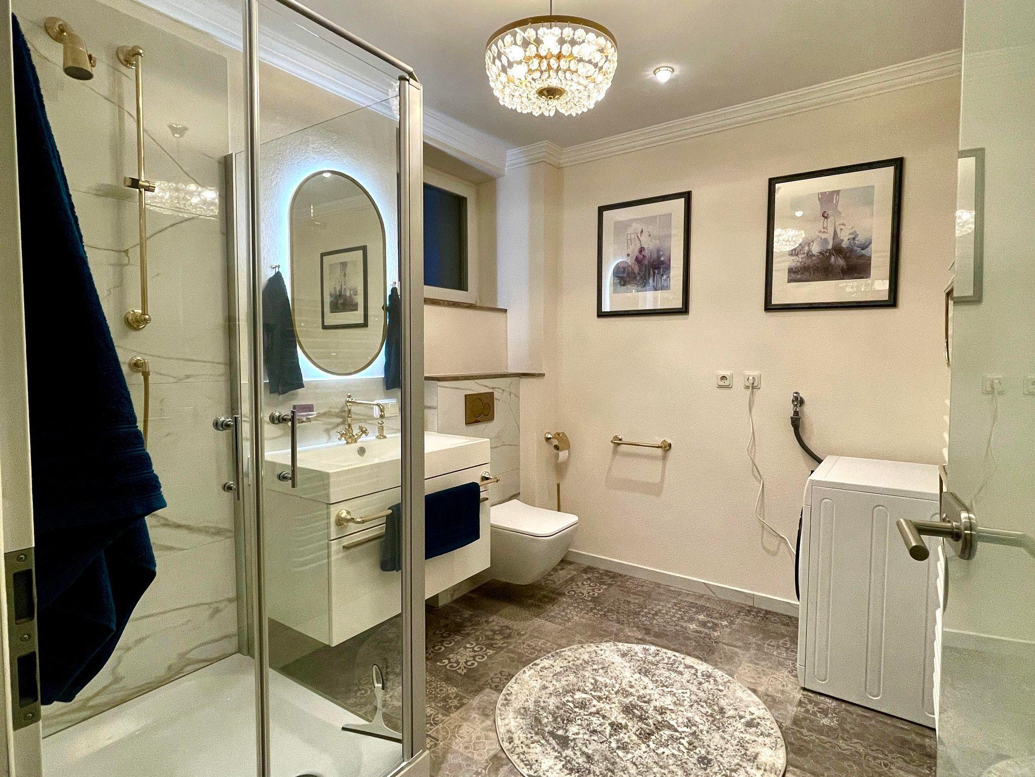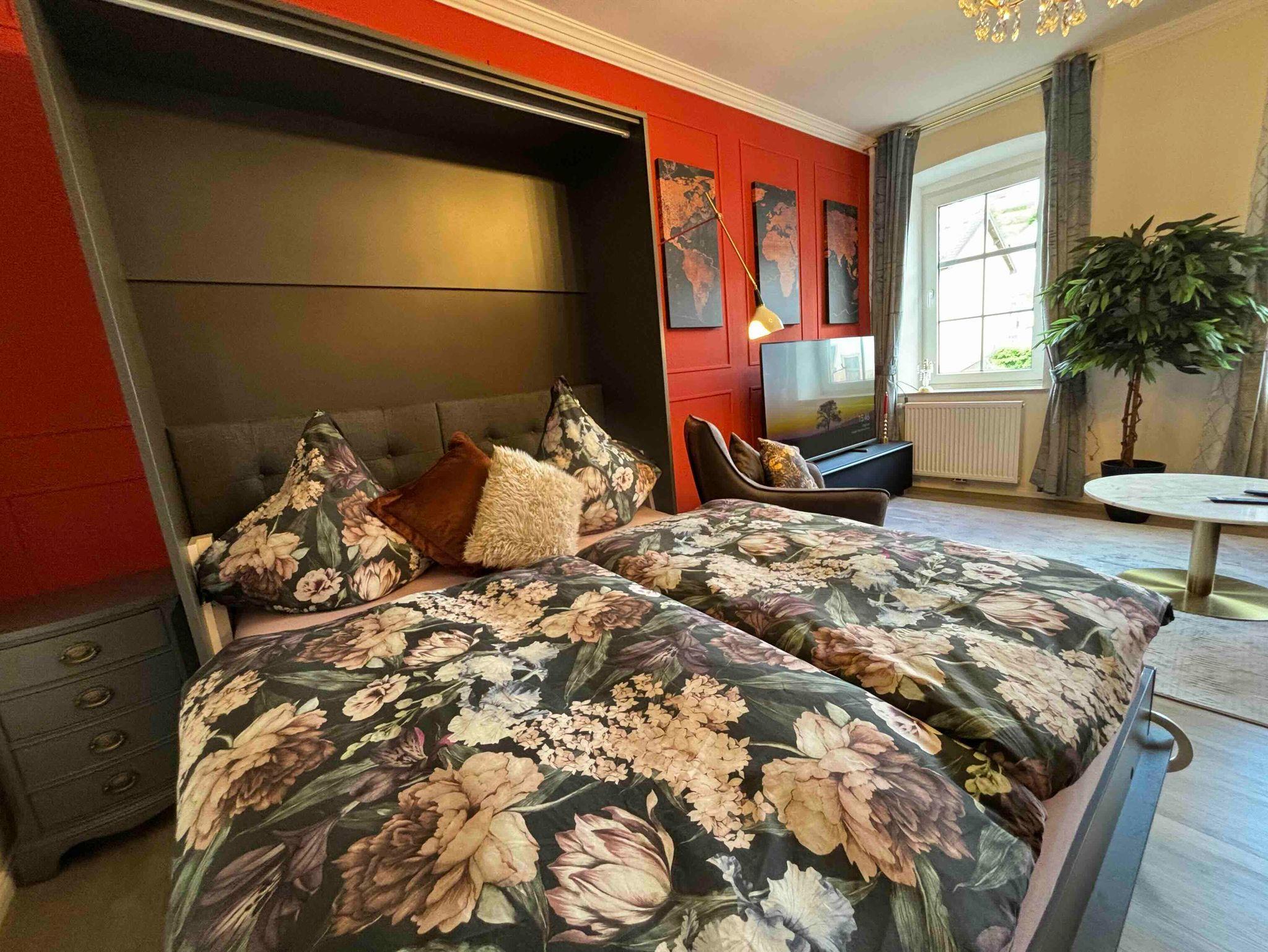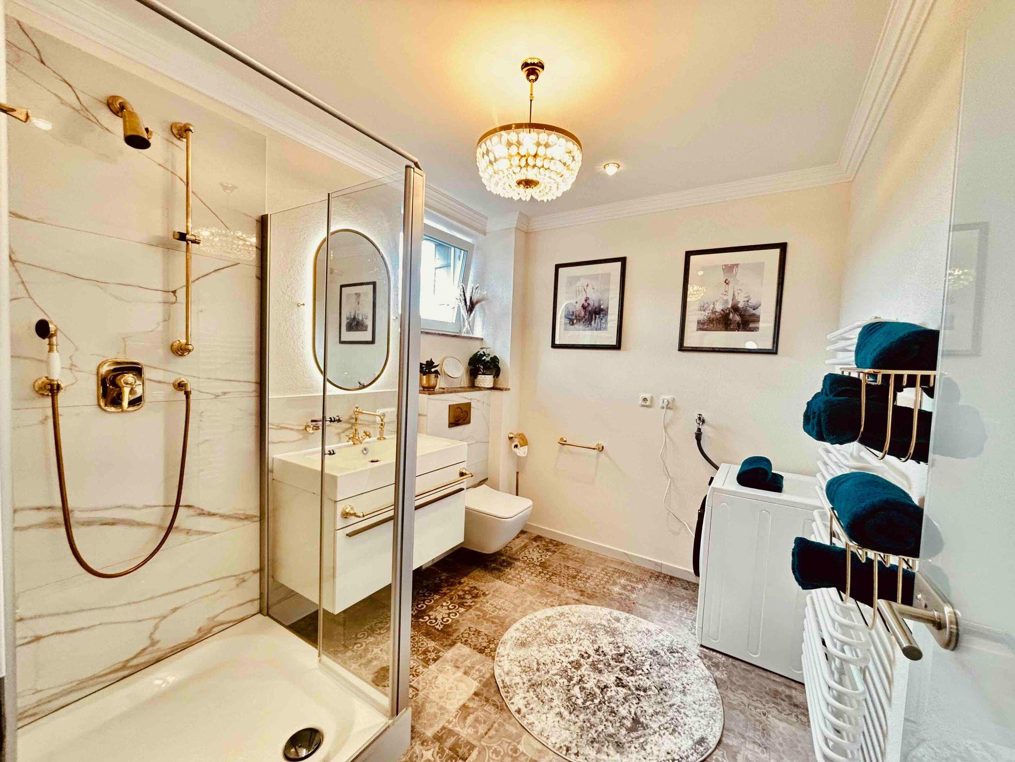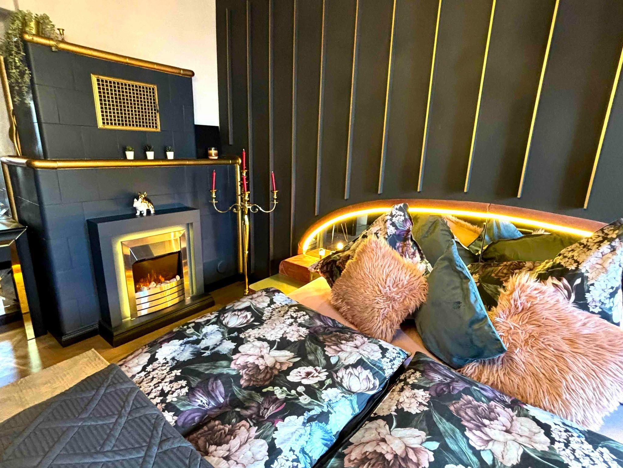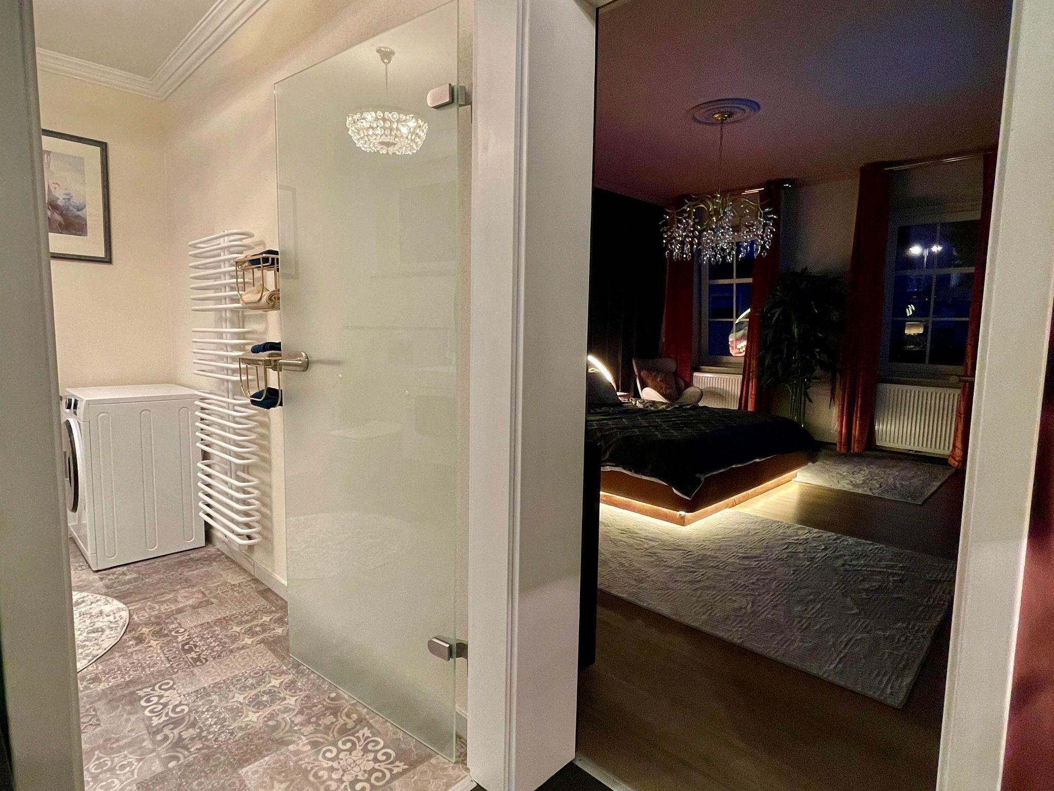 Außerdem steht Ihnen eine voll ausgestattete Küche mit Kaffeevollautomat, Mikrowelle etc. und Zugang zur Dachterrasse zur Verfügung. Darüber hinaus verfügt die Unterkunft über ein großes Schlafzimmer mit einem Luxus Kingsize Bett, XXL TV, Kachelofen und Schminktisch. Sie erwartet zudem ein wunderschönes Tageslicht Badezimmer mit einer großen Dusche und einem Waschtrockner.