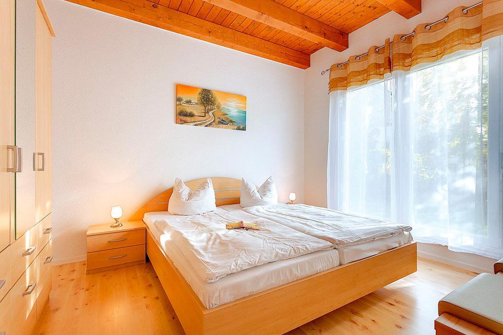 D 15.5 Ferienhaus 2-4 Pers.: 2 1/2-Zimmerhaushälfte, 72 qm Wohnfläche über 2 Etagen. Parterre: Heller Wohn-/Essraum mit Sitzecke, Esstisch, moderner Küchenzeile (Backofen, Mikrowelle). Doppelzimmer. Bad/WC. Treppe in die 1. Etage (leichte Dachschrägen): großzügiger, offener Wohn-/Schlafbereich mit Sitzecke, Sat-TV, 2 Einzelbetten (D 15.5/15.5B mit franz. Bett). Terrasse mit Sitzmöbeln, Grill, Wasserblick (D 15.5 und D 15.5A).