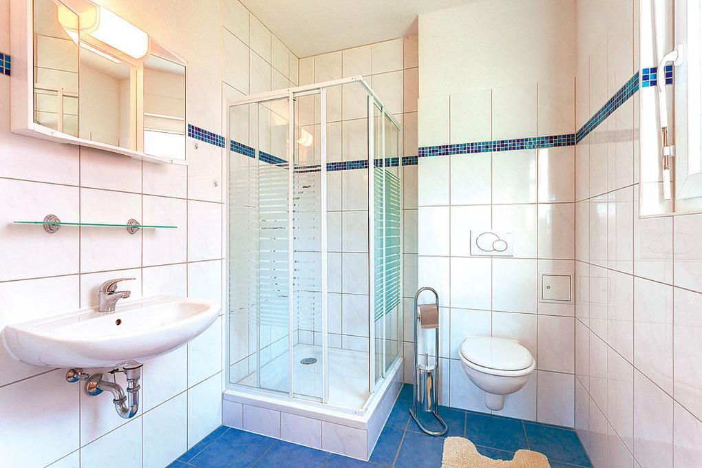 D 15.5 Ferienhaus 2-4 Pers.: 2 1/2-Zimmerhaushälfte, 72 qm Wohnfläche über 2 Etagen. Parterre: Heller Wohn-/Essraum mit Sitzecke, Esstisch, moderner Küchenzeile (Backofen, Mikrowelle). Doppelzimmer. Bad/WC. Treppe in die 1. Etage (leichte Dachschrägen): großzügiger, offener Wohn-/Schlafbereich mit Sitzecke, Sat-TV, 2 Einzelbetten (D 15.5/15.5B mit franz. Bett). Terrasse mit Sitzmöbeln, Grill, Wasserblick (D 15.5 und D 15.5A).