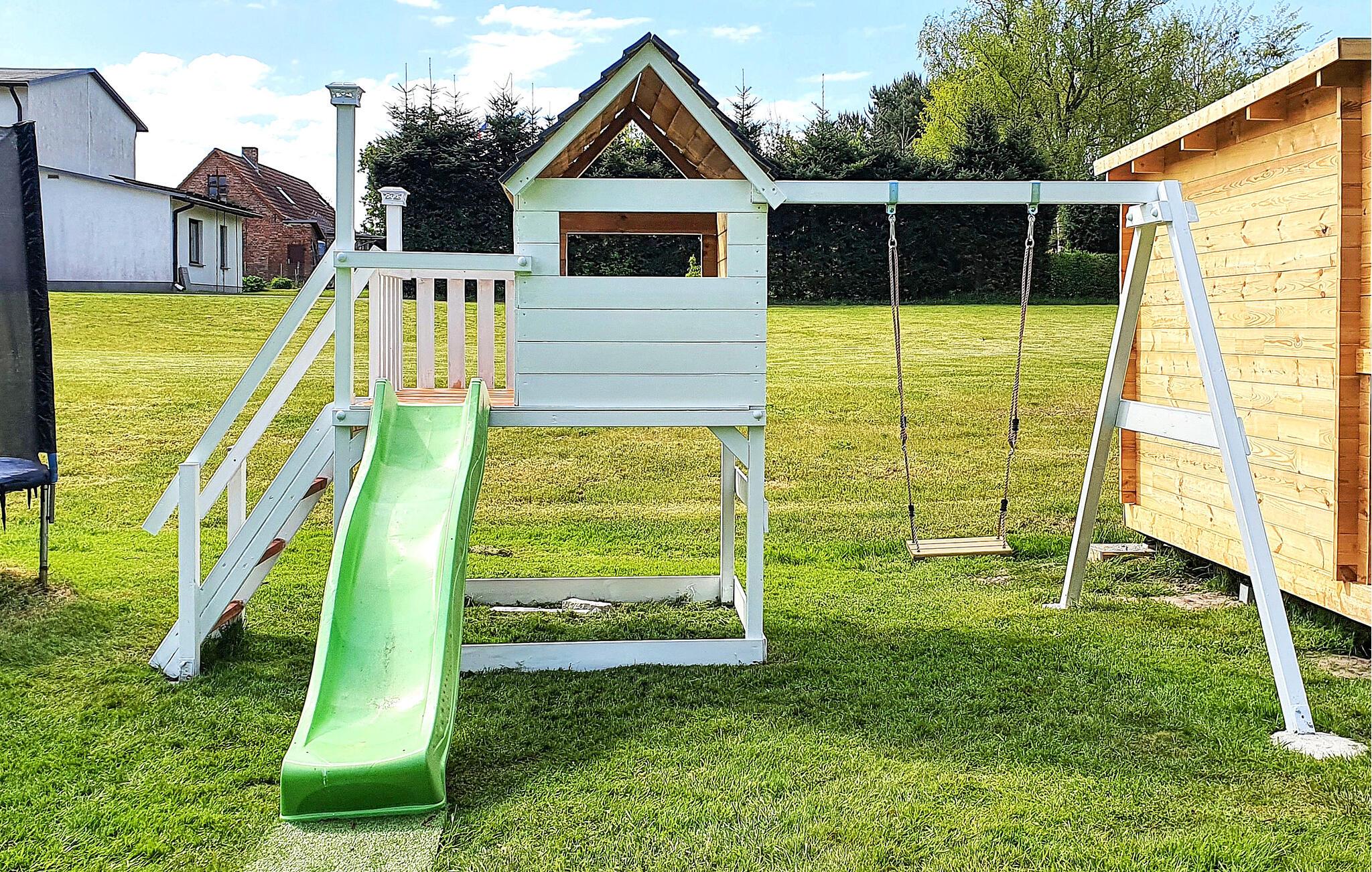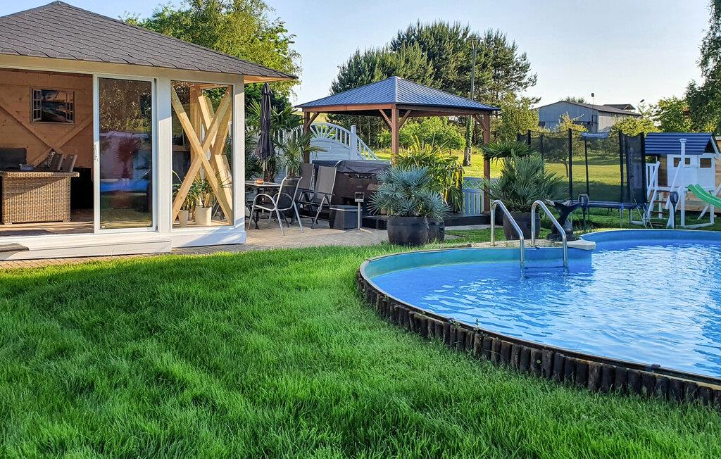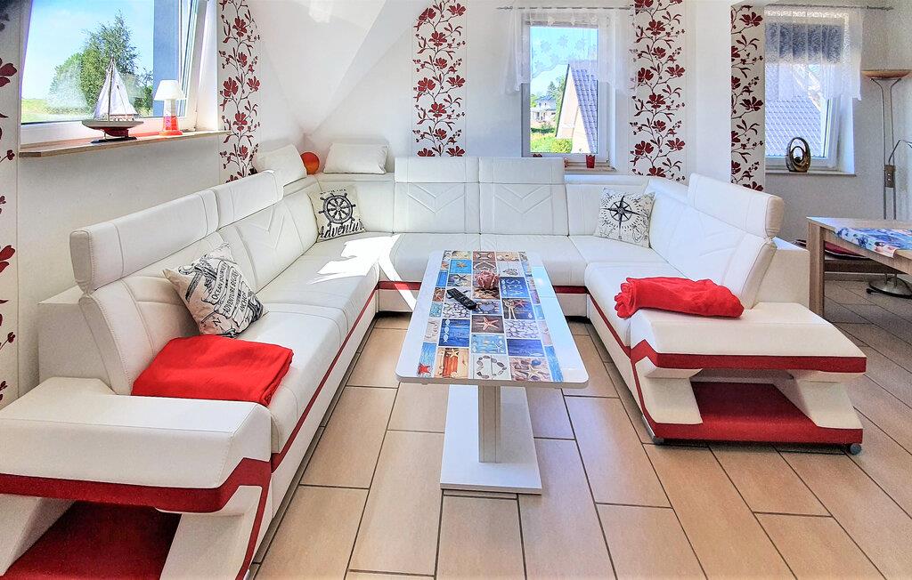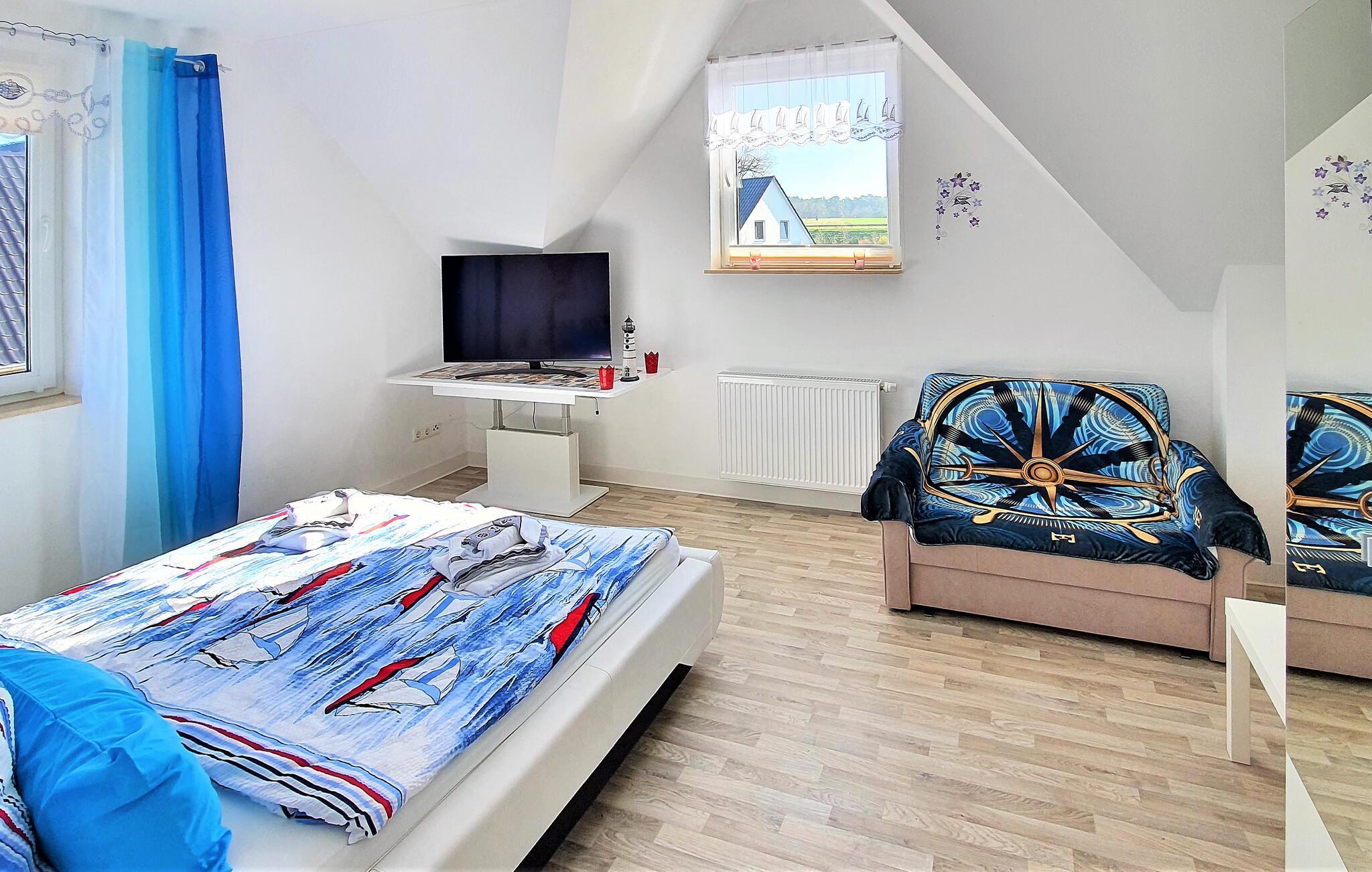 Den komfortabelt og moderne indrettede ferielejlighed er nybygget og udstyret i 2014. Ferielejligheden til 2-5 personer ligger på 1. sal i et feriehus, kun ca. 500 m fra Achterwasser (Nepperminer See). Der er også en pejs i stuen Østersøferiestedet Bansin ligger ca. 8 km væk. Ferielejligheden har en stue (polstrede møbler med sovefunktion, fladskærms-tv, radio/cd, spisebord, nogle med pejs). , soveværelse (dobbeltseng, fladskærms-tv), tekøkken (elkomfur, køleskab med fryser, miniovn, diverse køkkenmaskiner), bruser/toilet, centralvarme, WiFi En barneseng og en høj stol kan leveres et møbleret udendørsområde, en udendørs pool (ikke opvarmet), en grillplads, trampolin og parkeringsplads.
