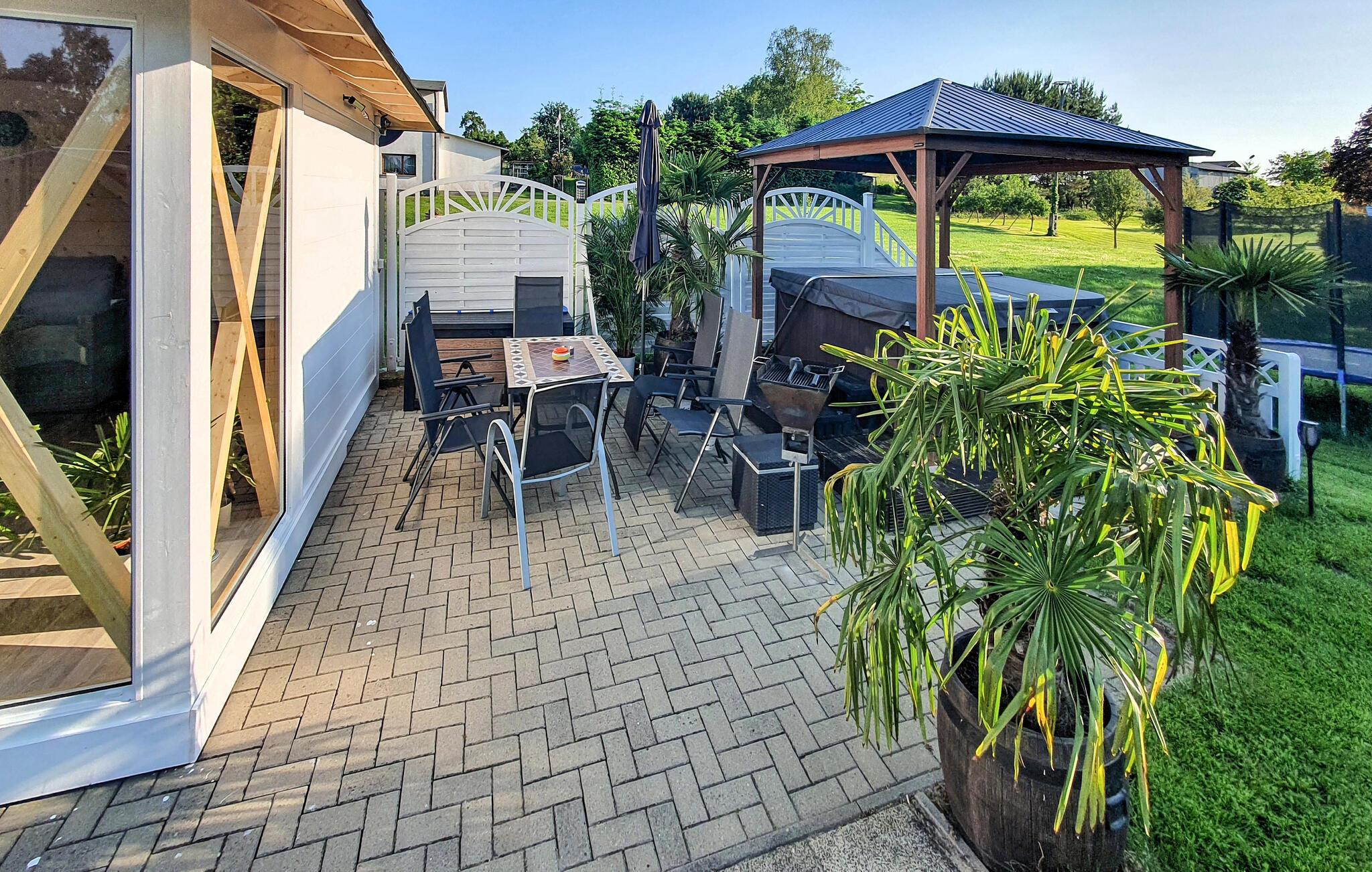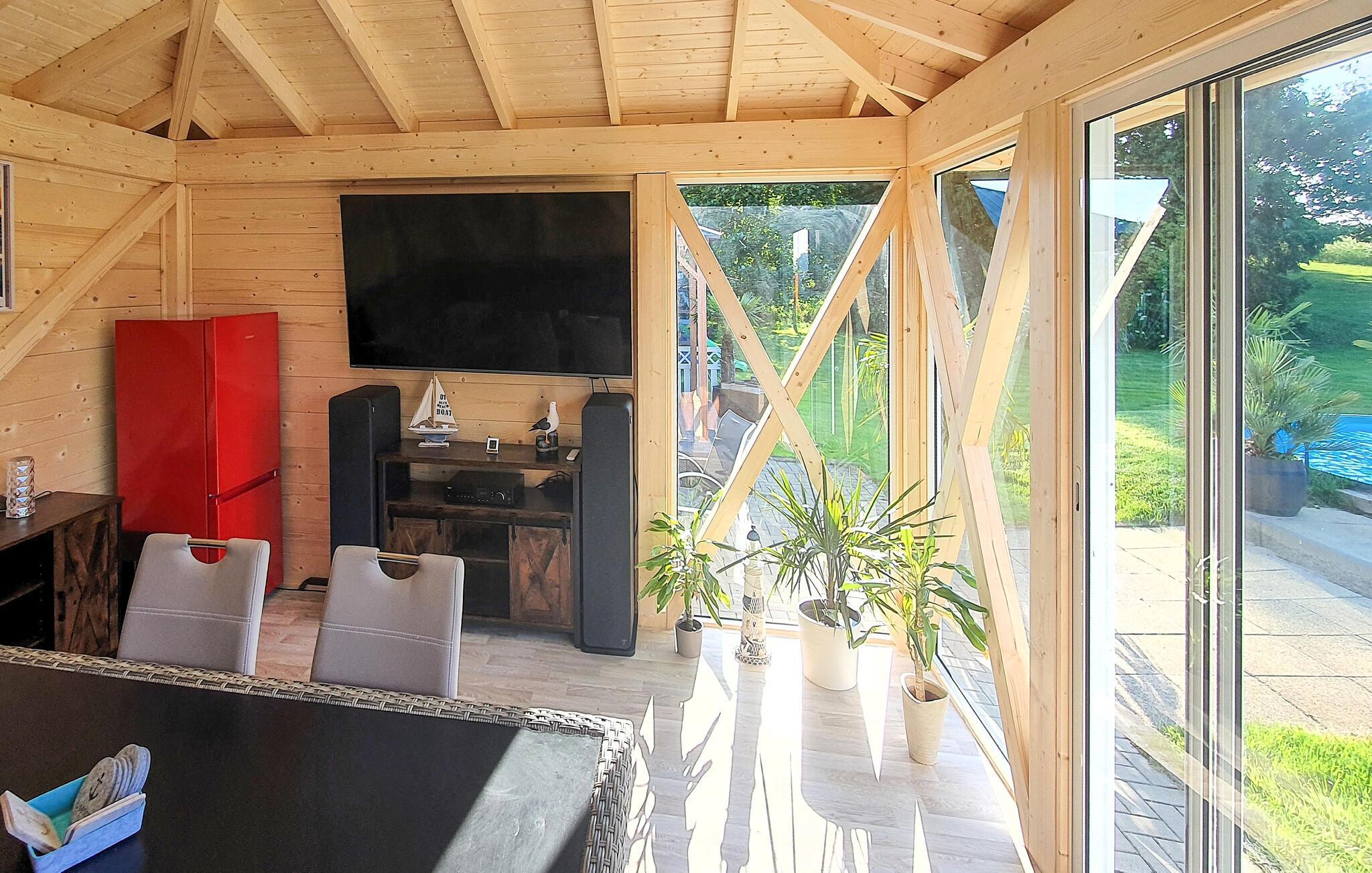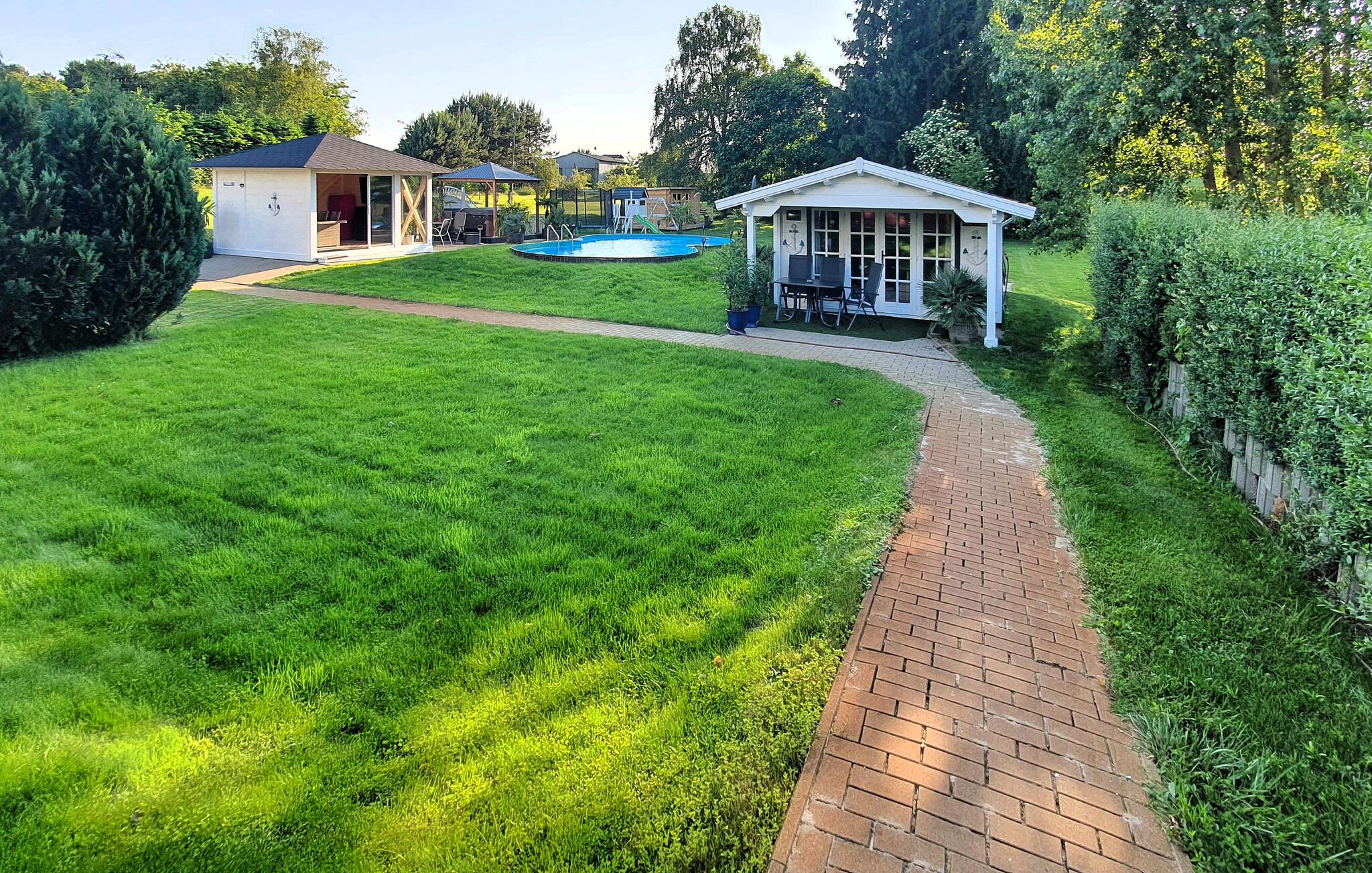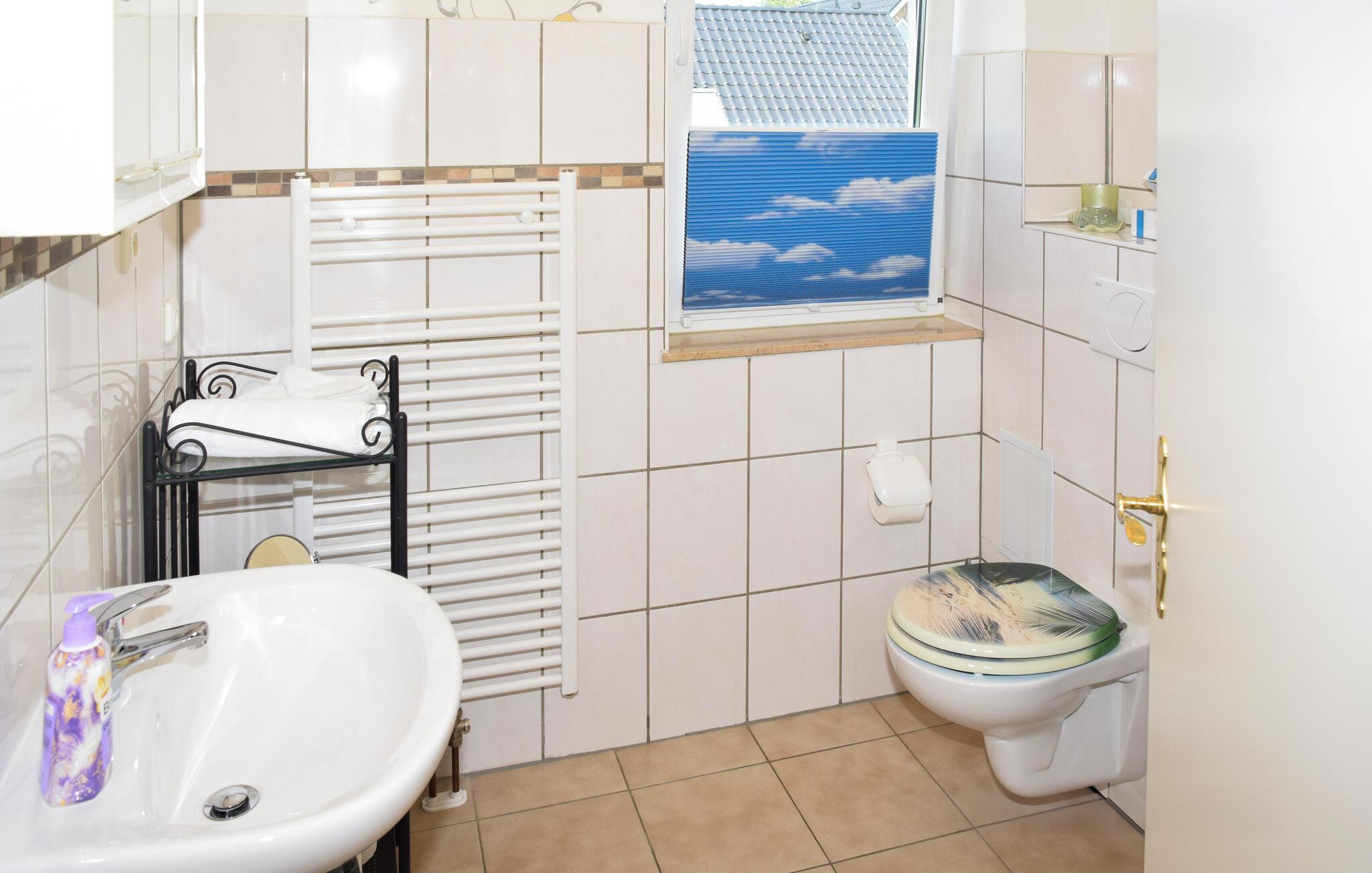Den komfortabelt og moderne indrettede ferielejlighed er nybygget og udstyret i 2014. Ferielejligheden til 2-5 personer ligger på 1. sal i et feriehus, kun ca. 500 m fra Achterwasser (Nepperminer See). Der er også en pejs i stuen Østersøferiestedet Bansin ligger ca. 8 km væk. Ferielejligheden har en stue (polstrede møbler med sovefunktion, fladskærms-tv, radio/cd, spisebord, nogle med pejs). , soveværelse (dobbeltseng, fladskærms-tv), tekøkken (elkomfur, køleskab med fryser, miniovn, diverse køkkenmaskiner), bruser/toilet, centralvarme, WiFi En barneseng og en høj stol kan leveres et møbleret udendørsområde, en udendørs pool (ikke opvarmet), en grillplads, trampolin og parkeringsplads.