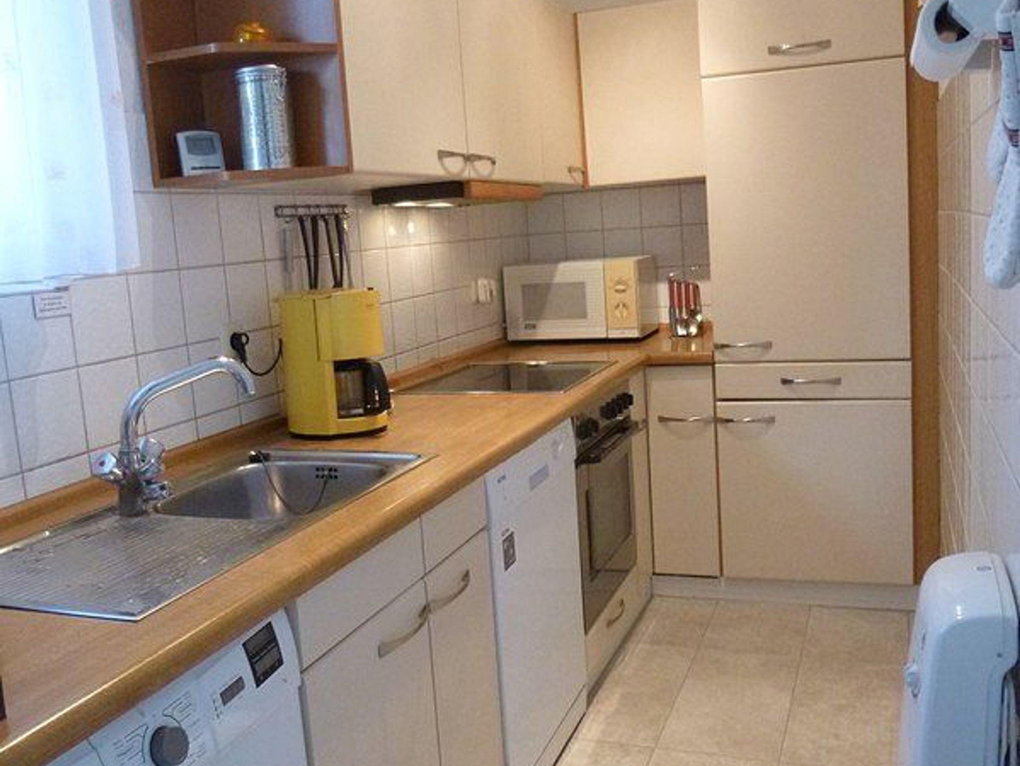 Die modern ausgestattete Einbauküche verfügt über einen Geschirrspüler und Waschmaschine. Selbstverständlich stehen Ihnen neben Cerankochfeld und Backofen auch ein Kühlschrank mit Gefrierfach, sowie eine Mikrowelle und Kaffeemaschine zur Verfügung. Die Küche ist mit reichlich Geschirr ausgestattet, sowie verschiedenen Kleinelektrogeräten.