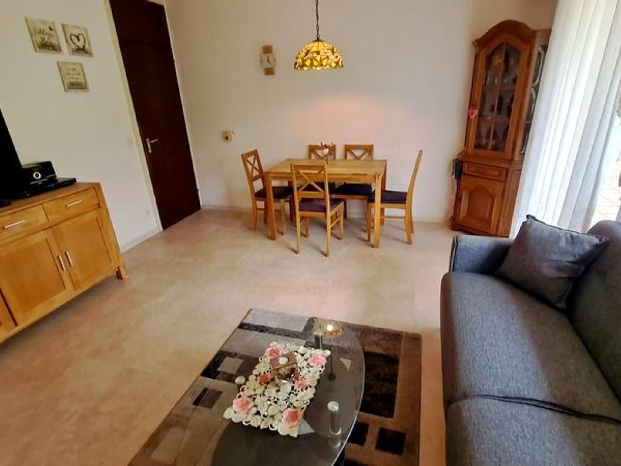 Das gemütlich eingerichtete Wohnzimmer bietet Ihnen neben einer Couchgarnitur und Esstischgruppe auch einen großen LCD-Fernseher mit Kabelanschluss, DVD- Player und eine Stereoanlage mit CD- Player und Radio. Des Weiteren haben Sie die Möglichkeit, unseren kostenlosen Internetzugang (W-Lan gegen Gebühr) zu nutzen.