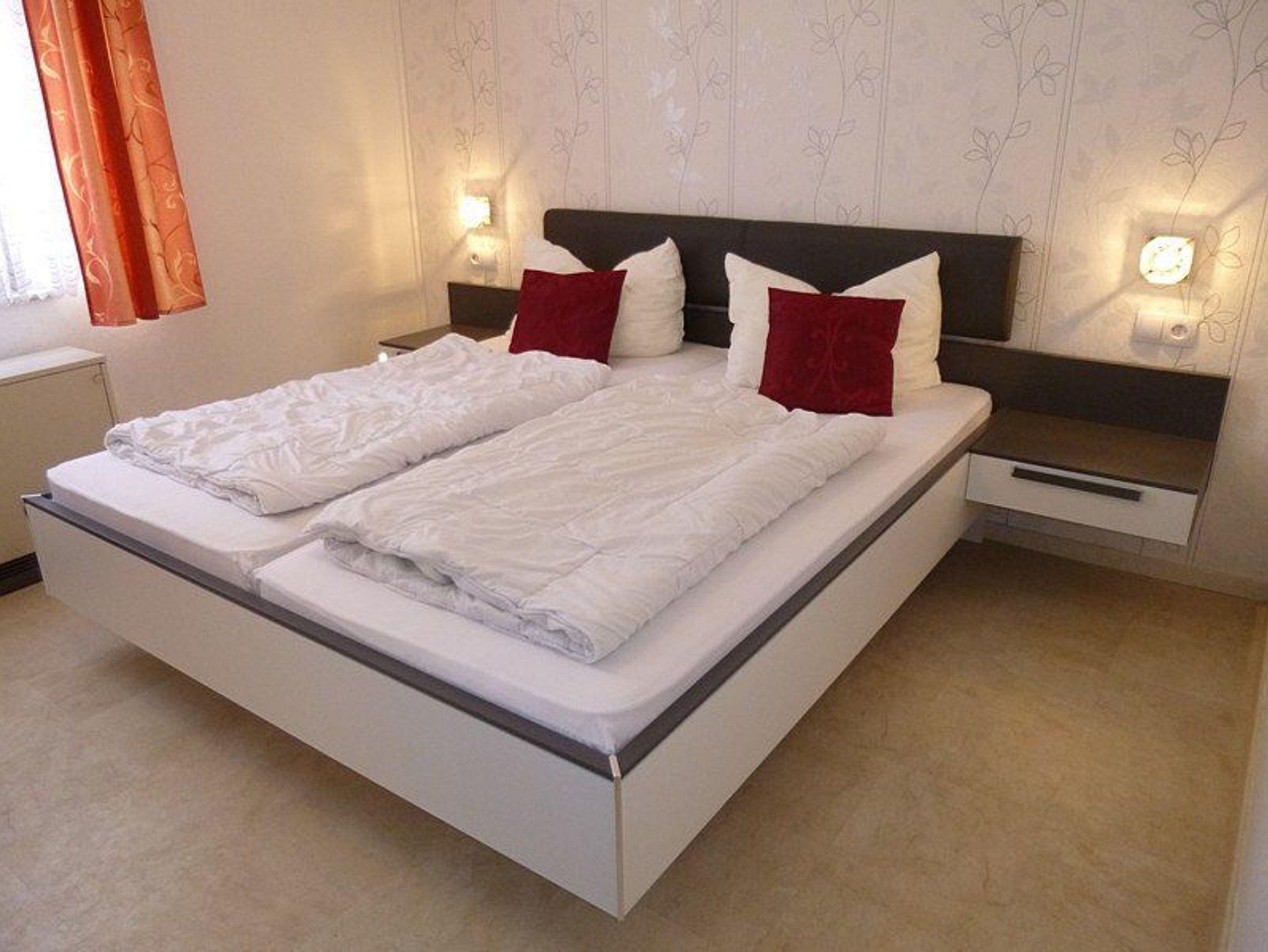 Auch im Schlafzimmer, mit großem Doppelbett, kann man Kabelprogramme auf einem großen LCD-Fernseher schauen.
