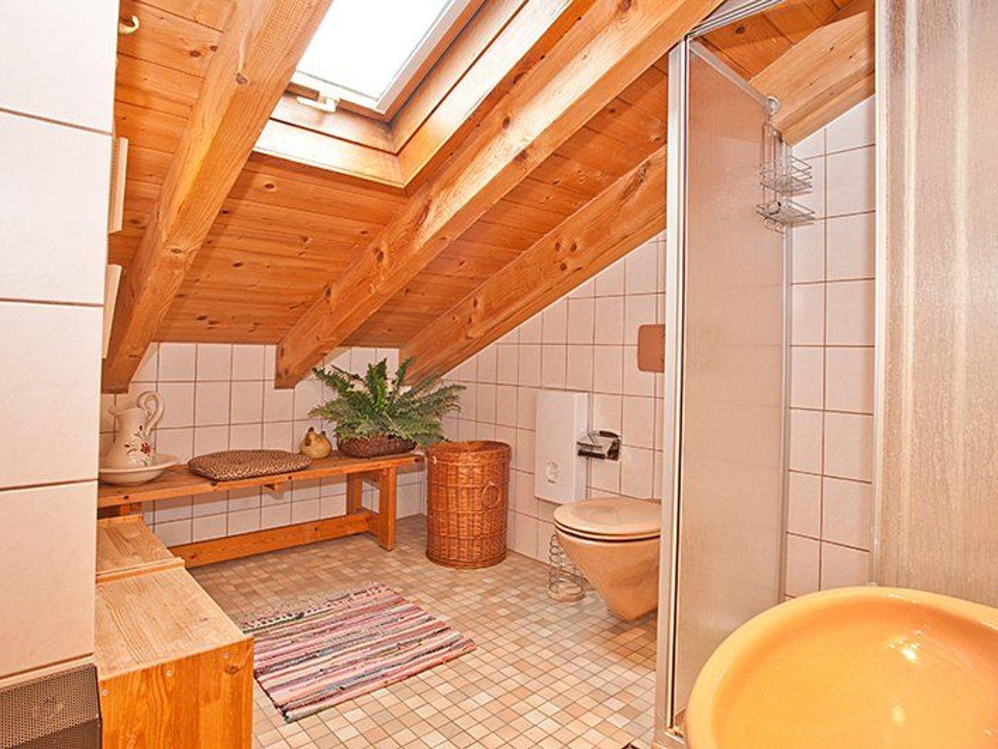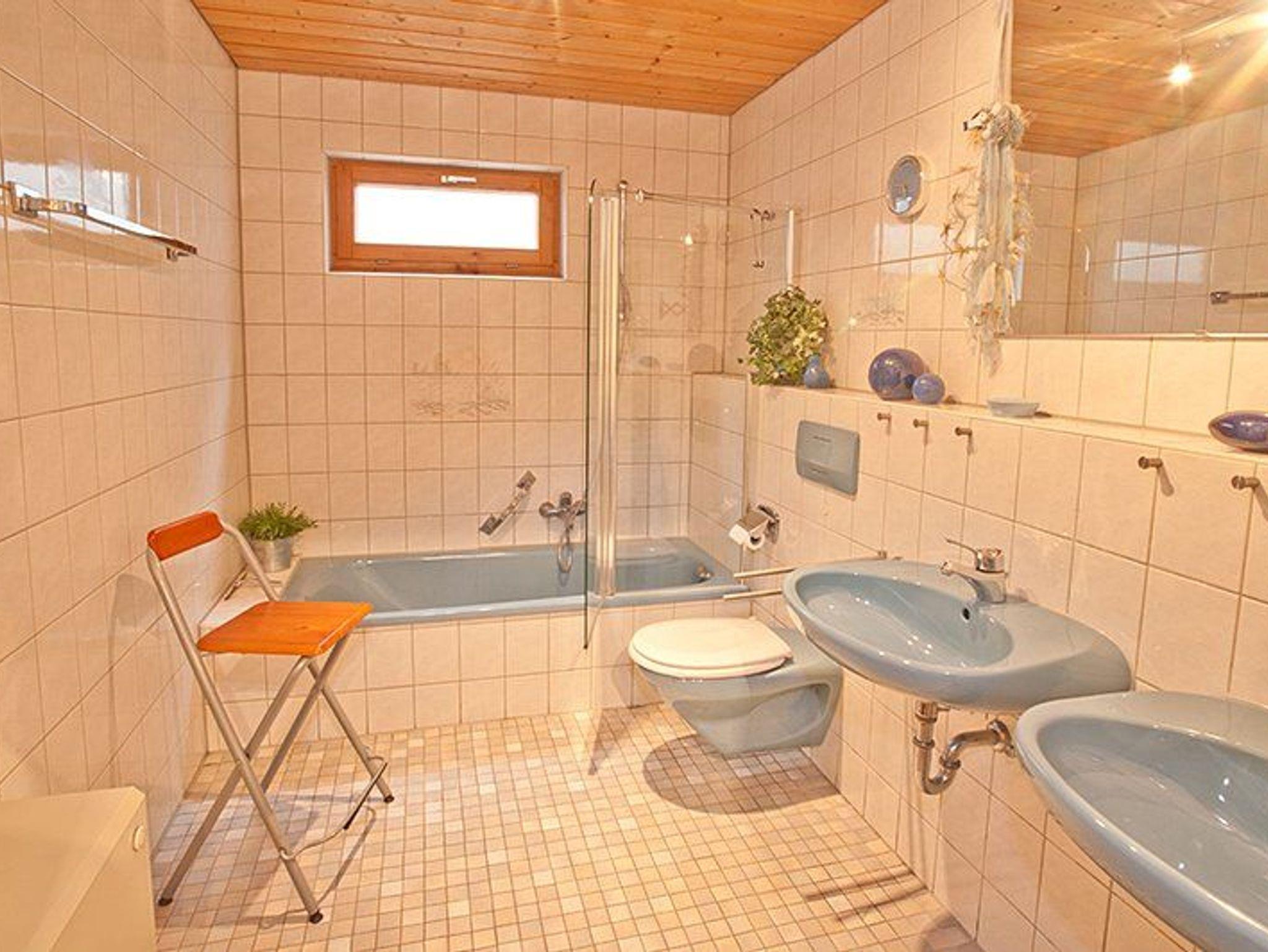 Das Obergeschoss verfügt über zwei helle Schlafzimmer und ein Bad mit Dusche/WC. Ein weiteres Schlafzimmer sowie ein Badezimmer mit Badewanne, Dusche und Doppelwaschbecken befinden sich im Untergeschoss. Alle Badezimmer sind mit einem Fön ausgestattet.
