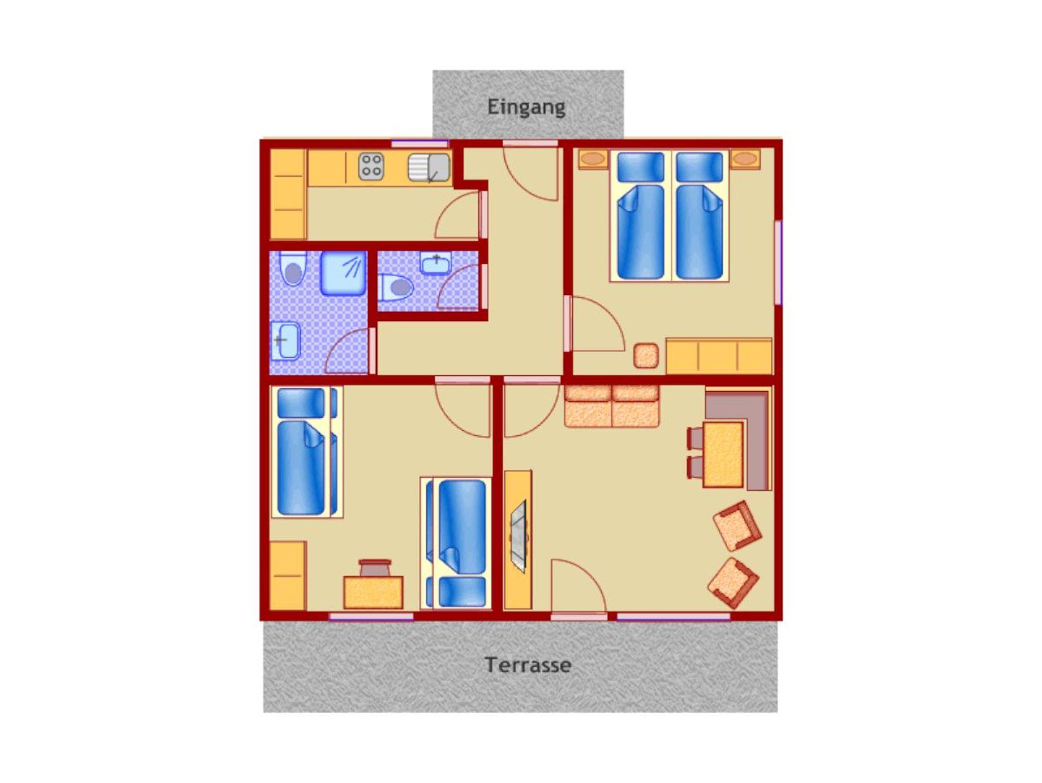 Das zweite Schlafzimmer bietet 4 Personen Schlafmöglichkeit und ist mit 2 Etagenbetten eingerichtet.