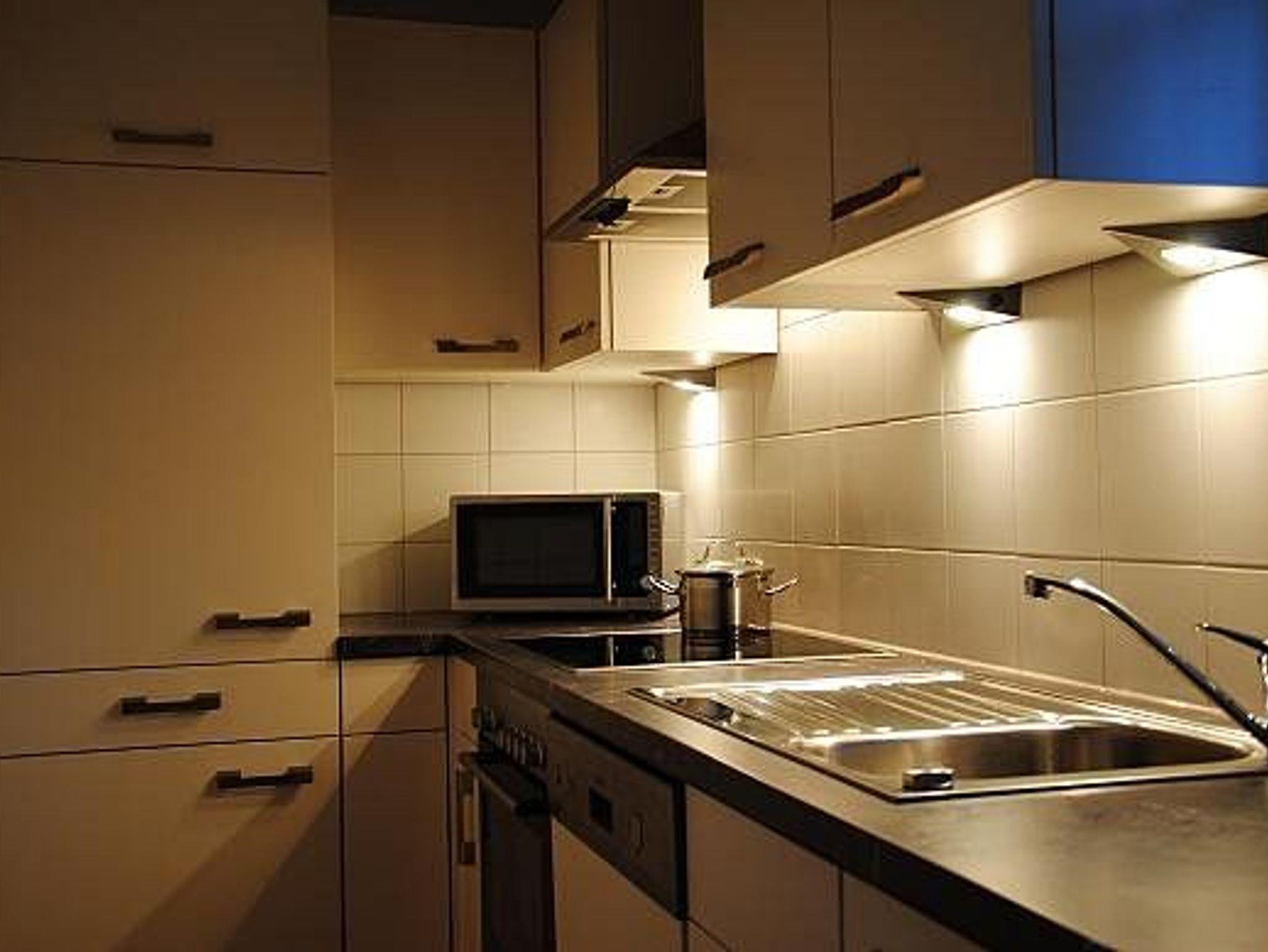 Die Einbauküche verfügt über einen Backofen, Herd mit Ceranfeld, Geschirrspüler, Microwelle und Waschmaschine. Selbstverständlich steht ein Kühlschrank mit Gefrierfach und eine Kaffeemaschine zur Verfügung.