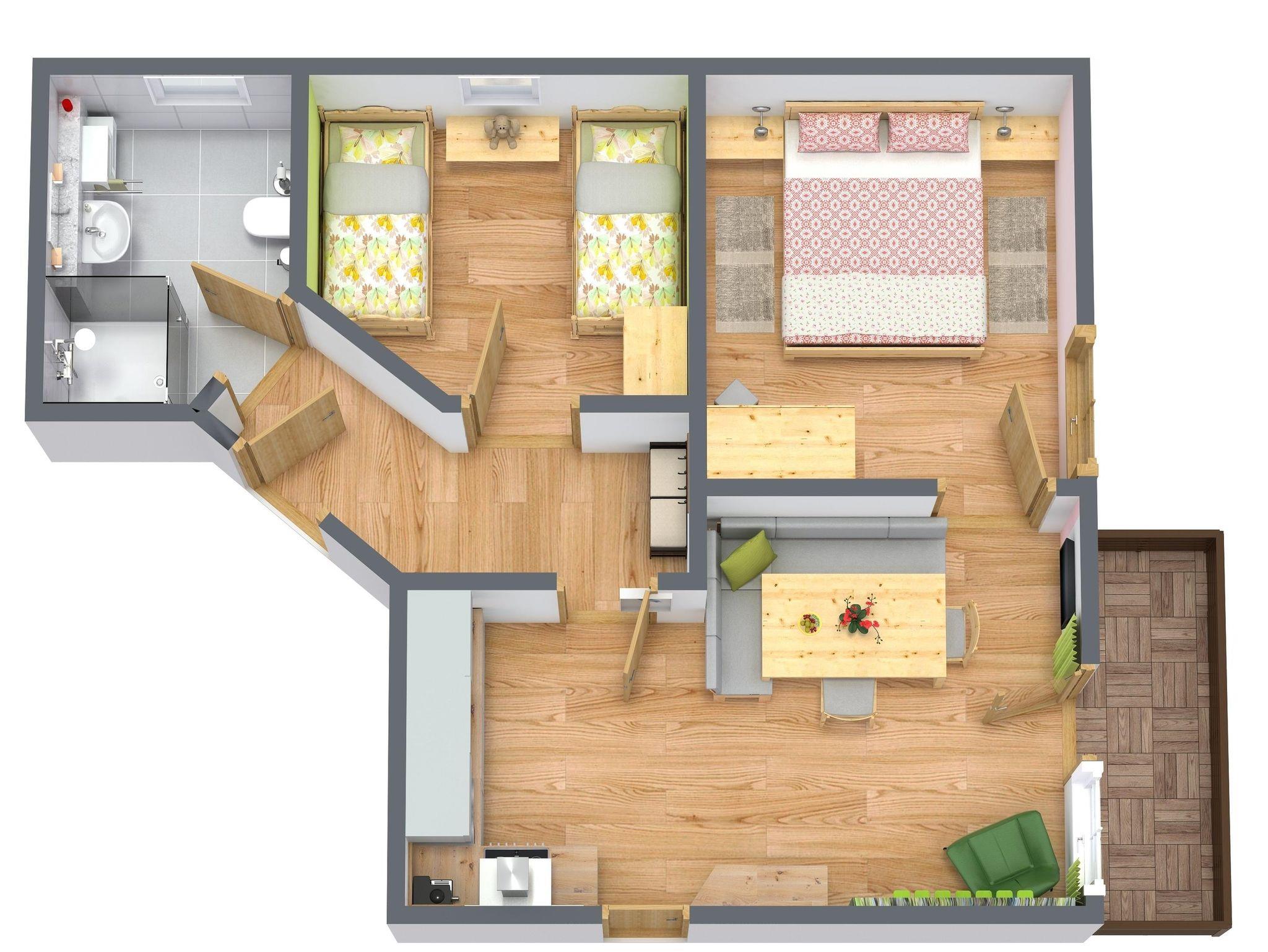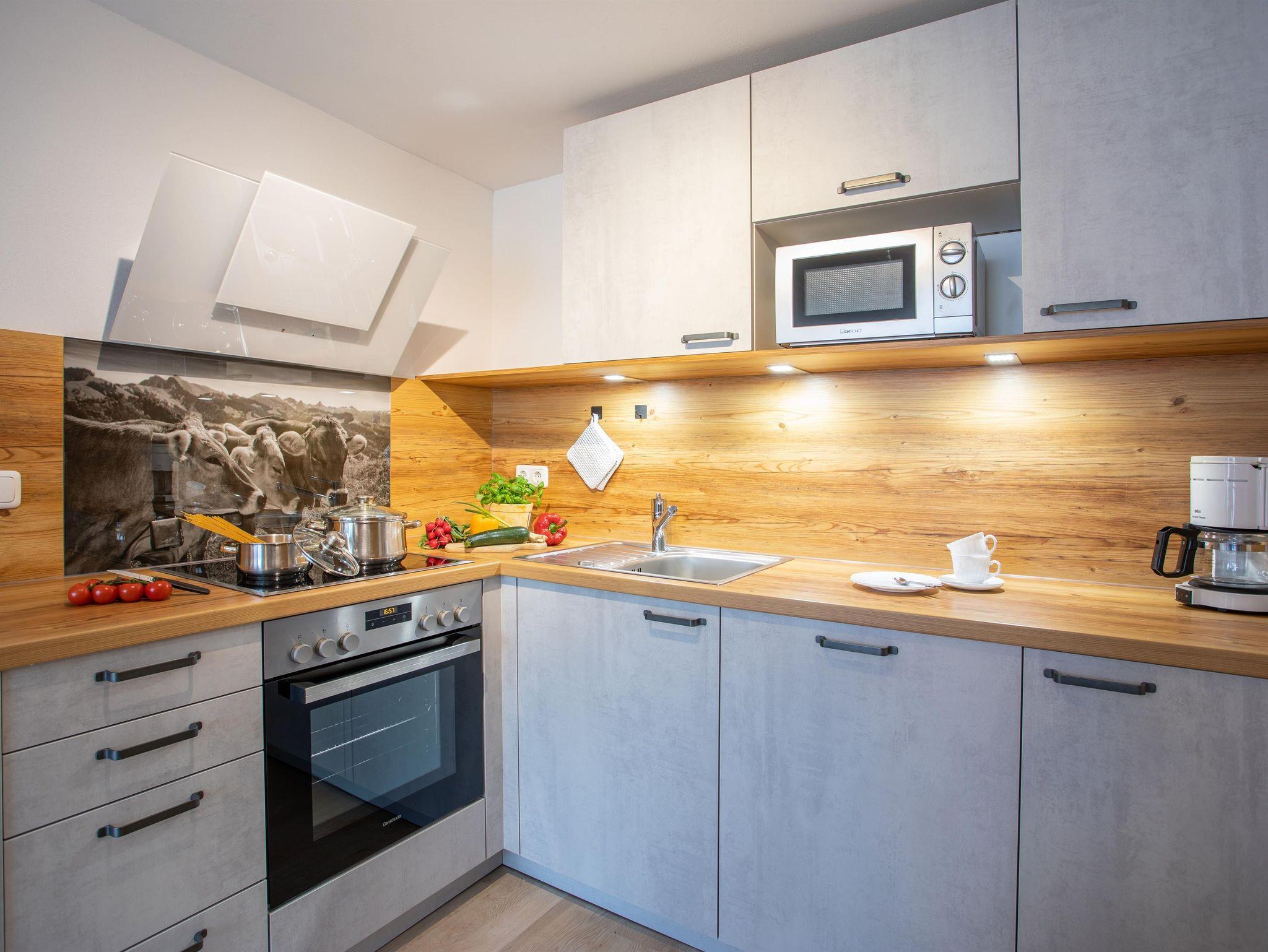 Unsere helle und liebevoll eingerichtete 3-Zimmer-Ferienwohnung Breitenberg (48 qm) ist bestens für bis zu 4 Personen geeignet. Es gibt zwei Schlafzimmer. Das Elternschlafzimmer ist mit einem Doppelbett ausgestattet. Im Kinderschlafzimmer gibt es zwei Einzelbetten (80x200cm). Die gemütliche Wohnküche mit komplett ausgestatteter Küchenzeile (Kühlschrank, Backofen, Spülmaschine, Kaffemaschine, Wasserkocher, Toaster, Eierkocher etc.) Esstisch, Radio und Sat-TV läd zum Verweilen ein. Das Badezimmer mit Dusche und WC rundet das Gesamtbild ab. Auf dem Balkon genießen Sie einen herrlichen Bergblick. WLAN, Parkplatz, Bettwäsche und Handtücher stehen Ihnen kostenfrei zur Verfügung. Ein zweites Kinderzimmer mit Etagenbett kann ggf. noch dazugemietet werden.