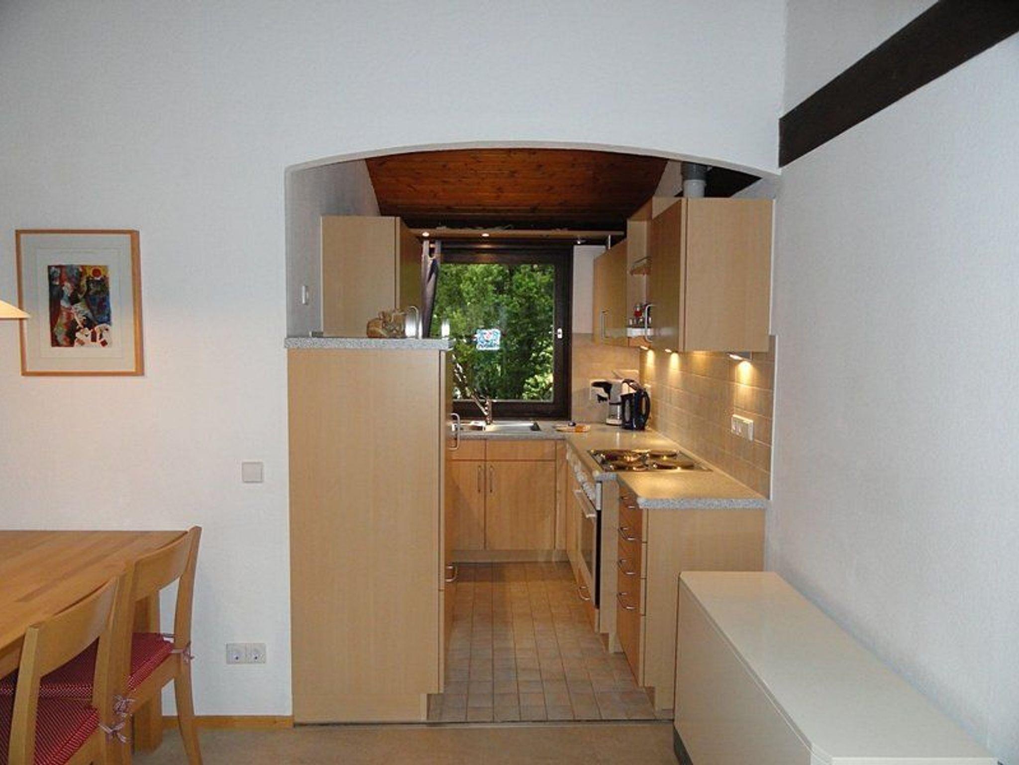 Ein Kinderbett und ein Hochstuhl für die kleinen Gäste vervollständigen die Einrichtung.