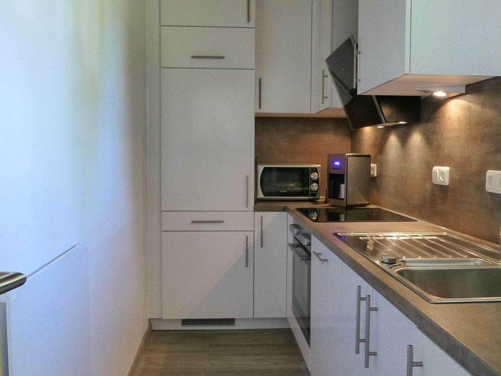 Die Küche wurde im Frühjahr 2018 komplett erneuert. Hier finden Sie eine gute Auswahl an Geschirr und Töpfen. Die Ausstattung ist komplett mit einem Geschirrspüler, Cerankochfeld, Backofen, Mikrowelle, Kühlschrank mit Gefrierfach, Kaffeemaschine und Mixer sowie für die ganz kleinen Gäste einen Flaschenwärmer. Die Waschmaschine befindet sich in der Küche. Ein Bügeleisen und ein Bügelbrett gehören ebenfalls zur Ausstattung.