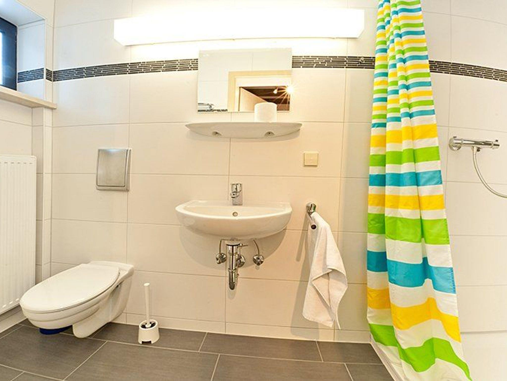 • Bäder: Im Untergeschoss gibt es ein Badezimmer mit Badewanne und WC, im Erdgeschoss zwei moderne Duschbäder mit WC (renoviert 2017). Das Elternbadezimmer verfügt über eine Waschmaschine.