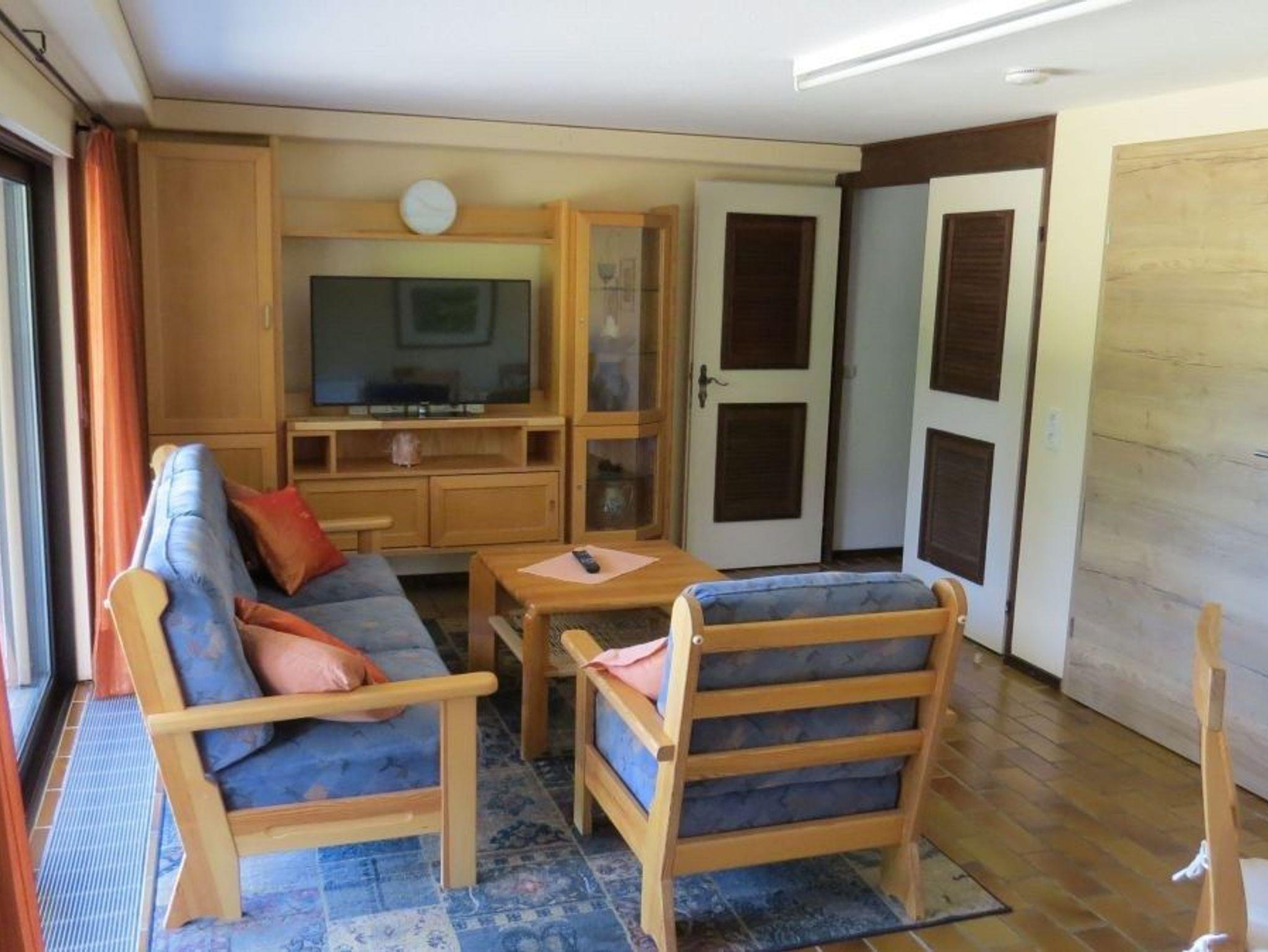 • Zusätzliches Wohnzimmer mit TV und Zugang zur überdachten Terrasse.