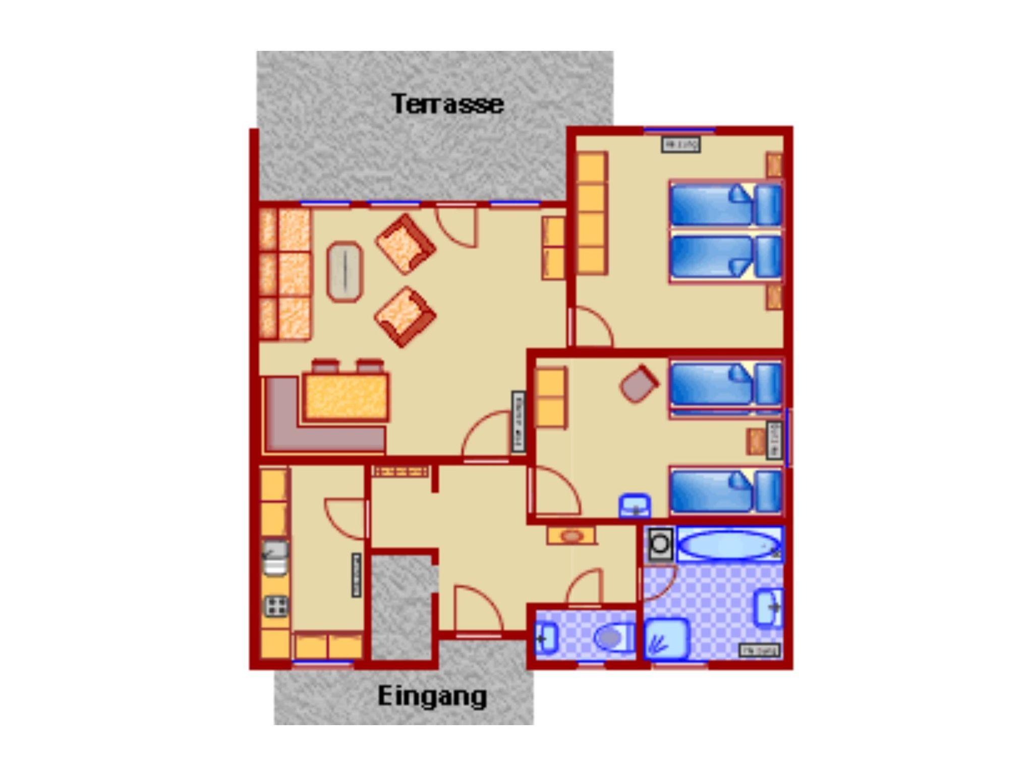Mit zwei seperaten Schlafzimmern, Küche, Bad, Gäste-WC und Wohnzimmer ist das Haus ideal für 4 Personen.