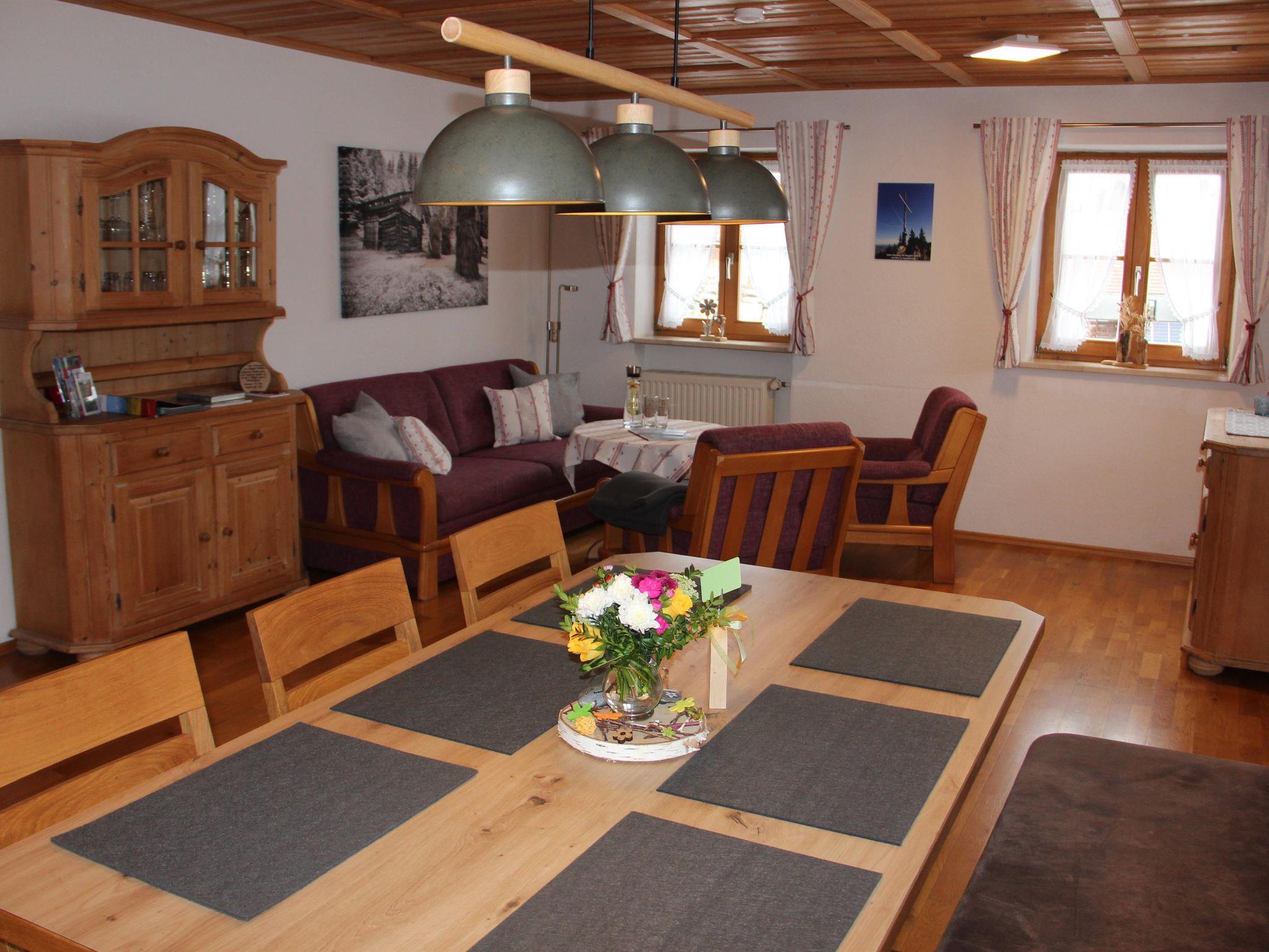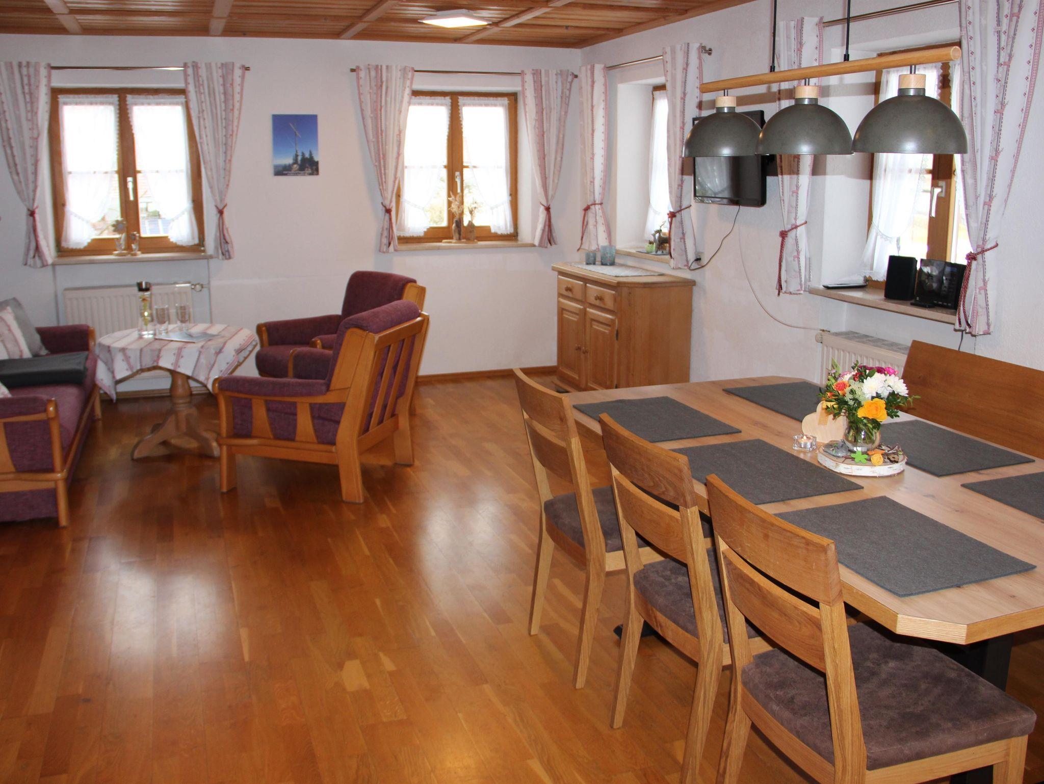 Unser Bauernhof liegt in ruhiger Lage ca. 1 km vom Nesselwanger Ortskern entfernt. Wir bieten 3 gemütlich eingerichtete Ferienwohnungen, ideal für Familienurlaub. Genießen Sie Ihre Urlaubstage in ruhiger Umgebung mit Blick auf die Allgäuer Bergwelt. Wanderwege und Loipen in unmittelbarer Nähe. Das Leben auf dem Bauernhof einmal hautnah miterleben. Zu sehen wie heute auf einem modernen landwirtschaftlichen Betrieb gearbeitet und gelebt wird. Mit etwas Glück erleben, wie ein Kalb zur Welt kommt, die Rinder auf der Weide besuchen, zuzusehen wie der Roboter unsere Kühe melkt und einmal auf einem richtig großen Traktor zu sitzen das ist das tollste für alle Kinder und auch für die Großen. Kinder toben gerne über den hauseigenen Spielplatz und wenn sie einmal genug von Spielhaus, Schaukel, Sandkasten und Rutsche haben, können sie Trampolin springen oder den Hof mit dem Kettcar unsicher machen. Sollte das Wetter einmal nicht so schön sein, stehen im Haus ein Spiel- und Sportzimmer zur Verfügung. Wir freuen uns auf Ihren Besuch!