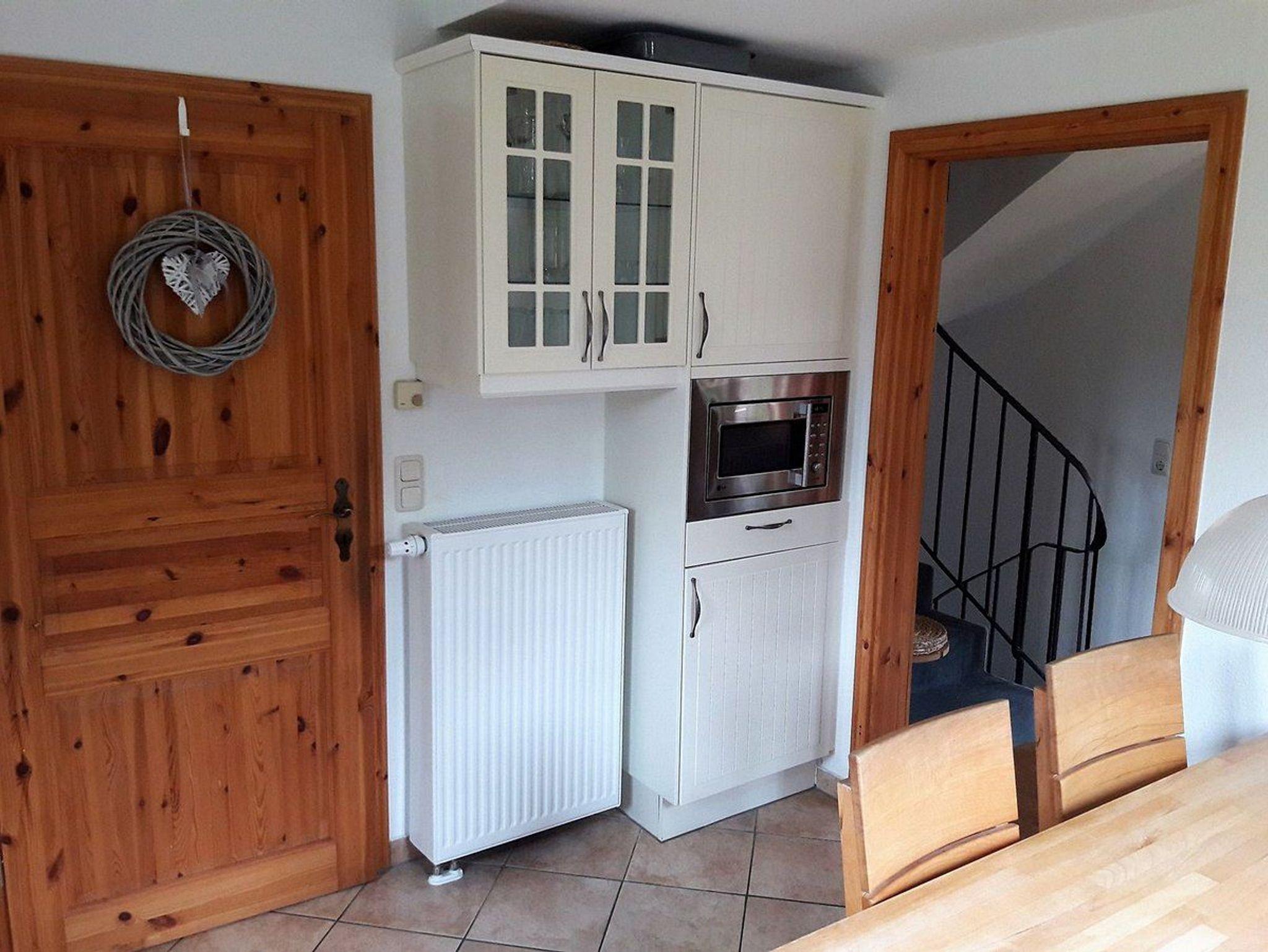 Die Doppelhaushälfte wurde 2008 umfassend renoviert. Das Erdgeschoss bietet eine modern ausgestattete Küche mit Essplatz sowie ein neu möbliertes Wohnzimmer mit Echtholzboden. Im Untergeschoss befinden sich ein Schlafzimmer mit Safe und Fernseher sowie ein modernisiertes Bad. Waschmaschine, Trockner und eine zusätzliche Kühl-Gefrierkombination stehen ebenfalls dort zur Verfügung.