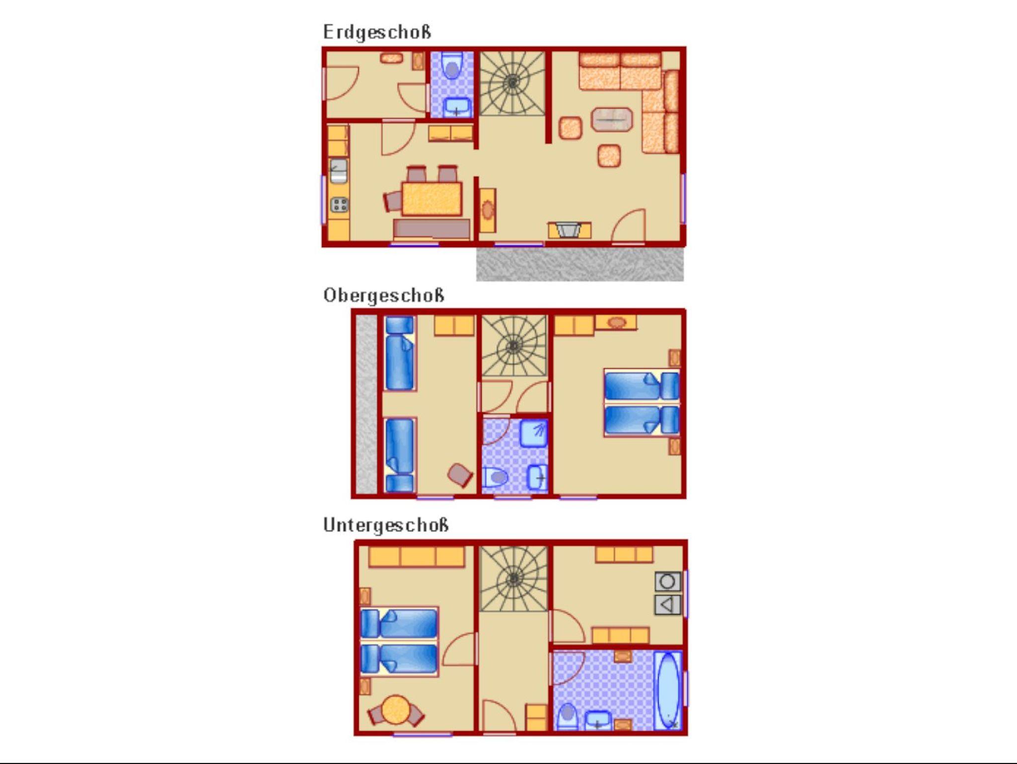 Im Obergeschoss wurden zwei Schlafzimmer und ein weiteres Bad mit Dusche und WC neu eingerichtet. Beide Bäder verfügen über elektrische Fußbodenheizung, Handtuchheizkörper und Fön. Für Kleinkinder sind Reisebett, Matratze, Bettzeug und Babyfon vorhanden.
