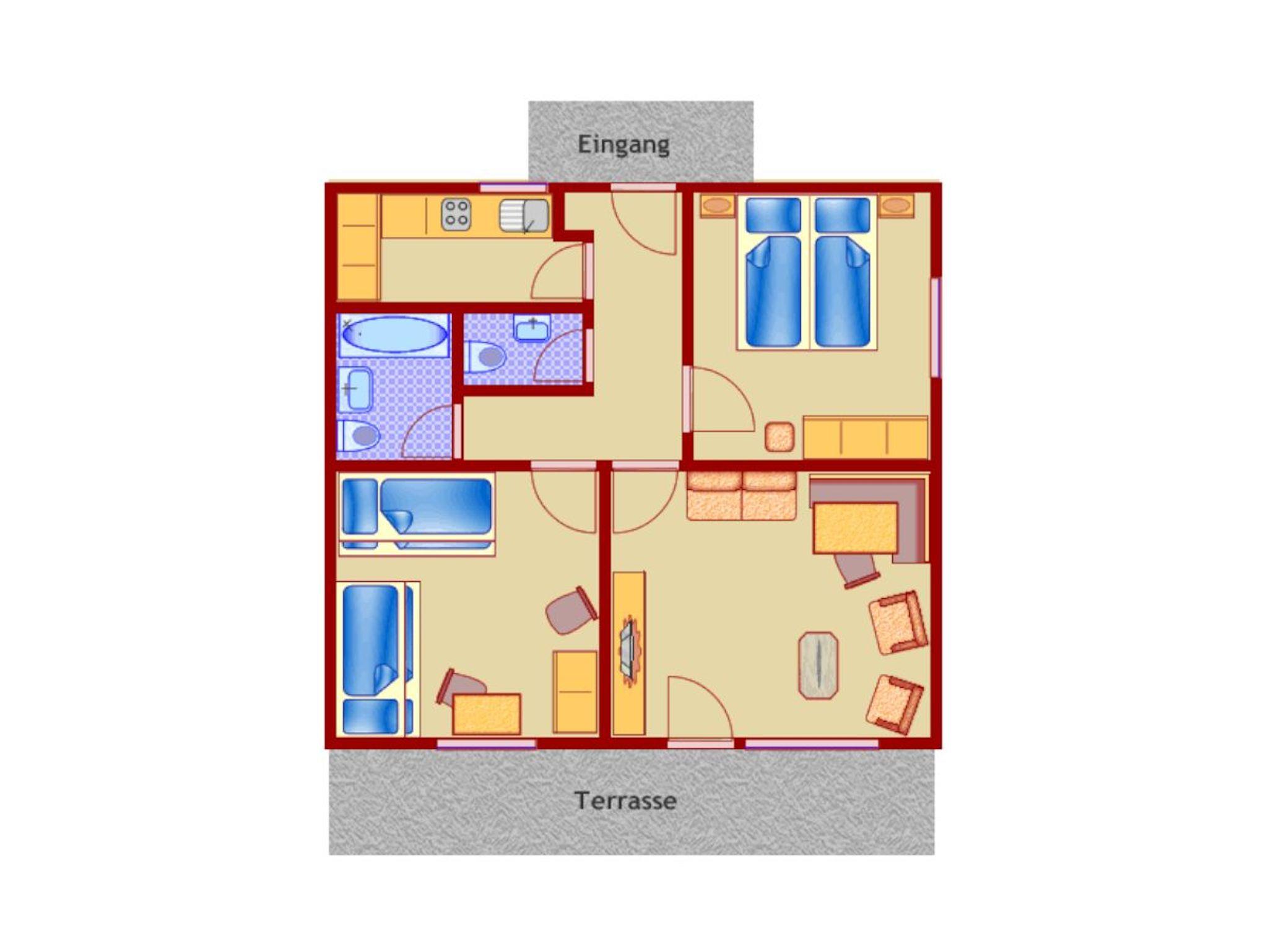 Das Wohnzimmer dieser Doppelhaushälfte hat ein grosses Panoramafenster, ist mit einer großzügigen Eckbank sowie einem bequemen Sofa und Sesseln ausgestattet. Kabelfernsehen und Radio sind selbstverständlich vorhanden.