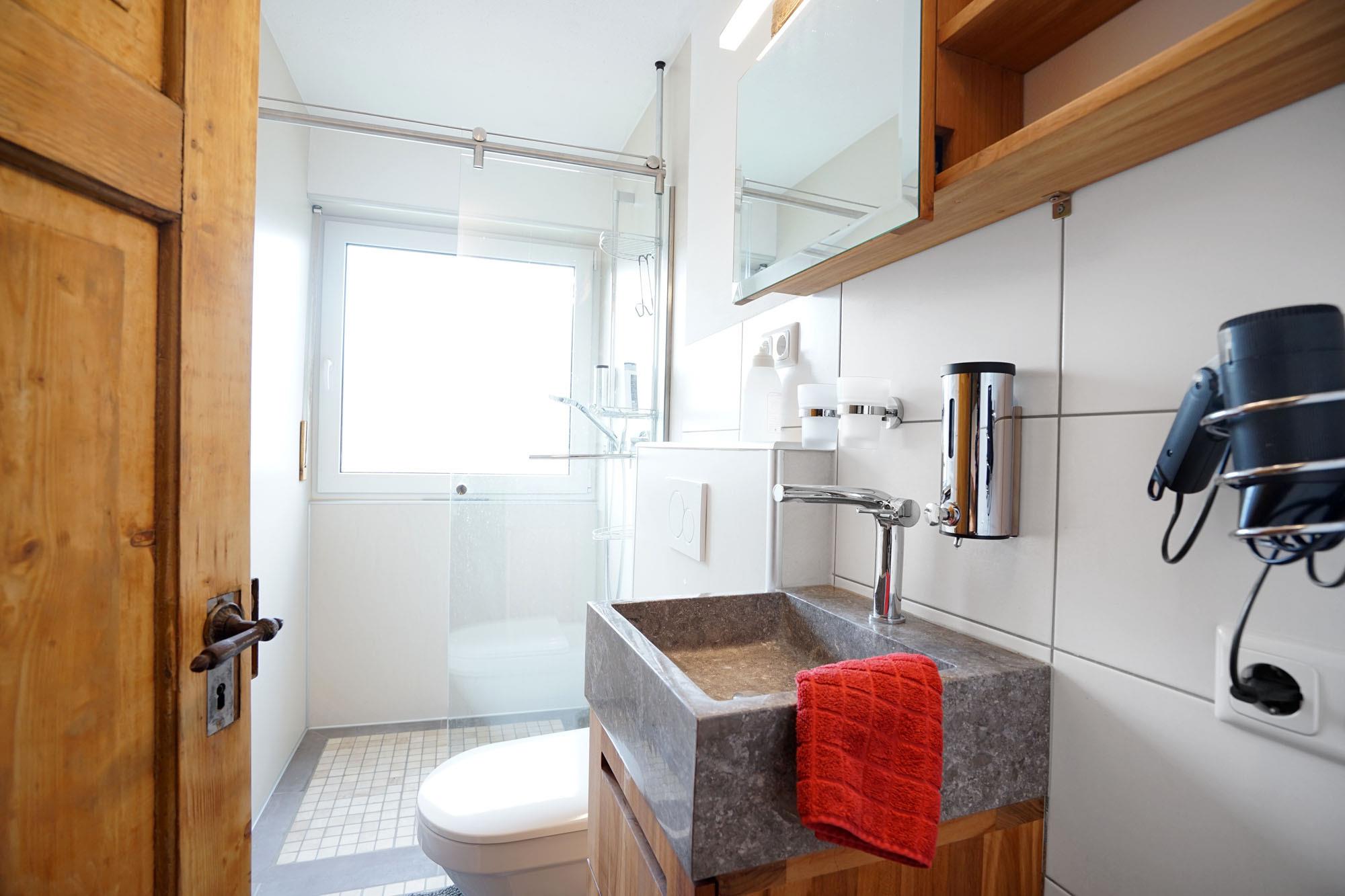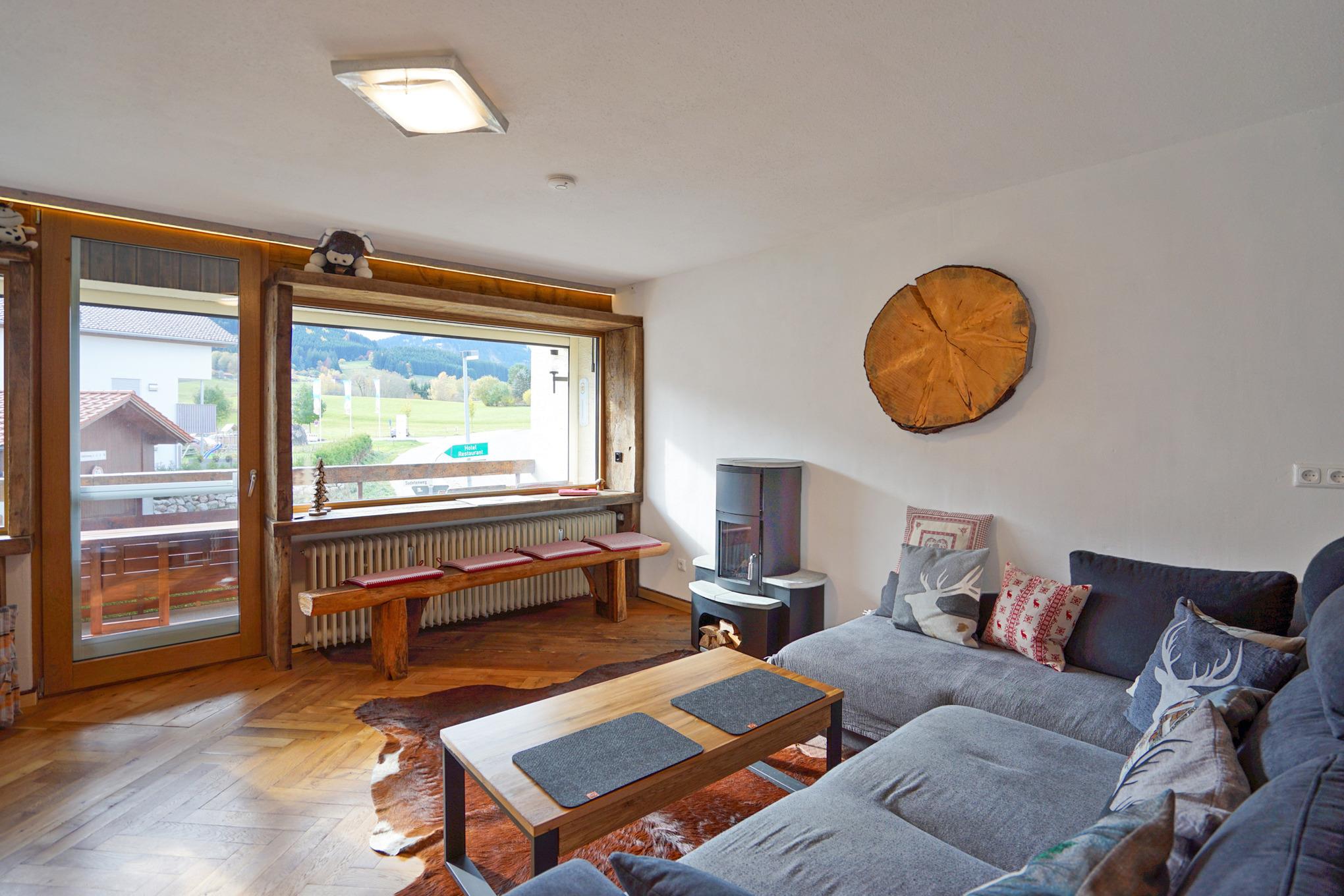 Die ca. 79 m² Ferienwohnung "Brotzeitstube" wurde im urigen Allgäuer Stil aufwendig renoviert. Hier erwartet Sie ein unvergessliches Hüttenambiente, kombiniert mit modernem als auch geschichtsträchtigem Zeitgeist. In beinah jedem Detail steckt seine eigene Geschichte. Dies wird auch für Sie ein unvergessliches Urlaubserlebnis. In der rustikalen und zugleich modernen "Brotzeitstube" fehlt es Ihnen an Nichts. KönigsCard inklusive. Sie ist ideal für 4-5 Personen und verfügt über 2 Schlafzimmer, mit je einem Doppelbett und TV, 2 Badezimmer, eines mit Wickelauflage und Waschtrockner, eine komplett ausgestattete Küche mit Quooker für Sprudelwasser und Heißwasser, einen großen langen Esstisch, einem geschmackvoll eingerichteten Wohnzimmer mit TV, eine sonnige Loggia zum Relaxen. WLAN ist selbstverständlich. Für Fahrräder steht ein Fahrradkeller mit Skischuhheizung im Winter zur Verfügung. Freie PKW-Stellplätze direkt gegenüber, weitere in 30 m Entfernung.