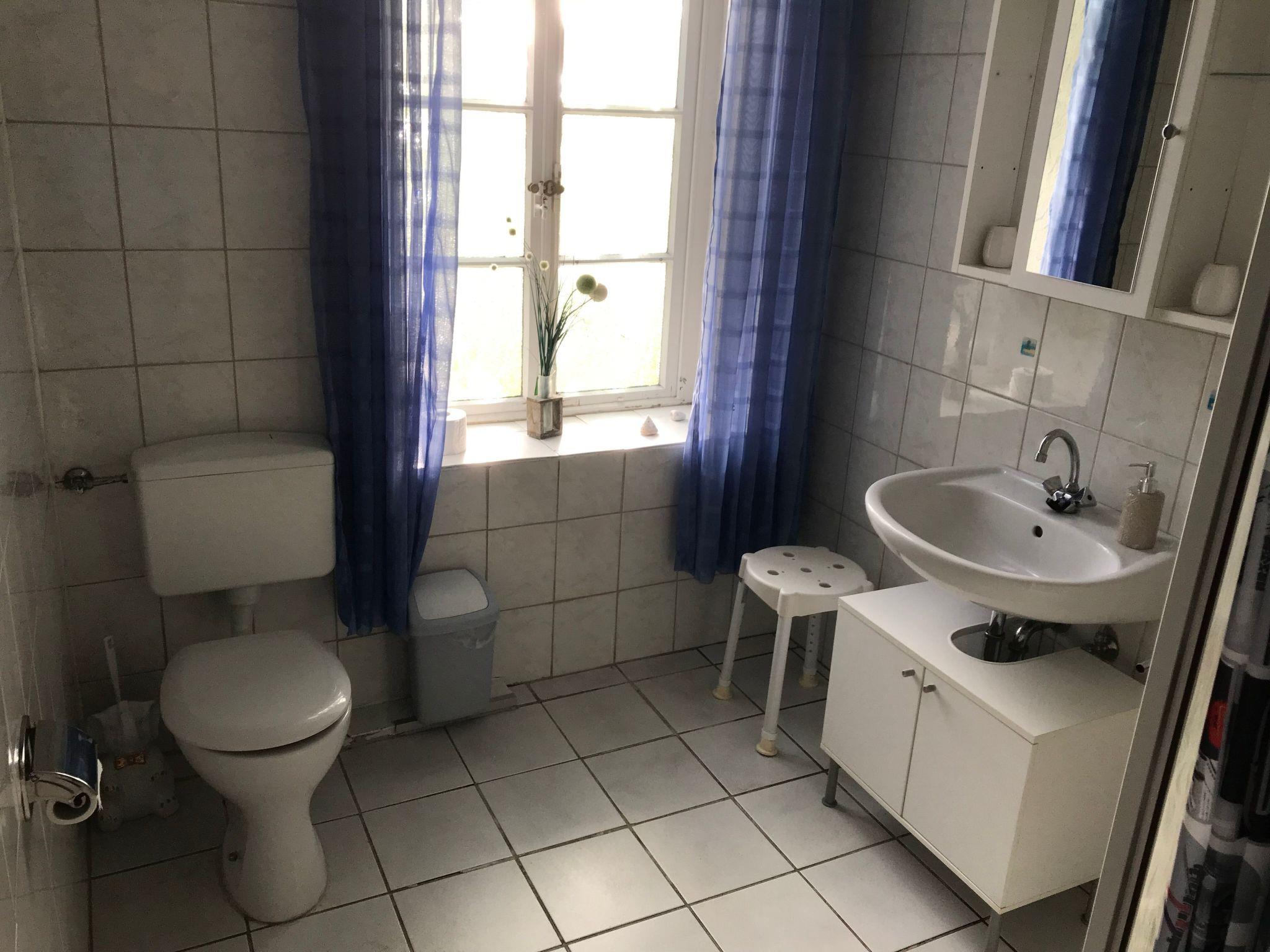 Welcome to your holiday accommodation on the ground floor. The 60m² apartment has two bedrooms, a living room, a kitchen and a bathroom with a shower. You can sit on the sofa in the living room, watch satellite TV or listen to the radio, or enjoy your meals at the dining table with four chairs. The kitchen is equipped with a kettle, coffee machine, hand mixer, stove, oven, toaster, fridge, crockery, cutlery, pots and pans. The first bedroom is furnished with a double bed with two individual mattresses, while the second has a bunk bed. You can store your clothing in the wardrobe. The bathroom is fitted with a shower, WC and washbasin. Children up to six years old stay free of charge. There is central heating with radiators in all rooms.