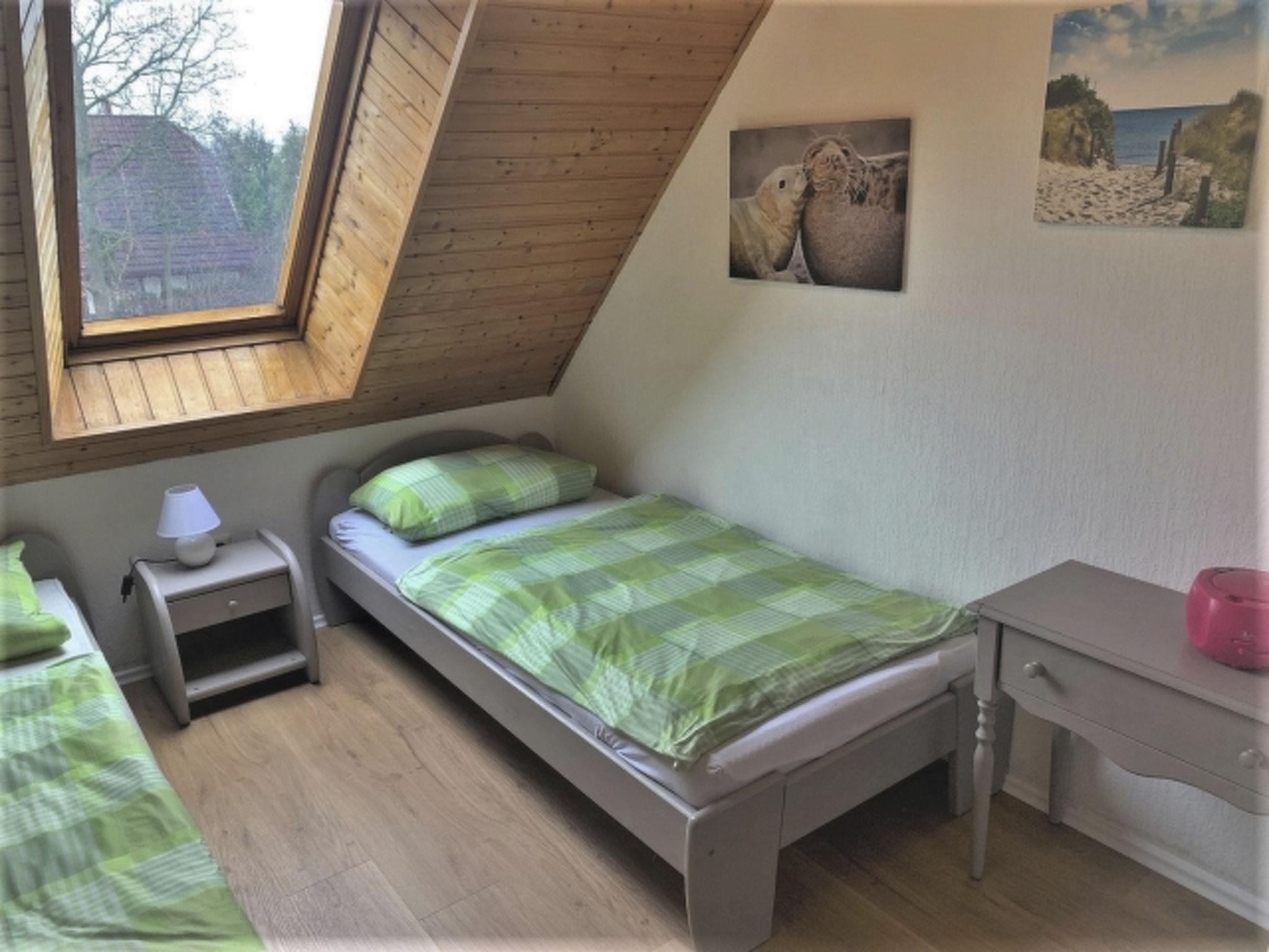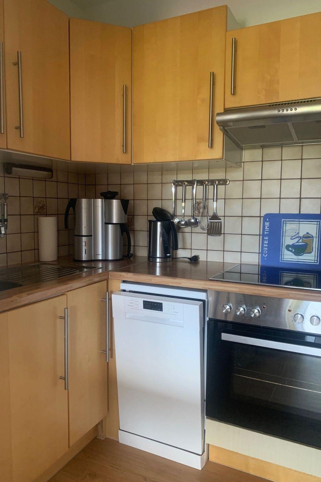 The house has a living space of 72 m² and can accommodate five people. On the ground floor it has a living/dining room with open-plan kitchen, satellite TV with 43-inch Smart TV, DVD player and stereo system, a spacious bright bathroom and a storage room. The kitchen is fully equipped with cooker, ceramic hob, dishwasher, fridge-freezer and extractor bonnet. You will also find a coffee machine, toaster, kettle and of course crockery, pots and pans. Upstairs there are two cosy bedrooms with a double bed (180 x 200 cm) and two single beds (90 x 200 cm). An open wooden staircase leads from one of the bedrooms to the small attic studio with two further beds (90 x 200 cm). The second television is also located there. The house has gas central heating. With the exception of the storeroom, all rooms and corridors are fitted with radiators.