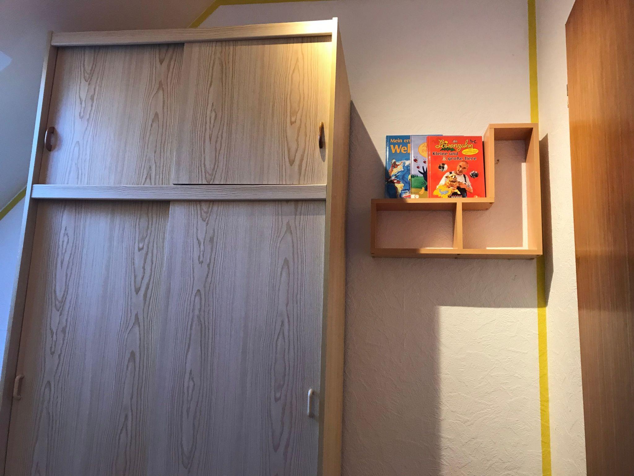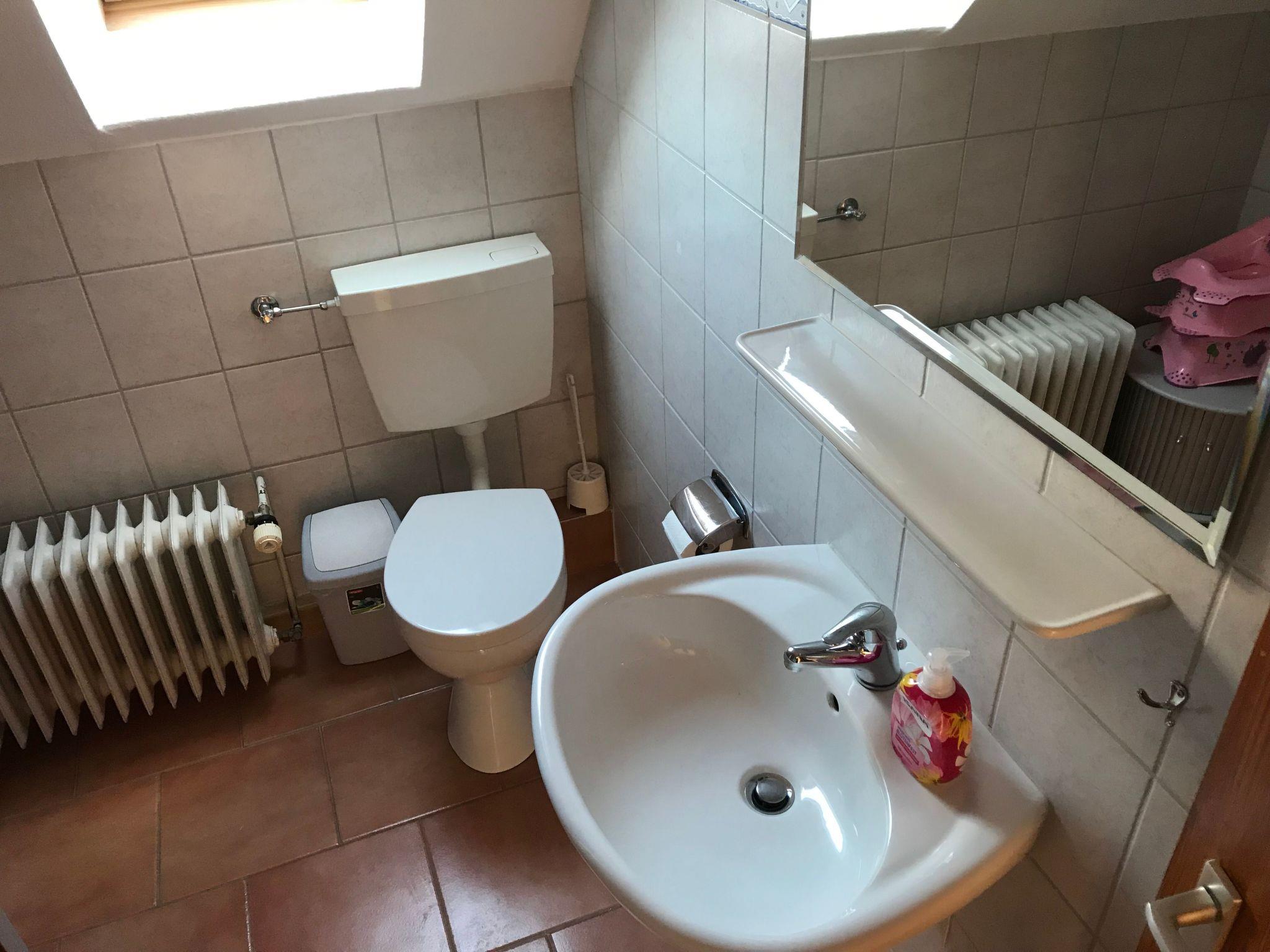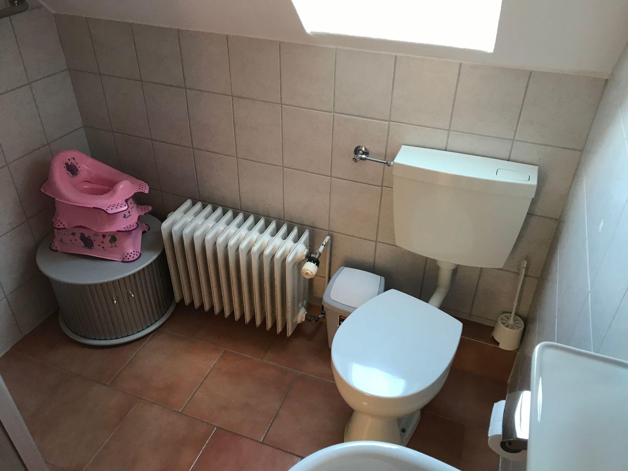 Welcome to your holiday accommodation on the first floor. The 70m² apartment has three bedrooms, a kitchen, a living room and a bathroom with a shower. You can sit on the sofa, watch satellite TV (incl. radio) or enjoy your meals at the dining table with four chairs in the kitchen, equipped with a kettle, coffee machine, hand mixer, stove, oven, toaster, fridge, crockery, cutlery, pots and pans. The first bedroom is furnished with a double bed with two individual mattresses, the second bedroom has two single beds, while the third has a single bed. You can store your clothing in the wardrobe. The bathroom is fitted with a shower, WC and washbasin. Children up to six years old stay free of charge. There is central heating with radiators in all the rooms.
