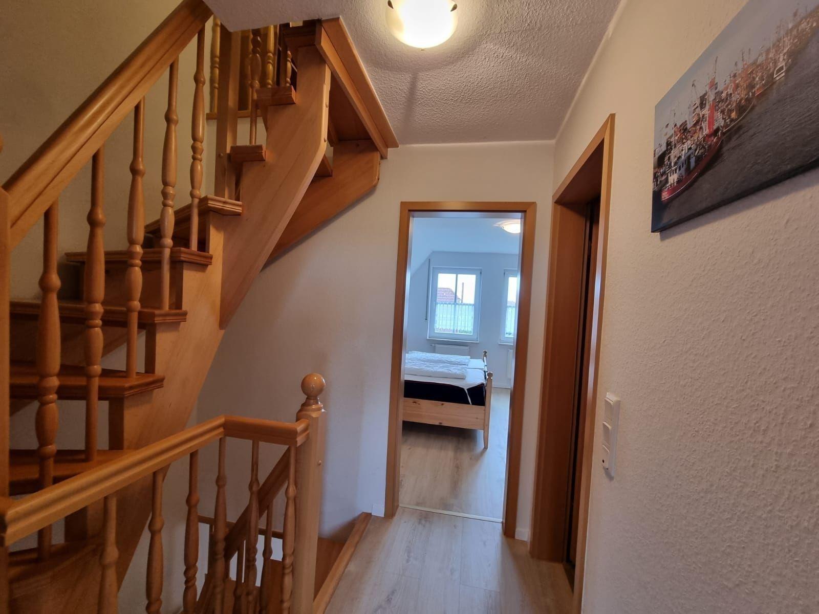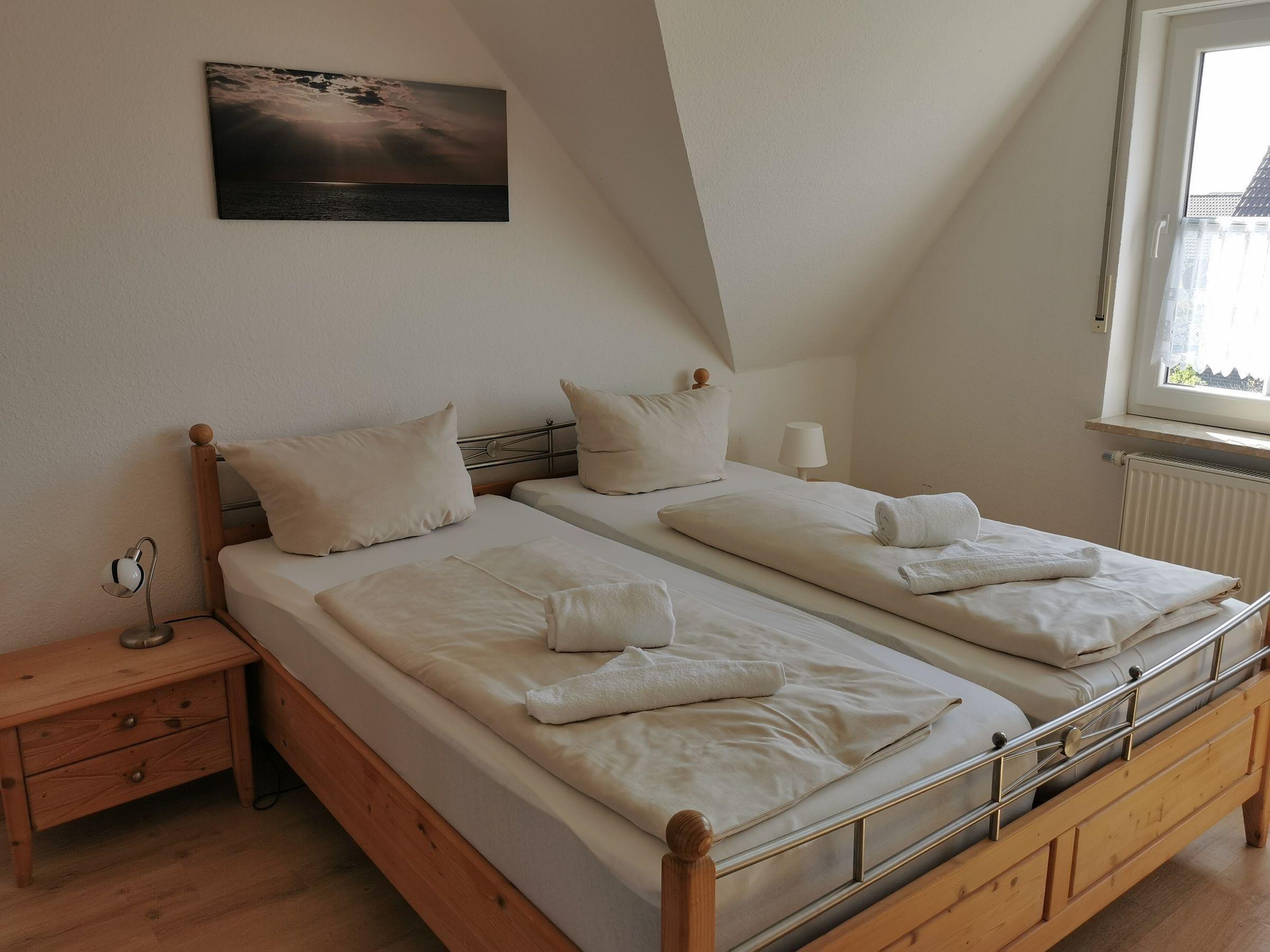 Die Ferienwohnung bietet eine komfortable und moderne Ausstattung, ideal für entspannte Urlaubstage. Sie verfügt über drei Schlafzimmer, darunter ein Doppelbett und vier Einzelbetten, die perfekten Schlafkomfort garantieren. Das Badezimmer ist mit einer Dusche ausgestattet, zusätzlich gibt es ein Gäste-WC.