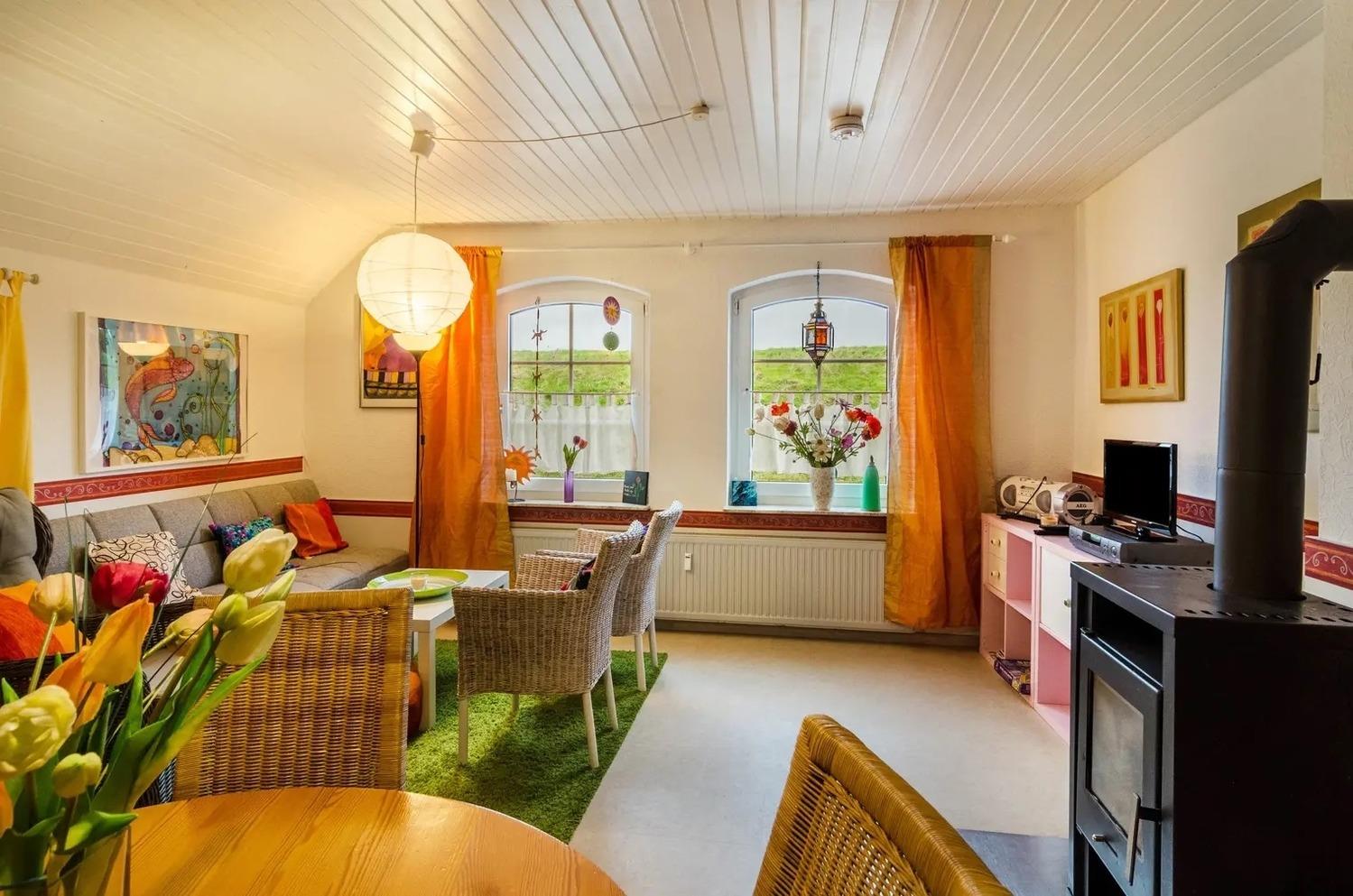 In Nessmersiel gelegen, bietet die Ferienwohnung Fewo Langeoog alles was Sie für einen gemütlichen Urlaub brauchen. Die 2-stöckige Unterkunft besteht aus einem Wohnzimmer, einer Küche, 2 Schlafzimmern und 1 Badezimmer und bietet somit Platz für 4 Personen. Zur Ausstattung gehören außerdem WLAN und TV. Ein Babybett ist ebenfalls vorhanden. Dieses Ferienhaus verfügt über eine private Terrasse für entspannte Abende. Ein Parkplatz ist auf dem Grundstück vorhanden. Ein Haustier ist gegen Gebühr erlaubt erlaubt. Das Rauchen und das Feiern von Veranstaltungen sind nicht erlaubt.