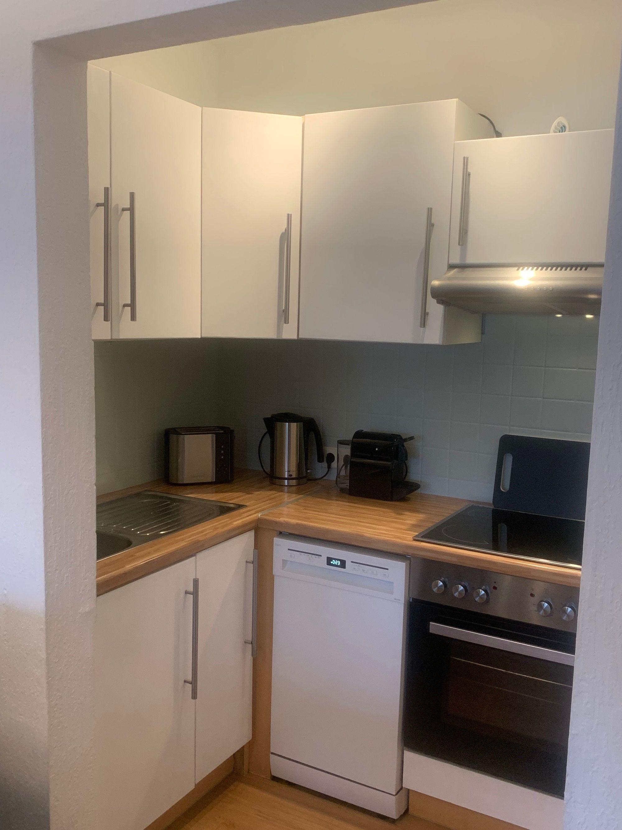 Das Haus hat im Erdgeschoss ein Wohn-Esszimmer mit offener Küche, 43 Zoll Smart TV, DVD Player, ein geräumiges helles Bad und einen Abstellraum. Die Küche ist komplett eingerichtet mit Herd, Ceranfeld, Geschirrspüler, Kühl-und Gefrierkombination, Dunstabzugshaube. zudem finden Sie dort Kaffeemaschine, Toaster, Wasserkocher, und natürlich Geschirr, Töpfe und Pfannen.