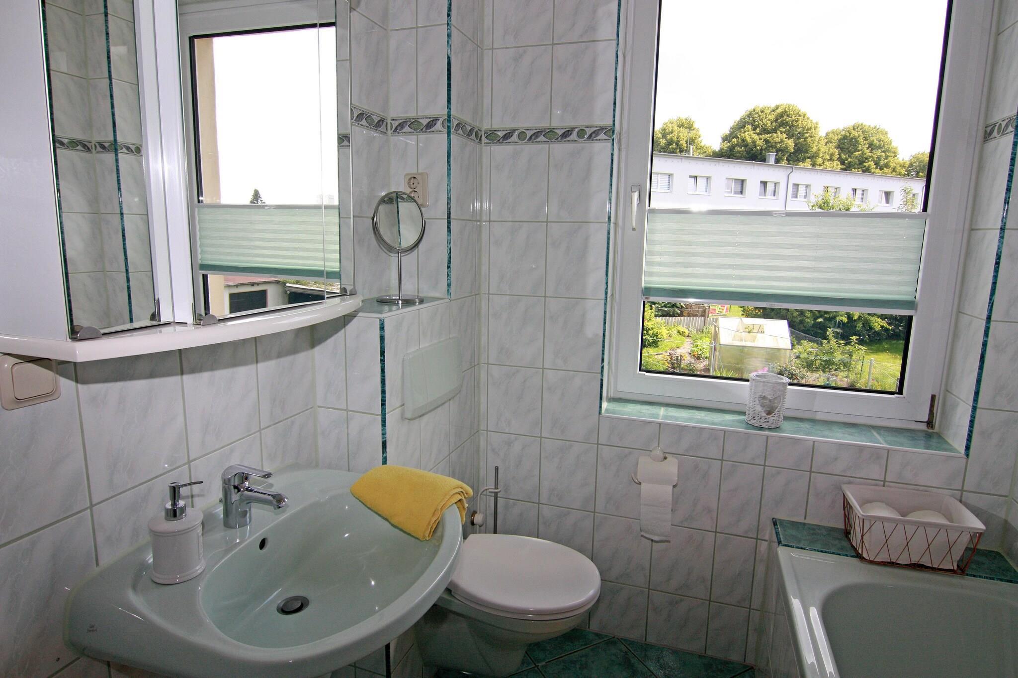 Denne stilfulde og omhyggeligt indrettede 2-værelses lejlighed i Neubukow er perfekt til par eller små familier. Det ligger på første sal og har en lys stue med et hyggeligt opholdsområde, et fladskærms-tv, et udvalg af bøger og et lille tekøkken. Soveværelset kommer med dobbeltseng og god opbevaringsplads, mens badeværelset er udstyret med både badekar og bruser. Nyd dine morgener eller aftener på den smukke terrasse i haven bag huset, møbleret med havemøbler, parasol og grill. Det er det perfekte sted at slappe af efter en stranddag eller at nippe til kaffe i solen. Inkluderet: Wi-Fi, forsyningsselskaber, vaskeripakke og gratis parkering på stedet. Nemme dagsture til Wismar, Rostock og Kühlungsborn tilføjer charmen ved dette velbeliggende feriested. Den naturlige strand Salzhaff i Pepelow ligger kun 4 km derfra, mens sandkysten af Rerik ligger 7 km derfra. Butikker og restauranter er inden for rækkevidde, og nærliggende vandrestier som Hellbachtal byder naturelskere på en fornøjelse.