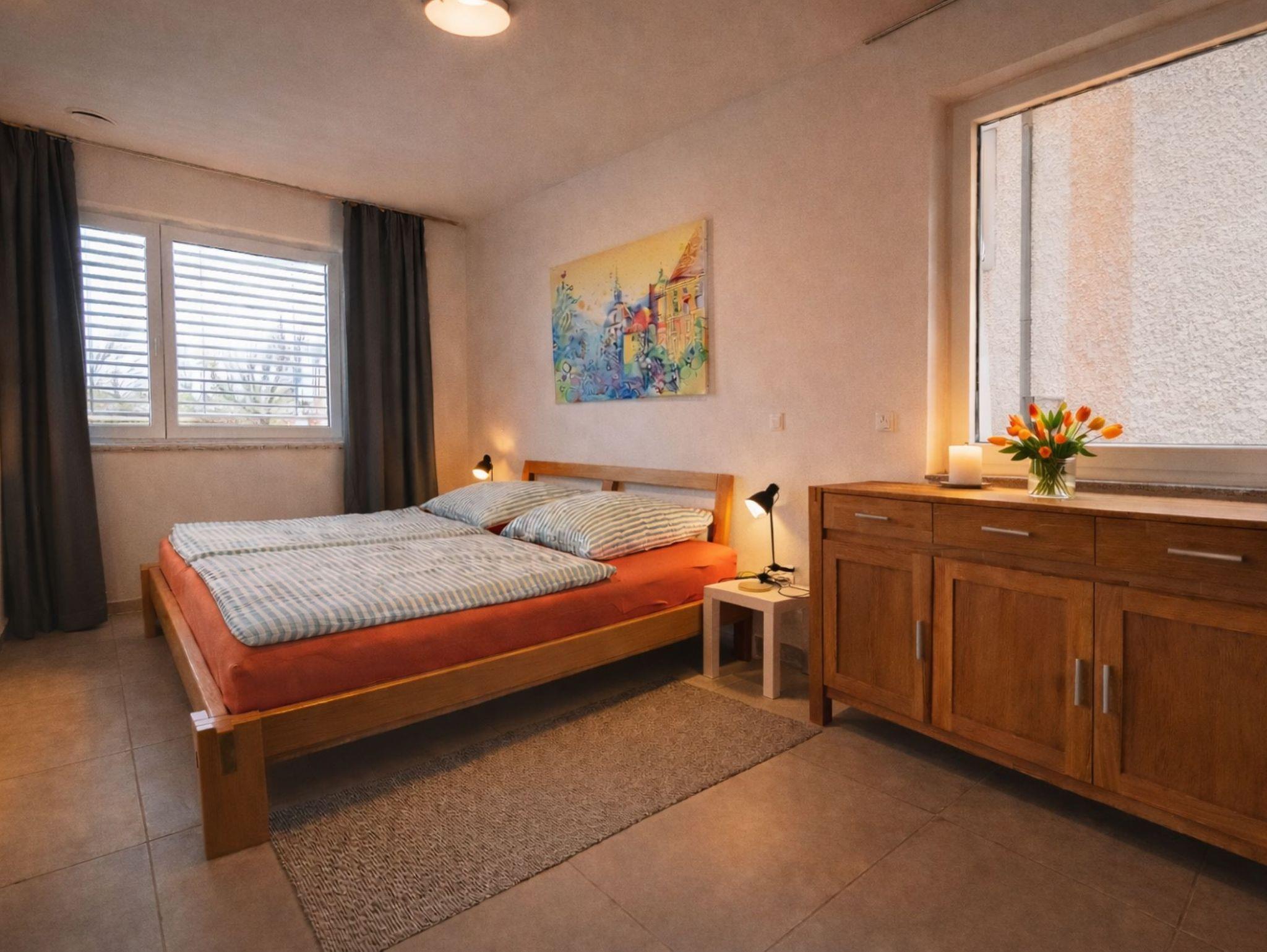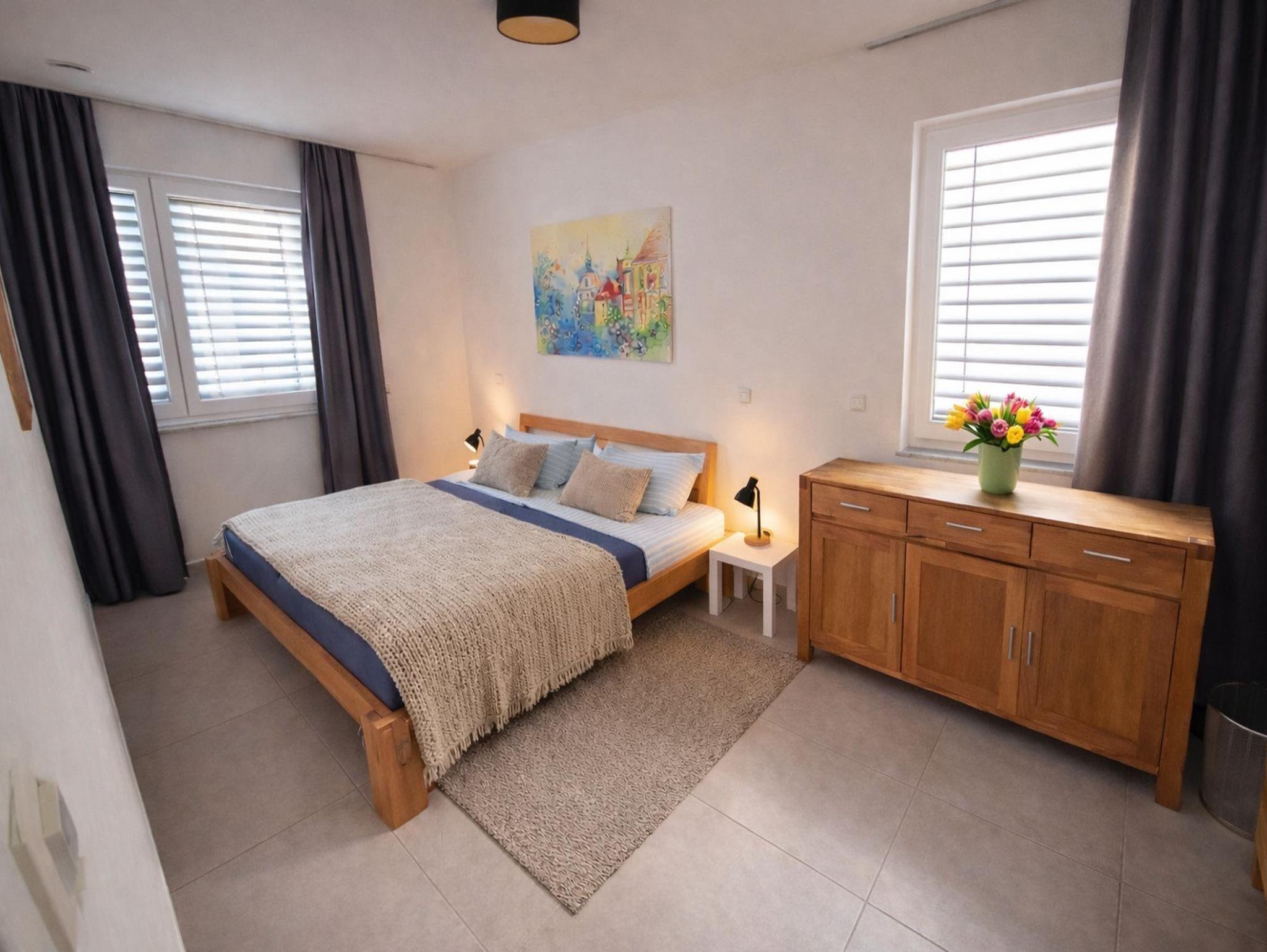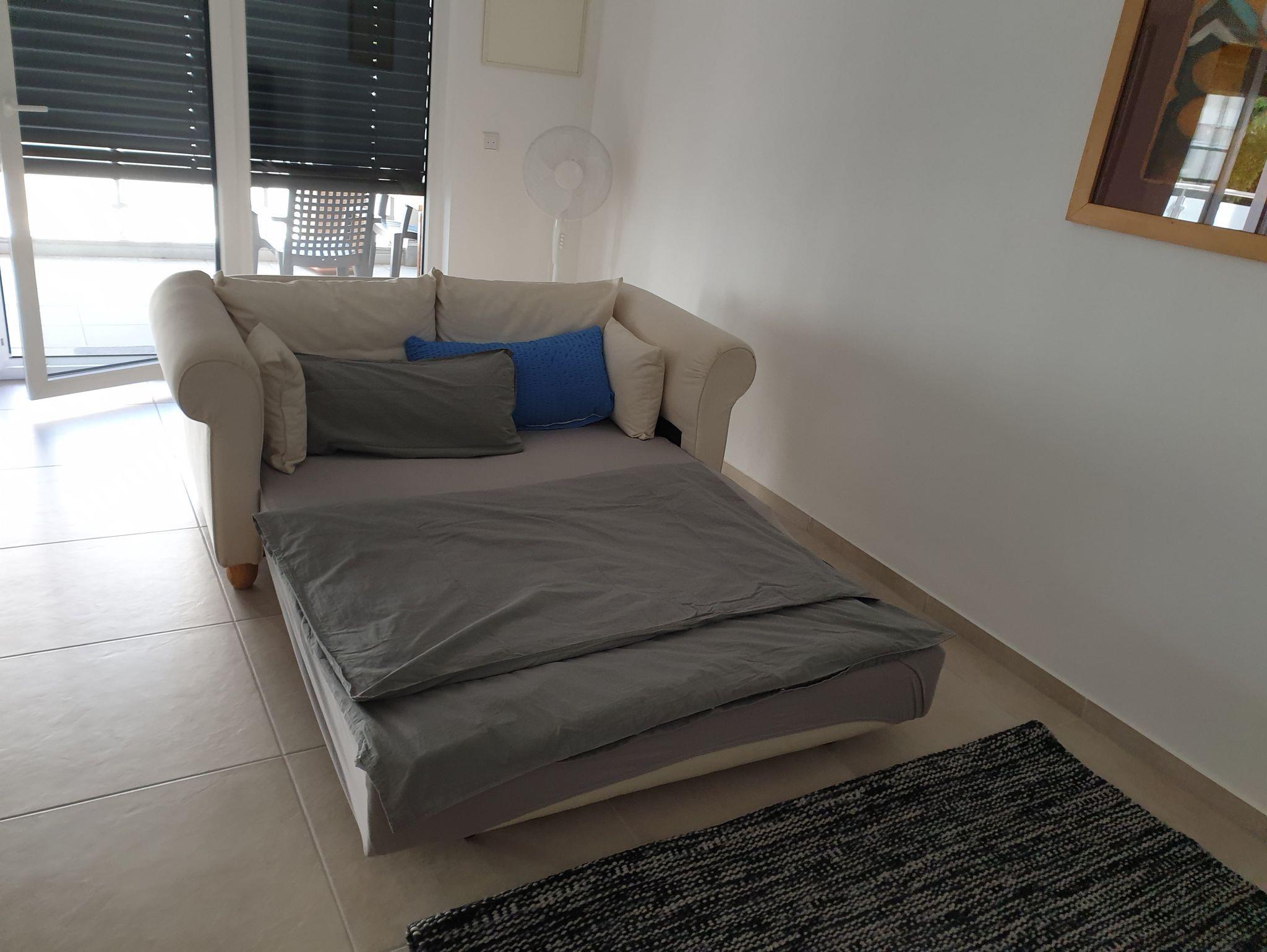 Tolle Neubauwohnung (76 qm) im 1. Stock, Lift vorhanden, schöner großer Balkon, 55 Zoll Fernseher, eigenes Schlafzimmer mit großem Bett (zwei 1 x 2 m Matratzen von Emma), sehr geräumige Wohnküche mit ausklappbarem Schlafsofa mit Topper (140 x 200cm, natürlich nicht ganz so bequem wie das Bett) Fußbodenheizung, Wlan, elektrische Jalousinen, alle Böden gefliest...
