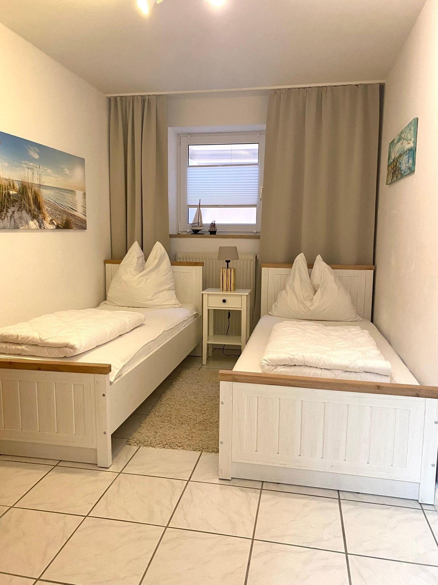 Die Schlafmöglichkeiten sind in zwei Räumen im Souterrain untergebracht. Hier verspricht Ihnen ein Doppelbett und zwei Einzelbetten erholsame Nächte.