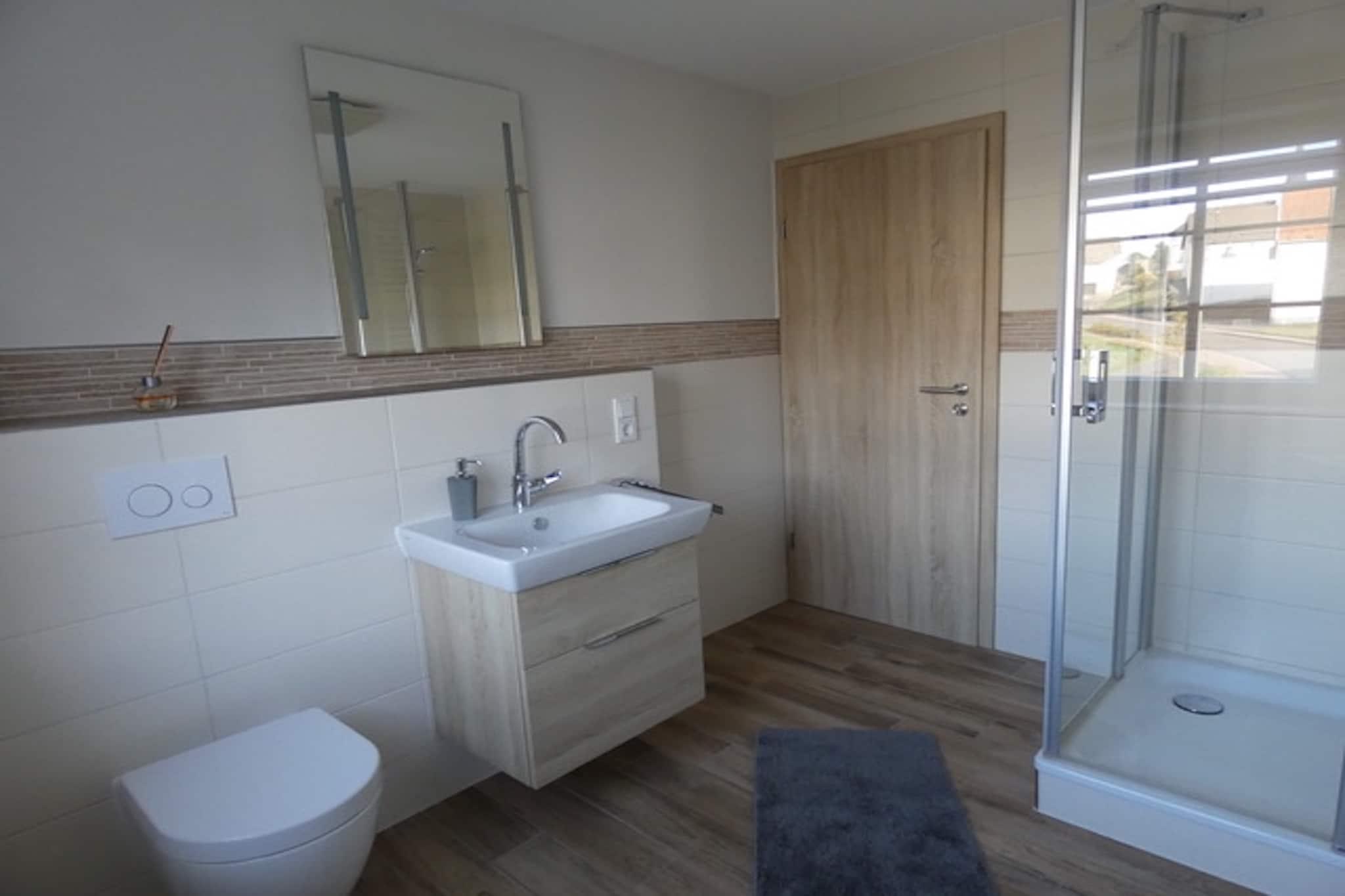 Dette hyggelige feriehus i Neuendorf tilbyder et roligt tilflugtssted for familier og grupper på op til ti, beliggende i de bølgende bakker og skove i Eifel-regionen. Med en rummelig spiseplads og et fuldt udstyret køkken er det perfekt til at lave mad sammen og nyde afslappede aftener. Hjemmet blander moderne komfort med rustik charme og byder på naturskøn udsigt og adgang til en møbleret have og terrasse. Naturelskere vil finde en legeplads med udendørs aktiviteter, fra vandre- og cykelture til at udforske Lacher-søen, Nürburgring og stierne i Eifel National Park. Kulturelle højdepunkter i nærheden omfatter Eltz Slot, Porta Nigra, Constantine Basilica og Mosenberg Volcano Park. Dyrelivsoplevelser venter på Adler- und Wolfspark Kasselburg, mens Luxembourg og Trier er ideelle til dagsture. Takket være dets fredelige omgivelser og bekvemme beliggenhed er dette tilflugtssted ideel til at opleve Eifel-regionens vulkanske landskaber, historiske steder og udendørs eventyr - alt sammen fra en komfortabel og velindrettet base.