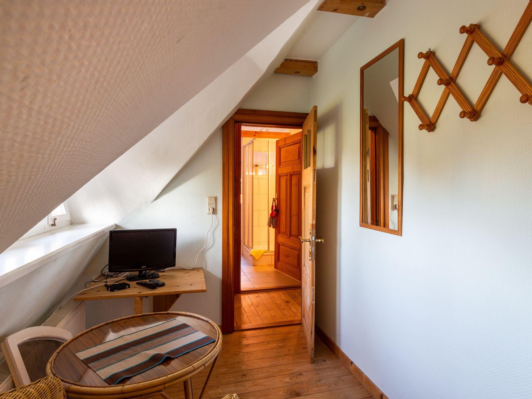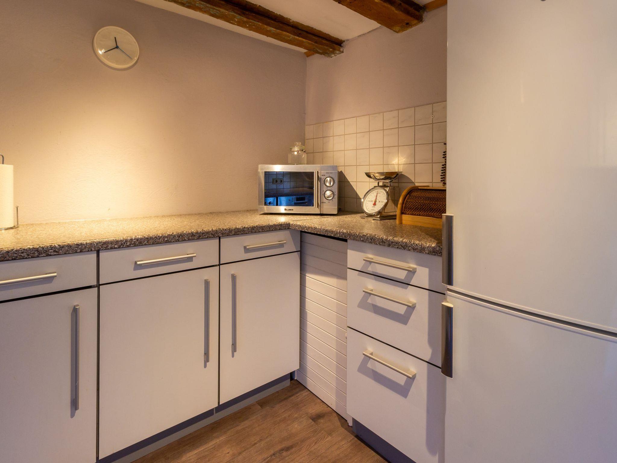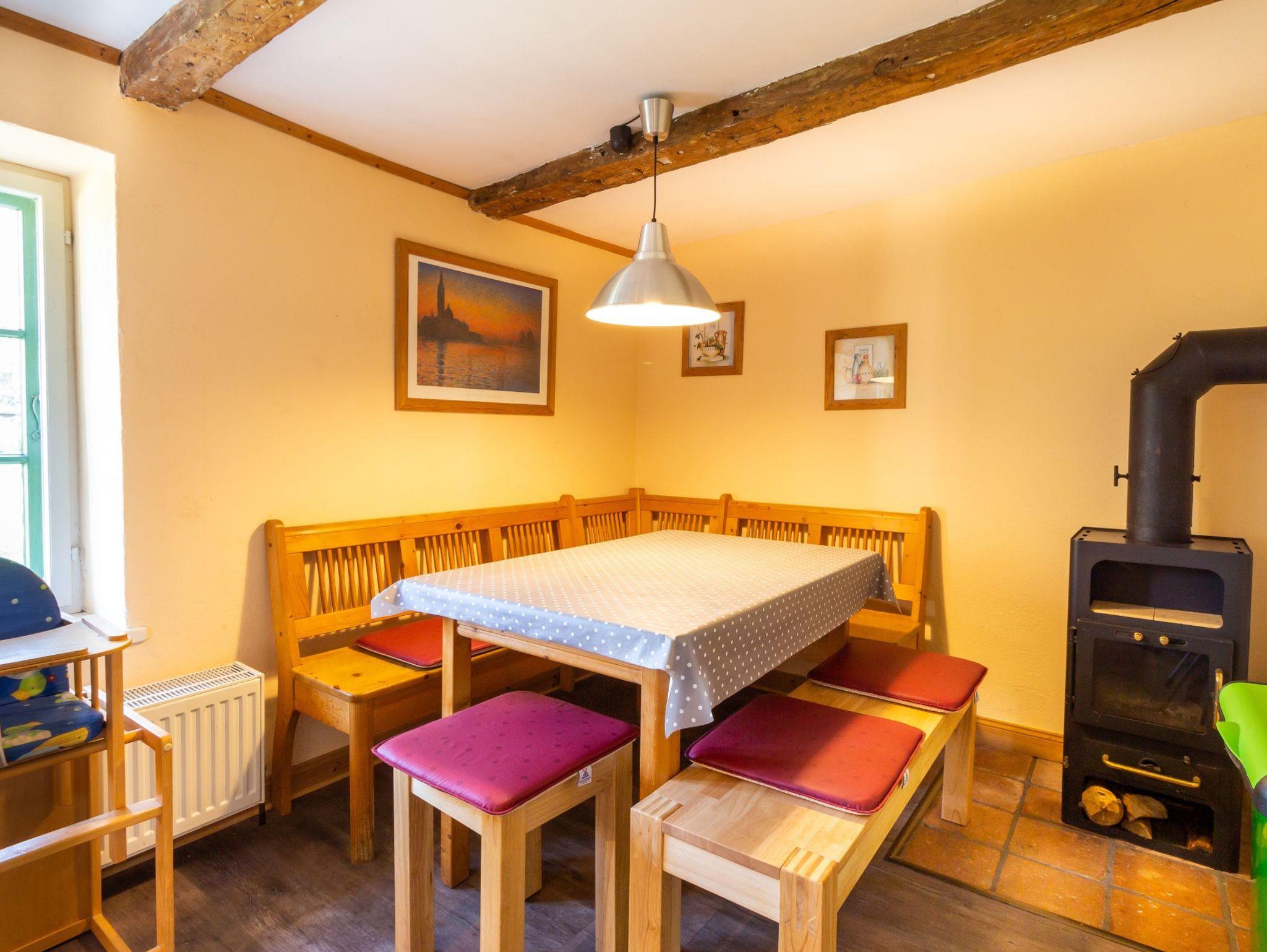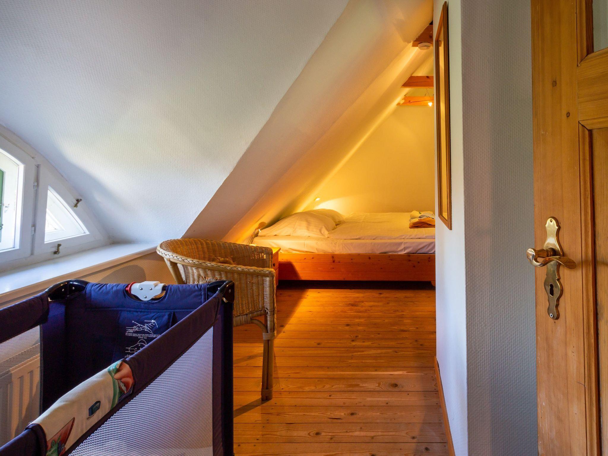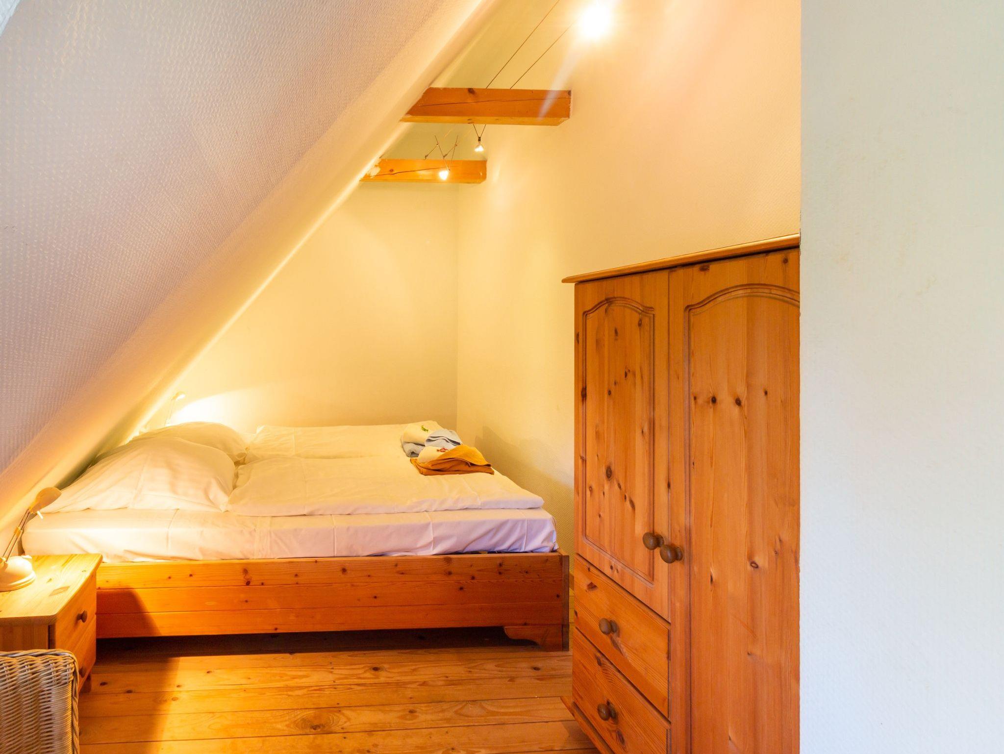 Im Haus 2 befindet sich im Erdgeschoss eine Küche mit Zugang zur Terrasse, ein Wohnzimmer mit schönem Kachelofen und das große Bad mit Badewanne/Dusche und WC. Im Obergeschoss befinden sich drei separate Schlafzimmer (davon 2 mit Doppelbetten, eins mit kl. Doppelbett 1,40m Breite) und Du/WC.