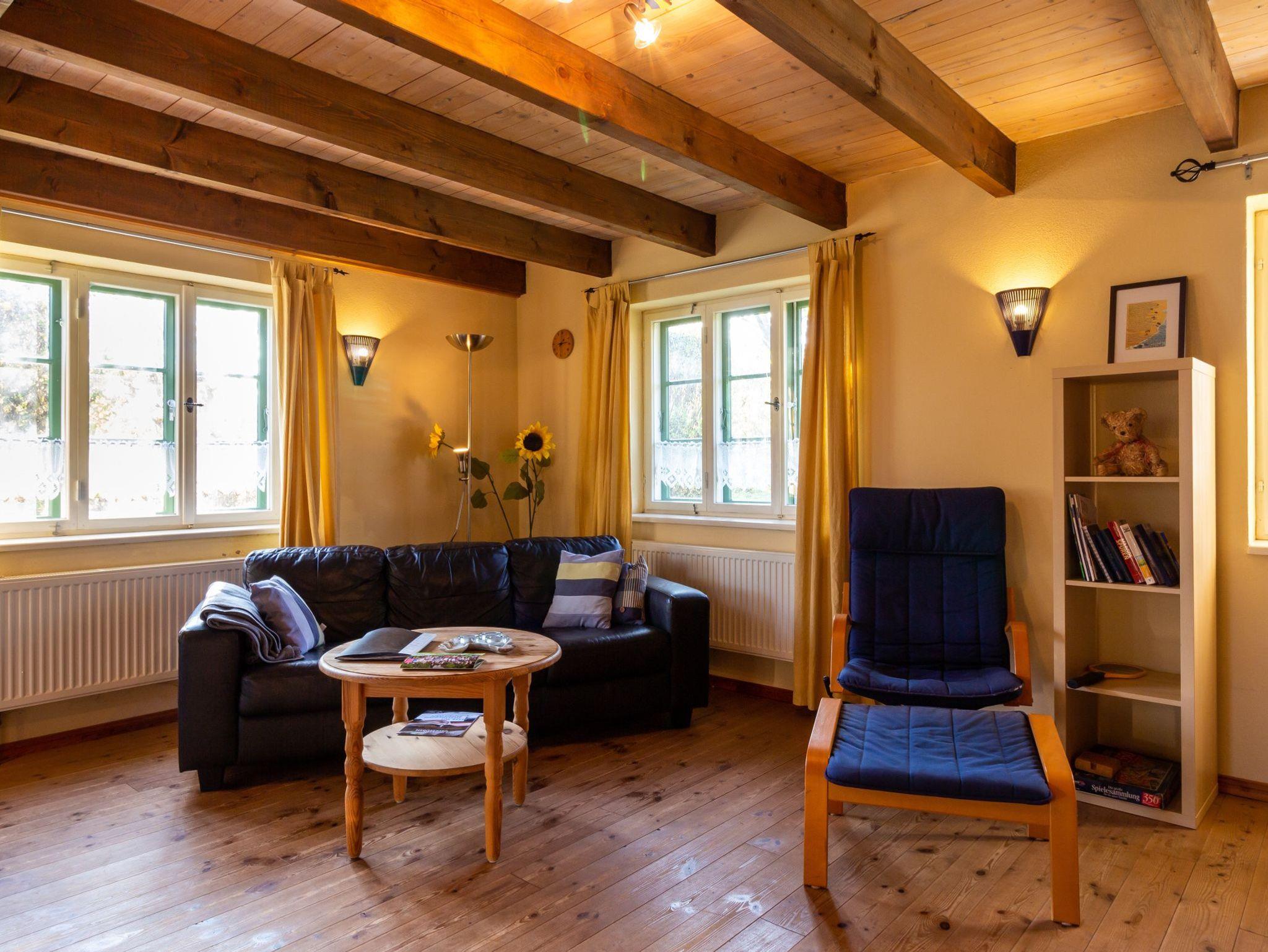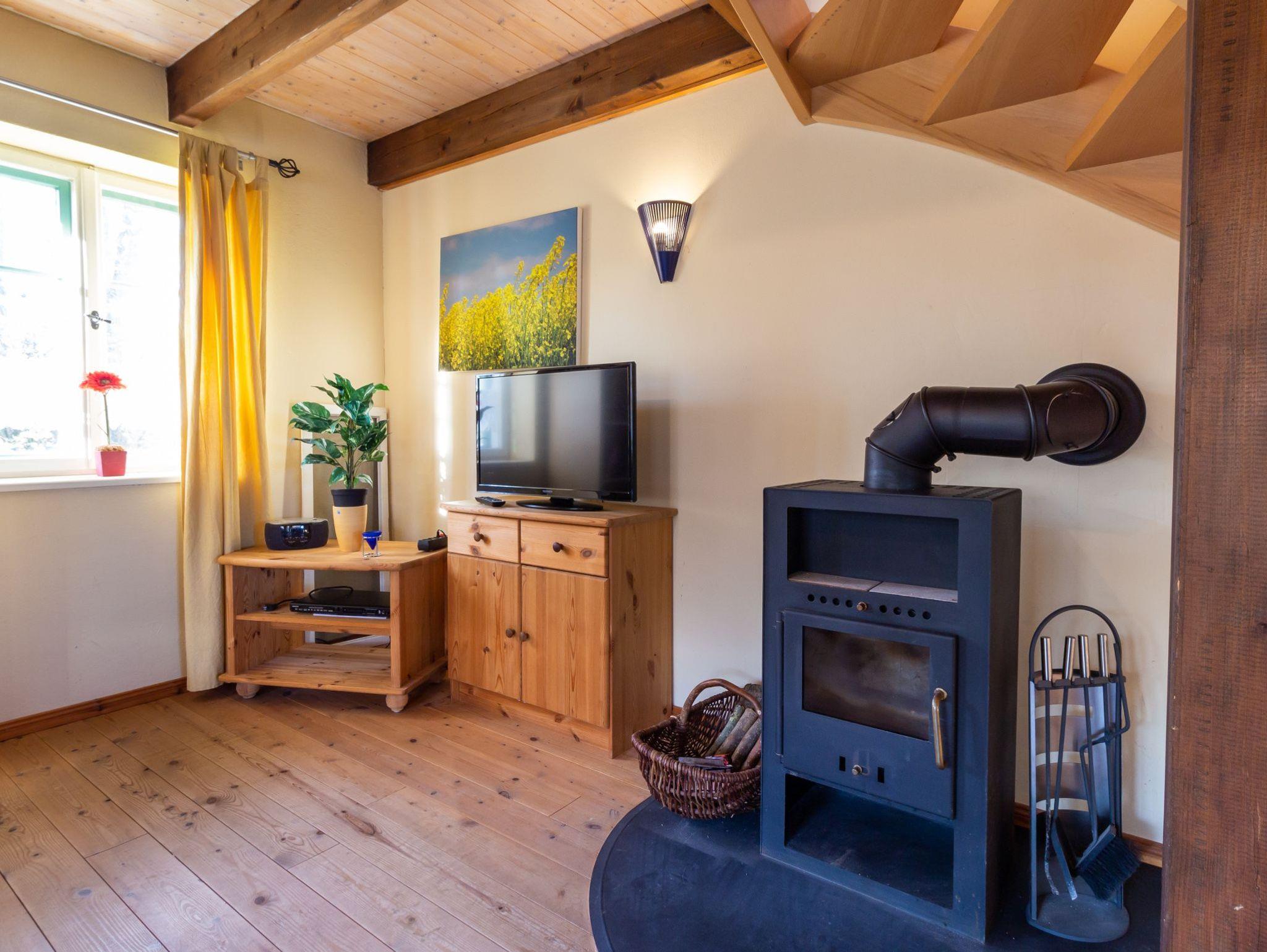 Hochwertig ausgestattetes Ferienhaus in einem alten Fischerkaten. Wohnraum mit Küchenzeile und Esstisch im Erdgeschoss. Zugang zum Garten. Im Obergeschoss Schlafzimmer mit Doppelbett und Kinderbett (Gitterbett, bis 3 Jahre), sowie Dusche/WC. Räume im Obergeschoss mit Dachschrägen.