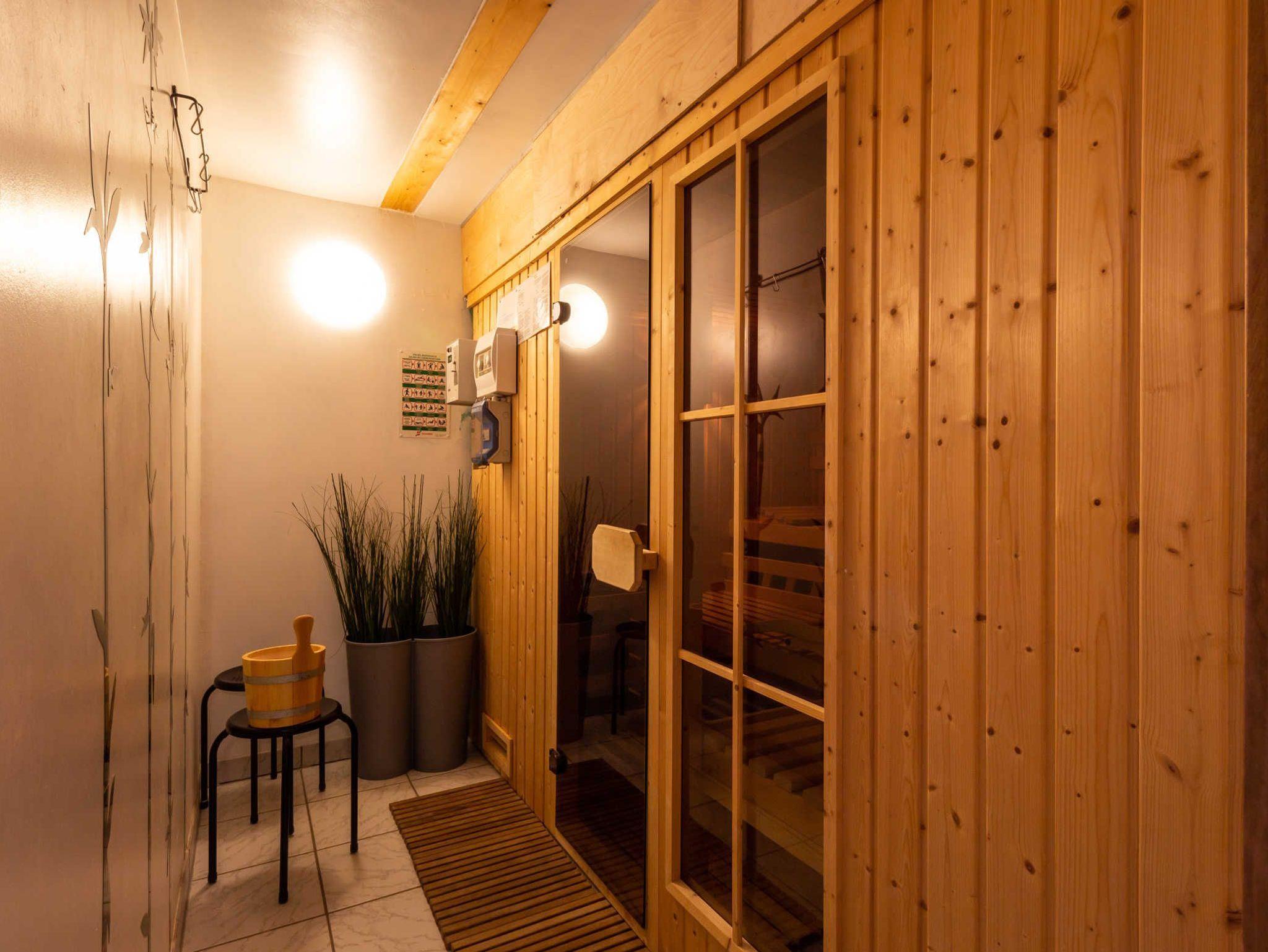 Im Haus 2 C befinden sich die Sauna (gebührenpflichtig) und ein Waschraum mit Waschmaschine und Trockner.