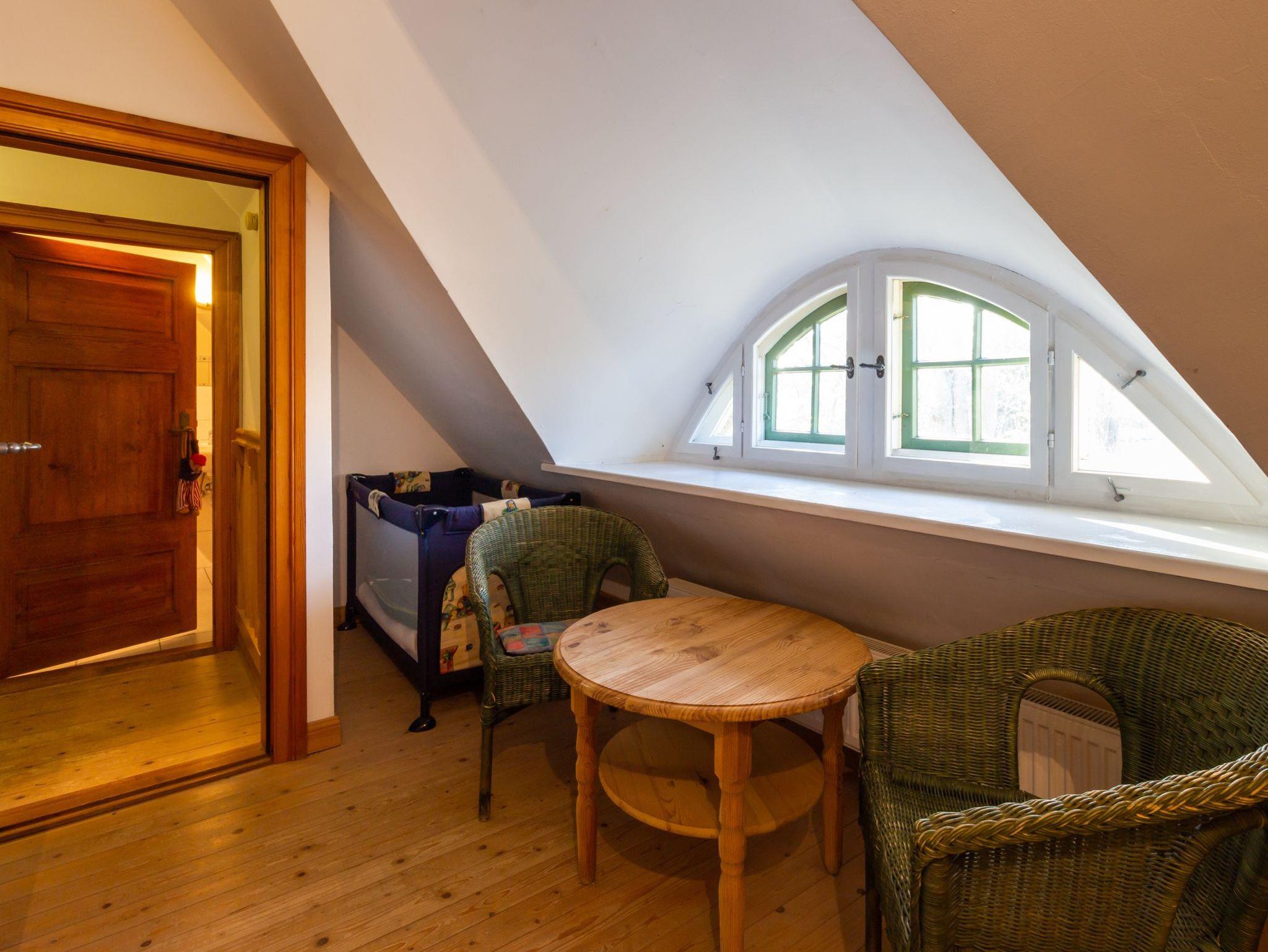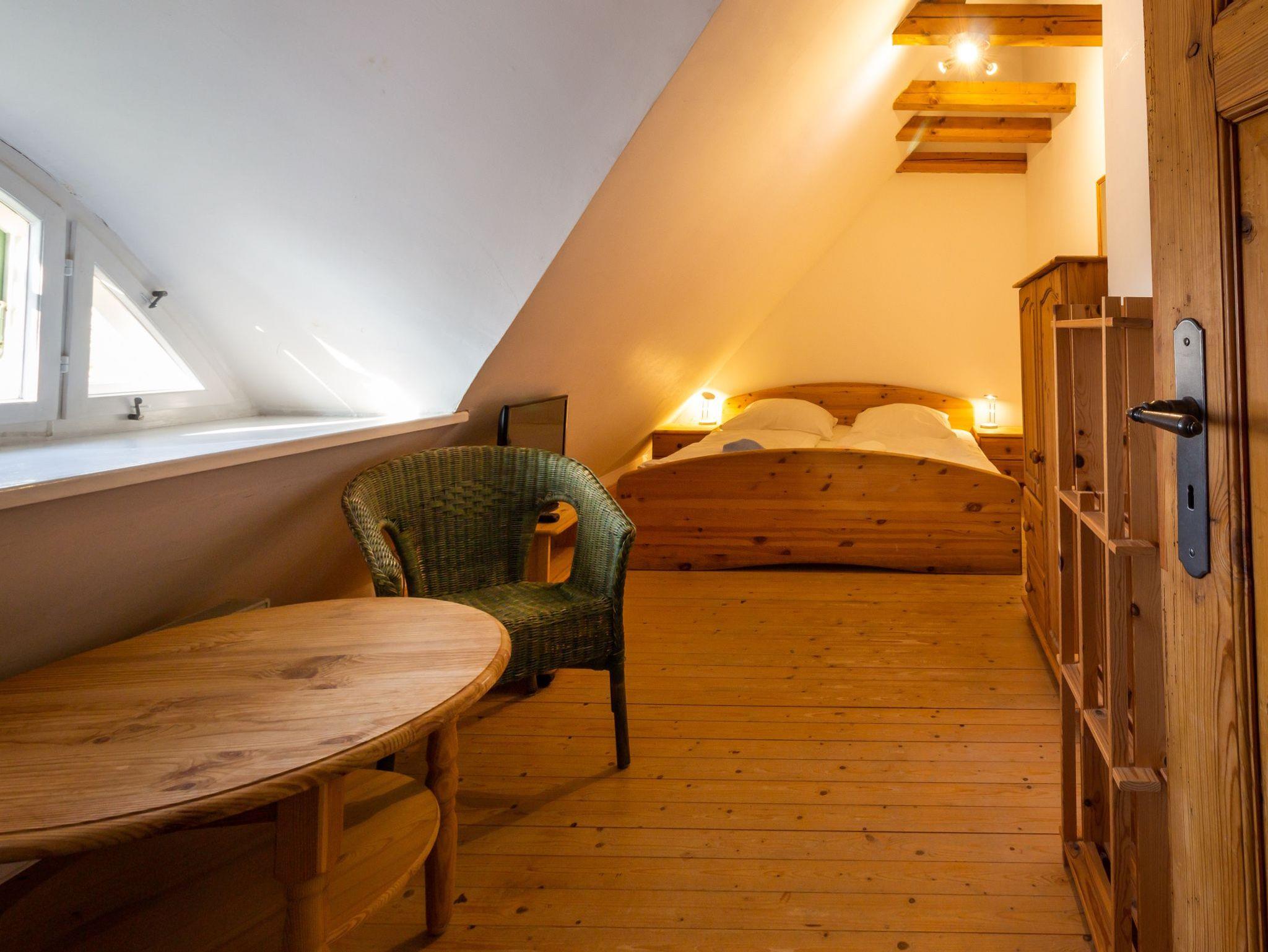 Hochwertig ausgestattetes Ferienhaus. Im Erdgeschoss separate Küche mit Esstisch, Wohnzimmer mit Kachelofen und Bad mit Badewanne. Im Obergeschoss ein Schlafzimmer mit Doppelbett, ein zweites Schlafzimmer mit einem Doppelstockbett, unten als Doppelbett (1,40 m breit) und einem Oberbett. Dusche/WC.