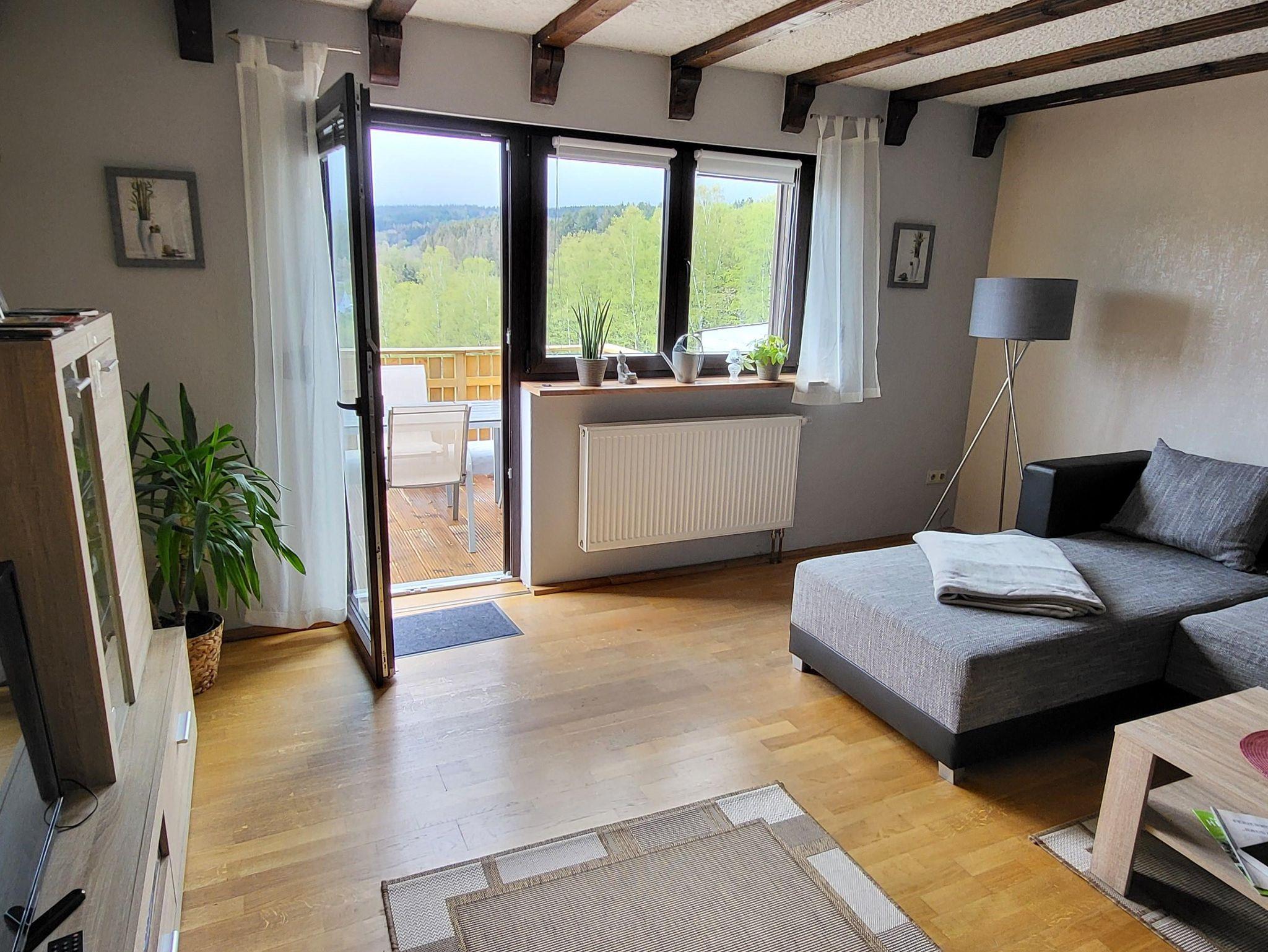 Wohnzimmer aus haben Sie einen herrlichen Blick auf die Nachbargemeinde Züsch und in den Hochwald.
