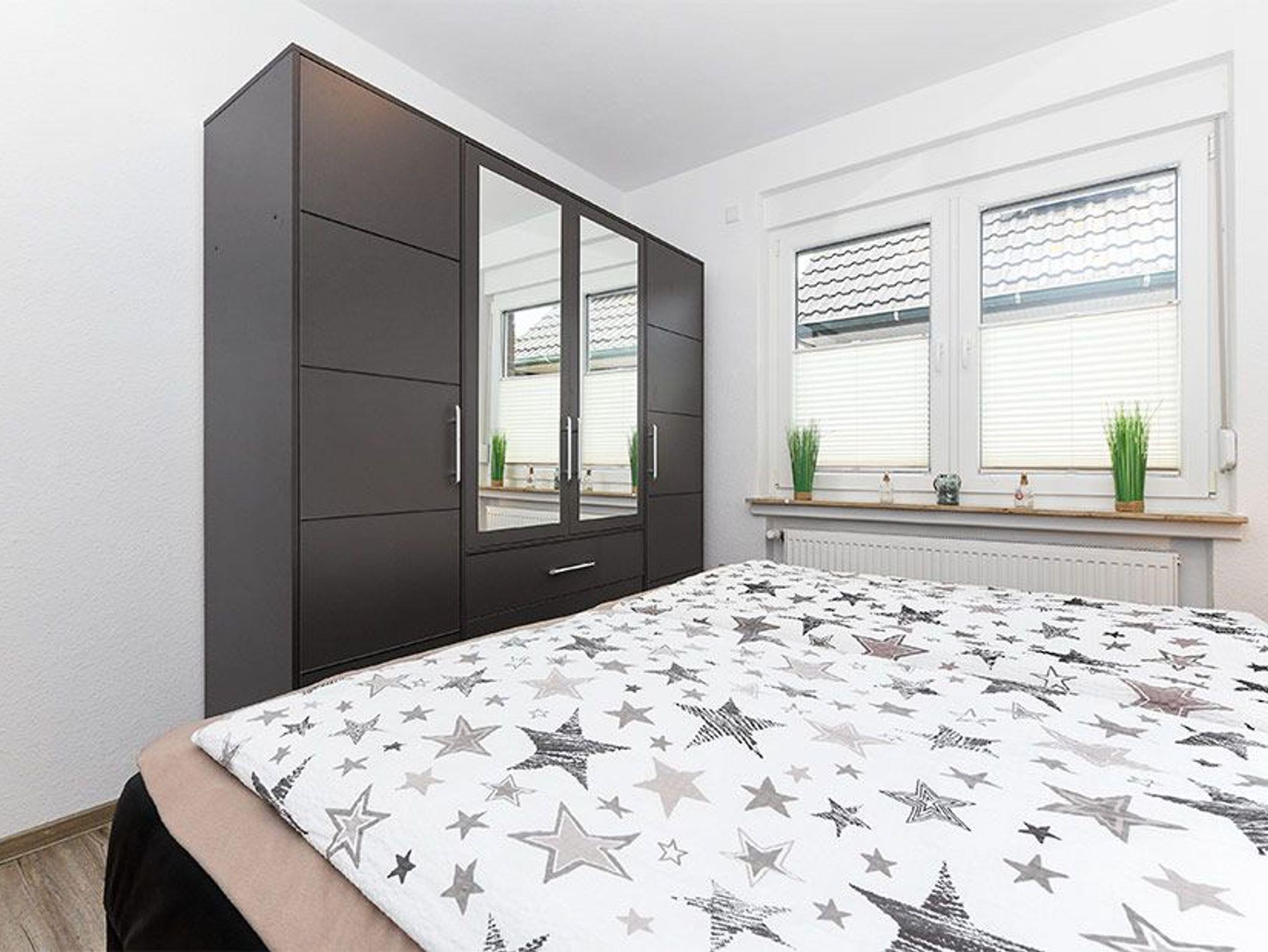 Größe ca. 43 Quadratmeter, Wohnraum mit integrierter Küche, Schlafzimmer, zweites separates Schlafzimmer/Kinderzimmer, Badezimmer mit Dusche, Waschtisch und WC, Erdgeschoss, optimal für 1 bis 5 Personen und zusätzlich ein Kleinkind.